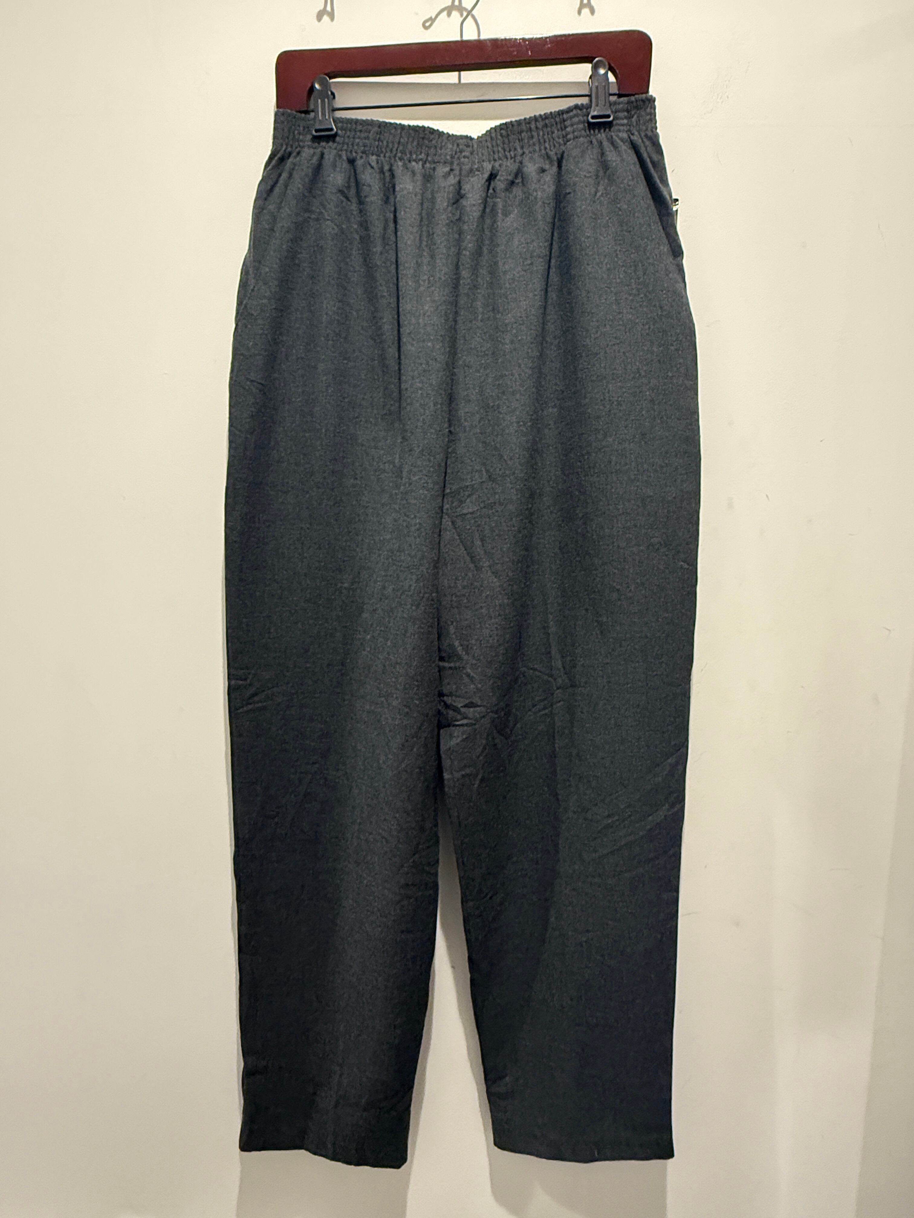 90年代アメリカ製のイージースラックスです。カラーはチャコールグレーでフラッシャー付きのデッドストックとなります。しっかりサイドポケットがあり、ウエストがゴム仕様でスラックスですが楽チンに履けるのもポイントですね。アメリカ製のデッドストックアイテムとコンディションも良くオススメです。