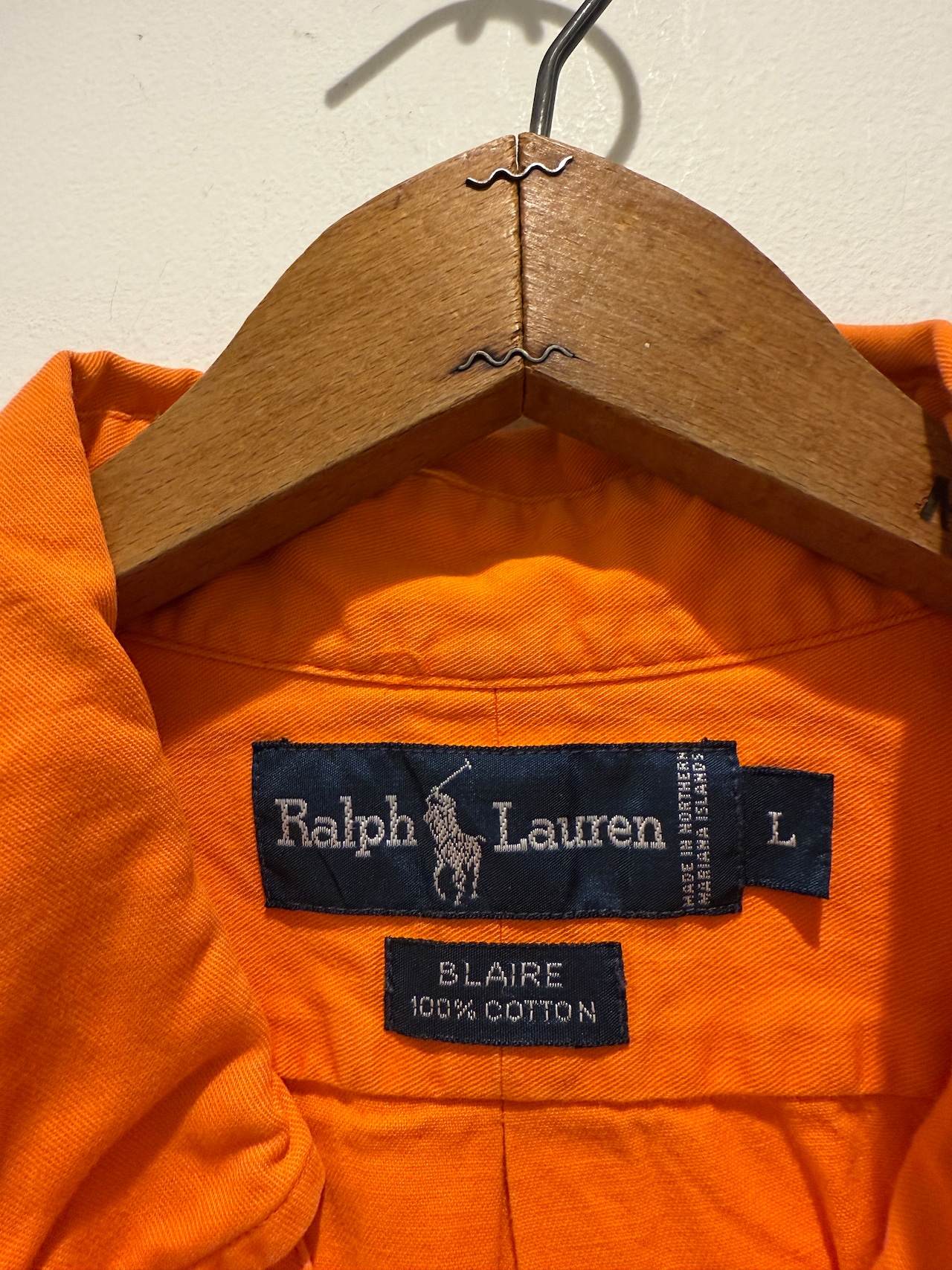 90年代アメリカ製ラルフローレンのシャツです。オレンジカラーにネイビーポニーのワンポイントとなります。北マリアナ諸島のしっかりとアメリカ製のラルフと最高ですね。ゆったりしたサイズ感でカラーリングも良くユニセックスでオススメなシャツです。