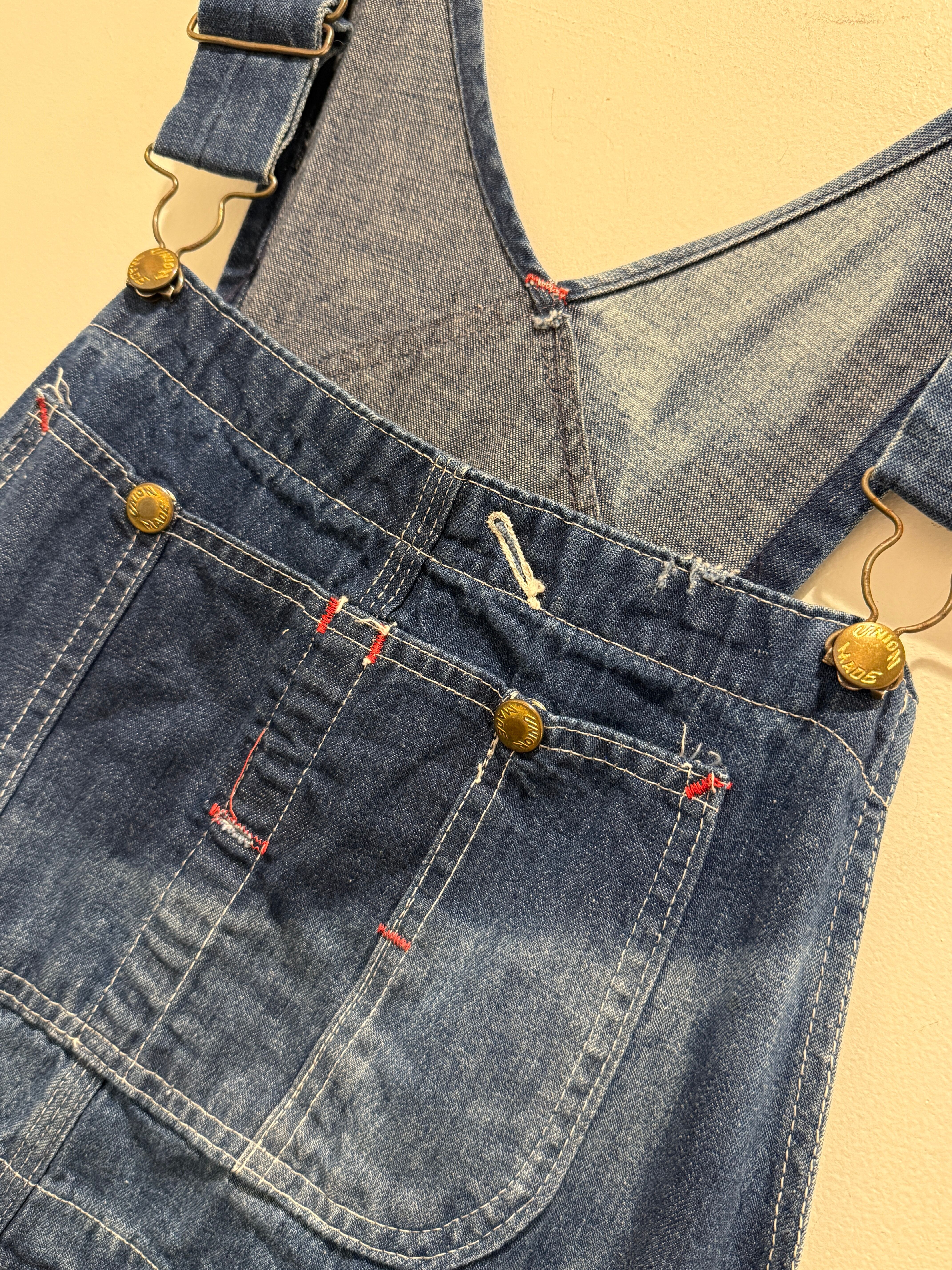 60年代ヴィンテージユニオンメイドのデニムオーバーオールです。ビンテージならではのインディゴで色味が良く、UNION MADEの金ボタンもアクセントになっています。タグが付かないのもシンプルで逆に良いですね。所々にある色落ちがアート感もあり1点物な感じも最高です。オーバーオールとしてはサイズ感も良くオススメなアイテムです。