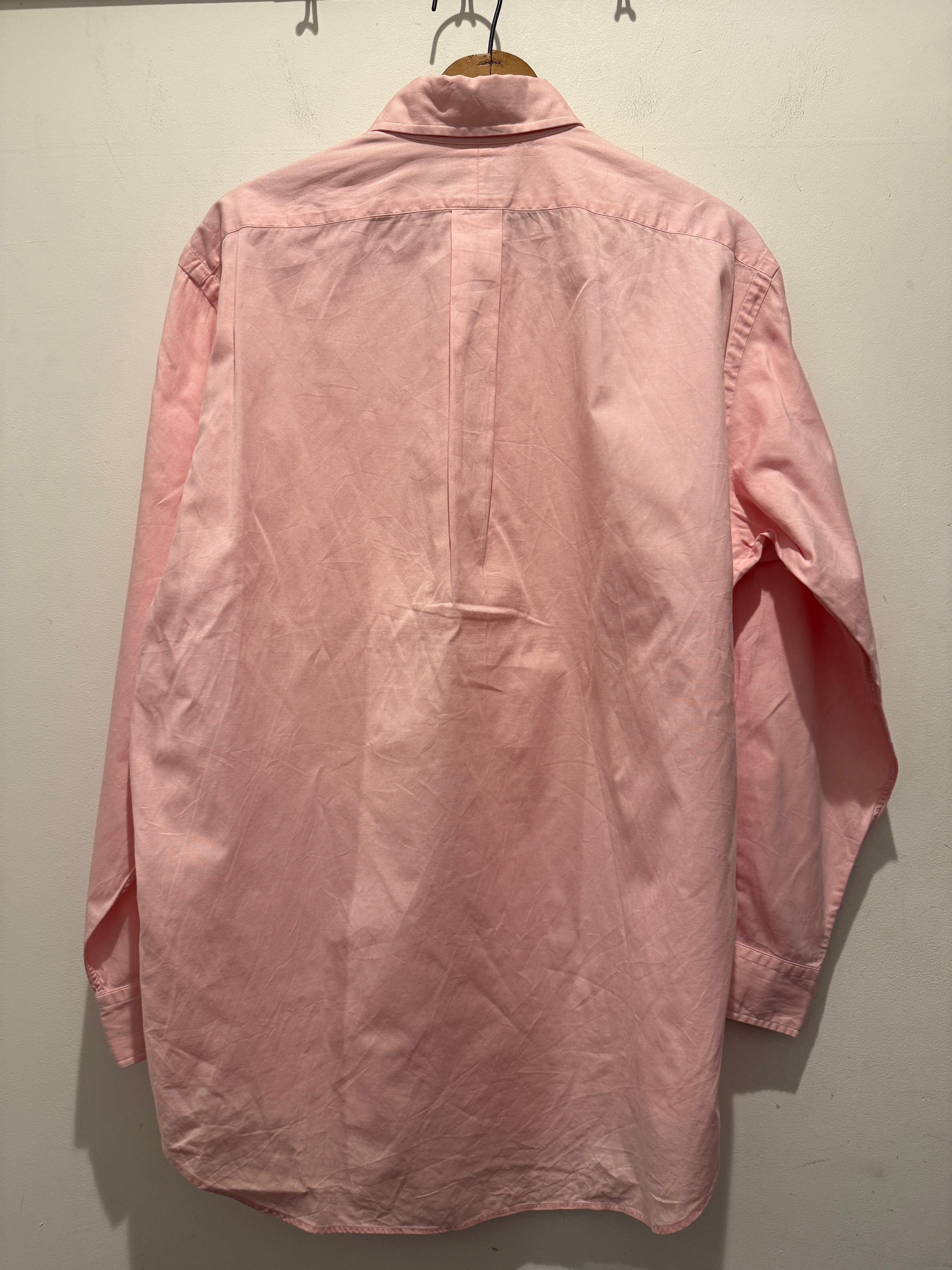 90年代ラルフローレンのシャツです。淡いピンクカラーでポニーマーク無しの無地となります。薄手のハリのあるコットン生地もとても良く、90年代らしい身幅もたっぷりあるサイズ感が最高ですね。女性の方が大きめに羽織る感じも良く、ユニセックスでオススメなシャツです。