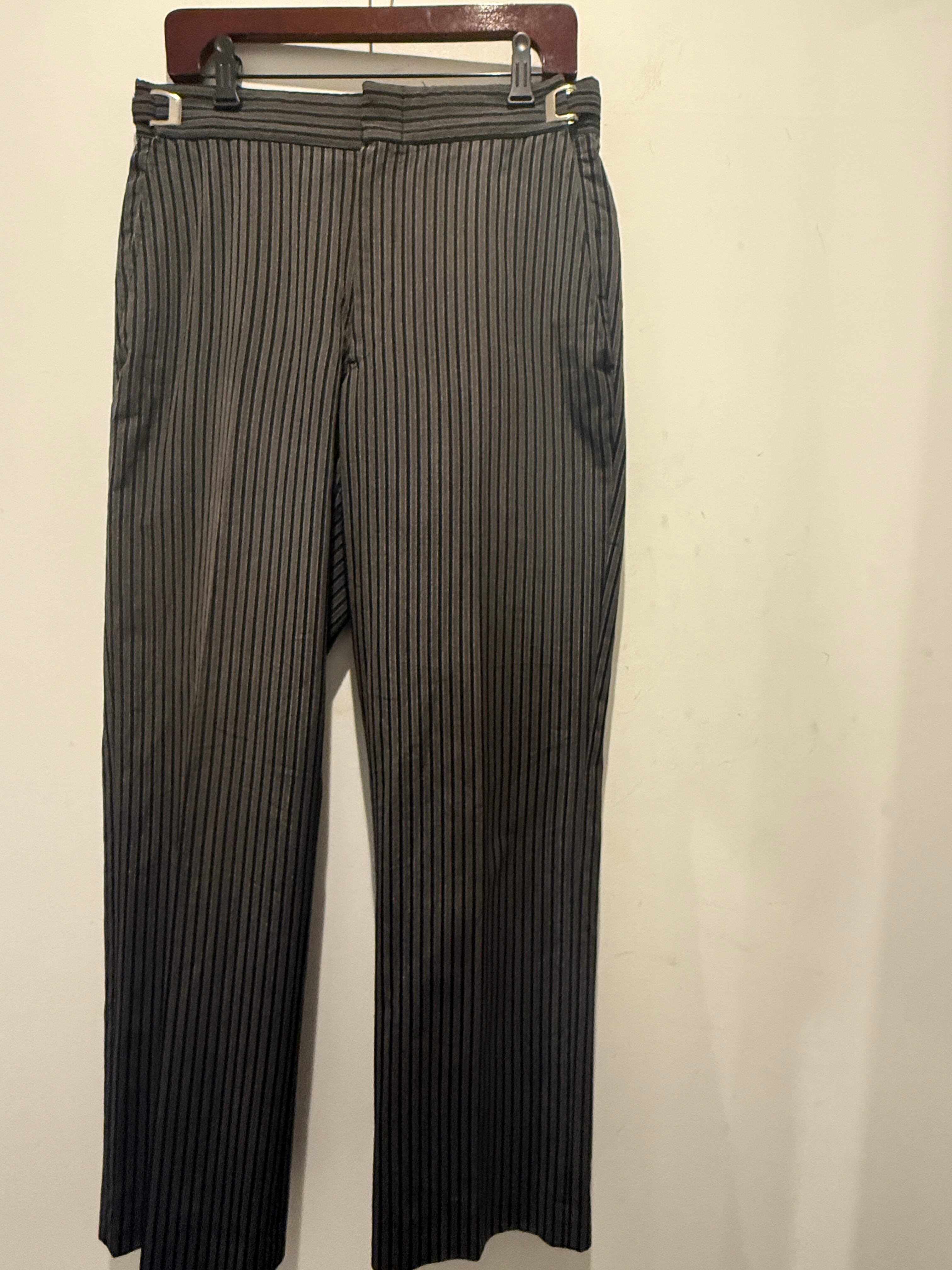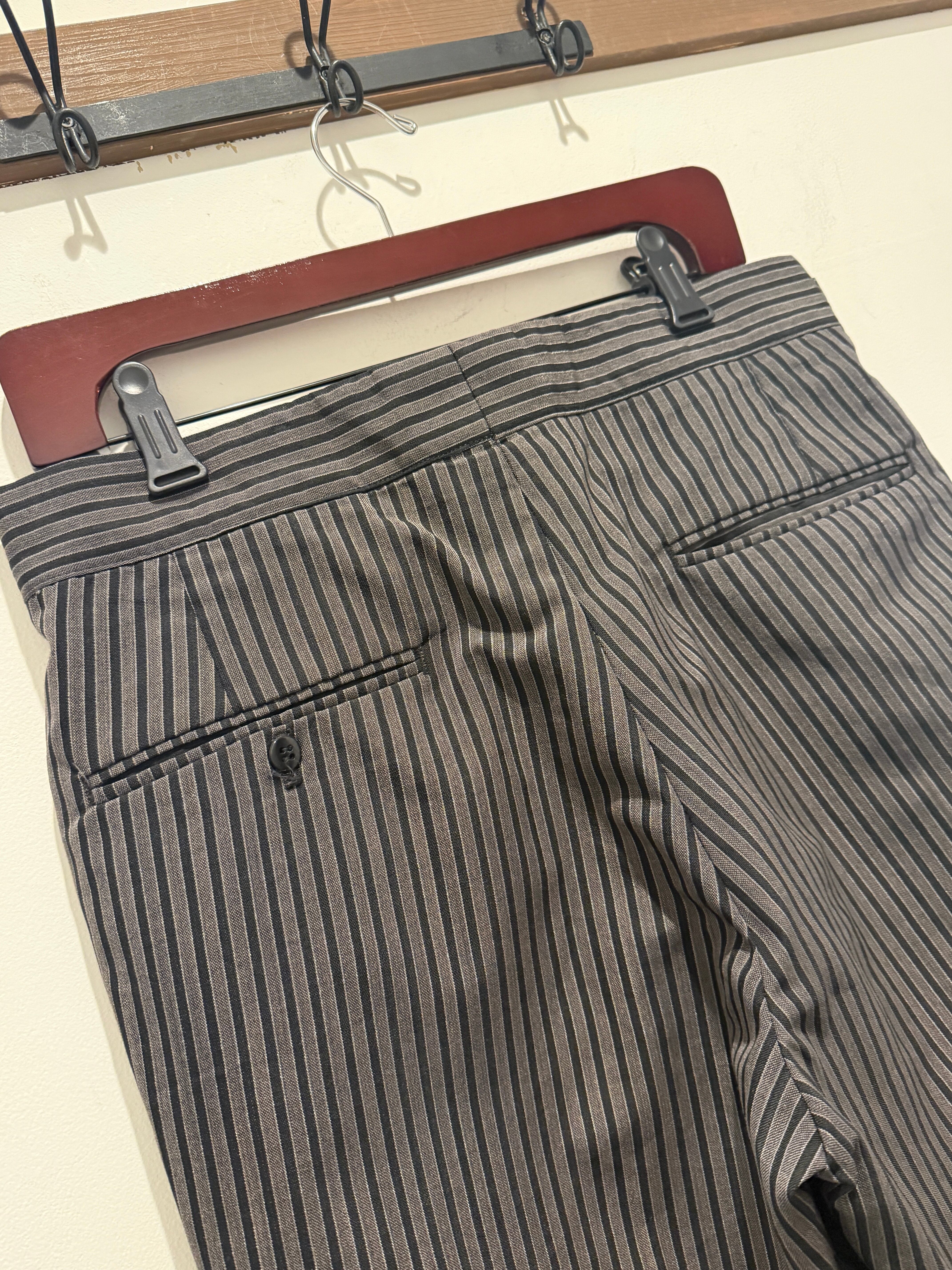 70年代アメリカ製のストライプワークパンツです。グレー×ブラックのストライプ仕様でTALONジッパーが採用されています。スラックスの様な雰囲気もありますが、ゆとりのあるストレートシルエットでワークパンツとなります。裾もオリジナルでサイズの合う方にはオススメな1本です。