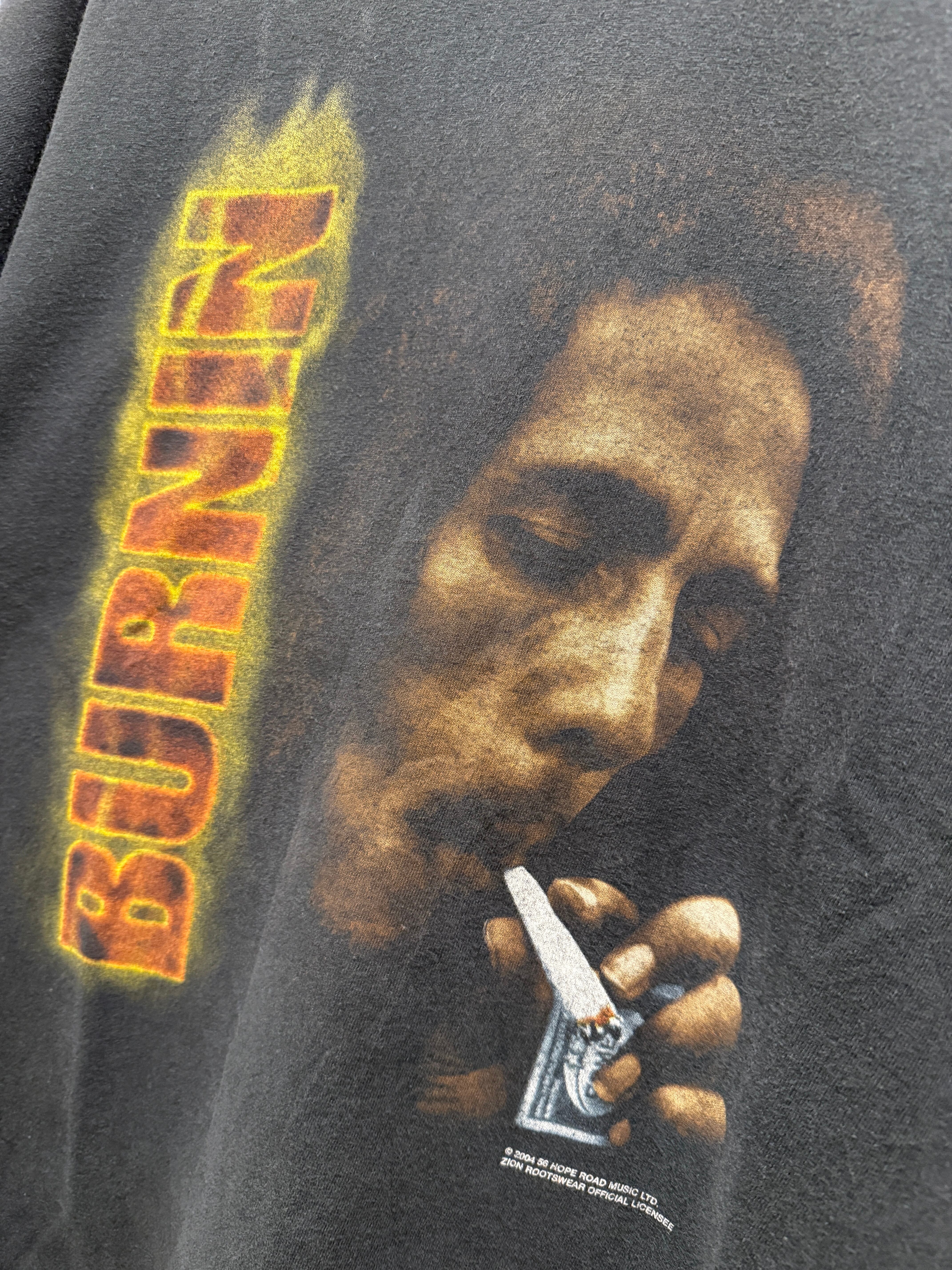 2000年代アメリカ製のボブ・マーリーTシャツです。レゲエの神様ボブ・マーリー。こちらはブラックボディにタバコを吸っているプリントがとてもカッコイイ1着です。2004年のコピーライト入りで袖、裾共にダブルステッチとなります。フェードしたブラックボディの雰囲気も良くユニセックスでオススメなTシャツです。