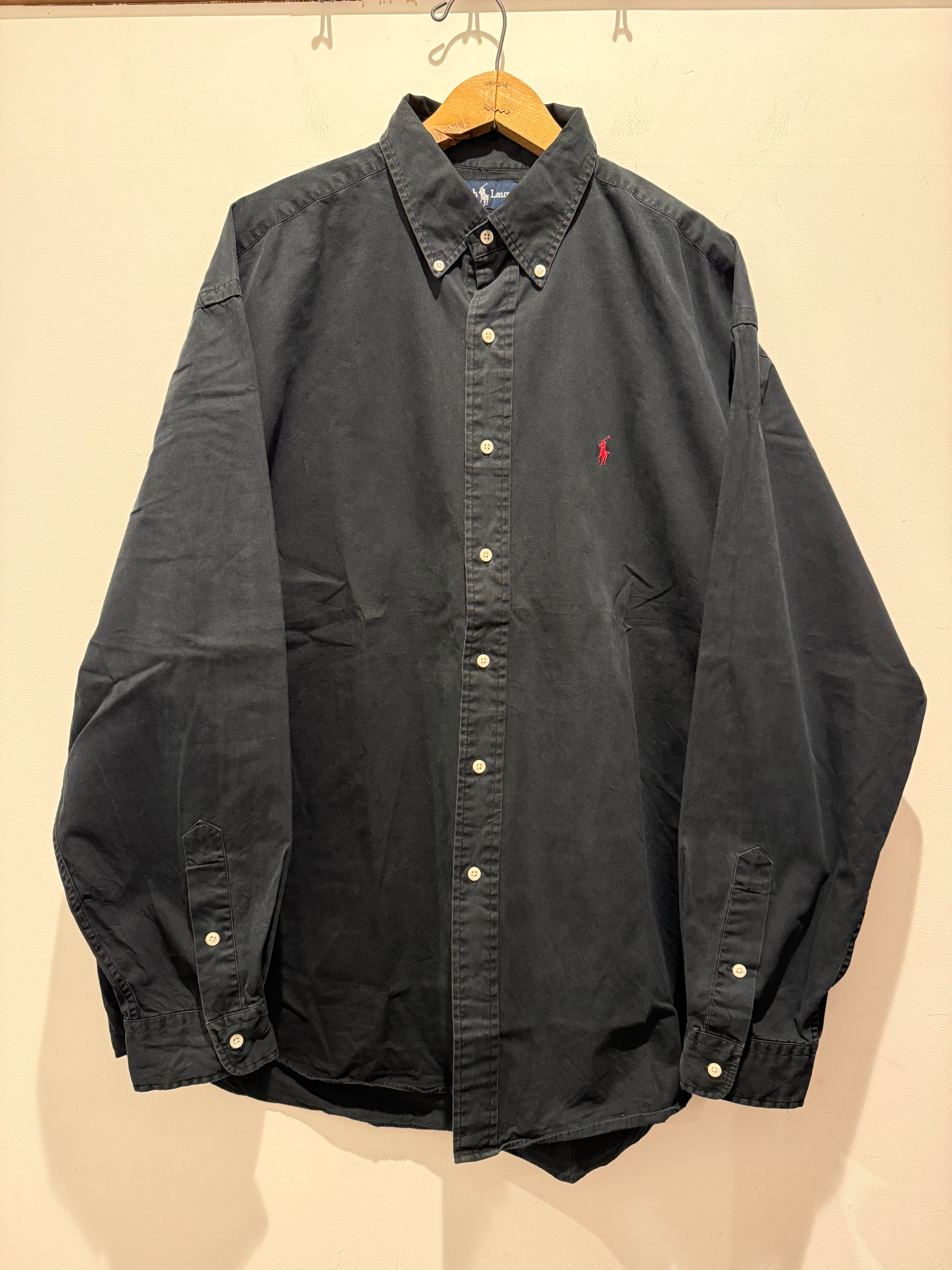 90年代アメリカ製ラルフローレンのシャツです。ブラックカラーにレッドポニーのワンポイントとなります。北マリアナ諸島のしっかりとアメリカ製のラルフと最高ですね。身幅もたっぷりなBLAKEでブラックカラーと好条件でオススメなシャツです。