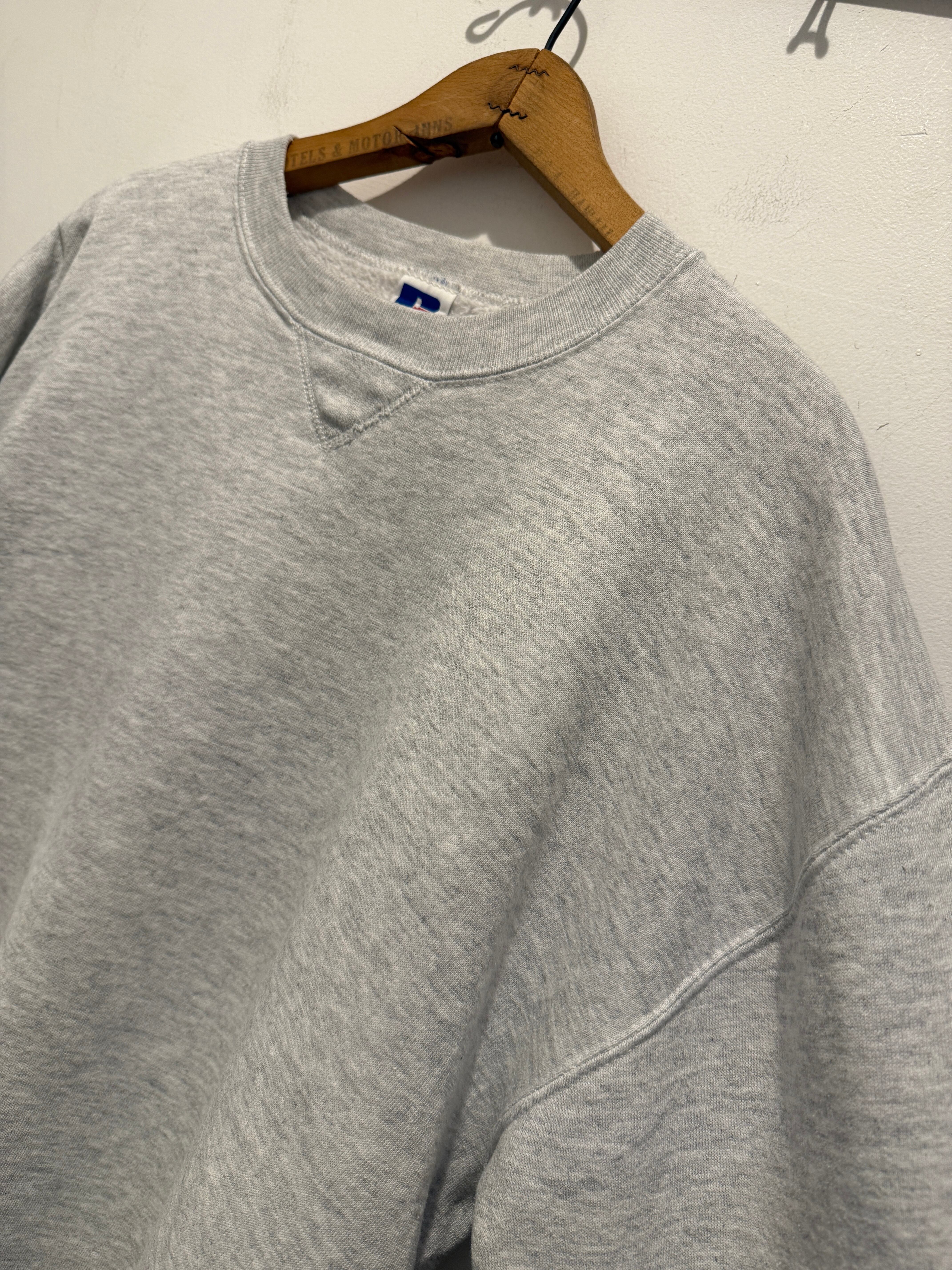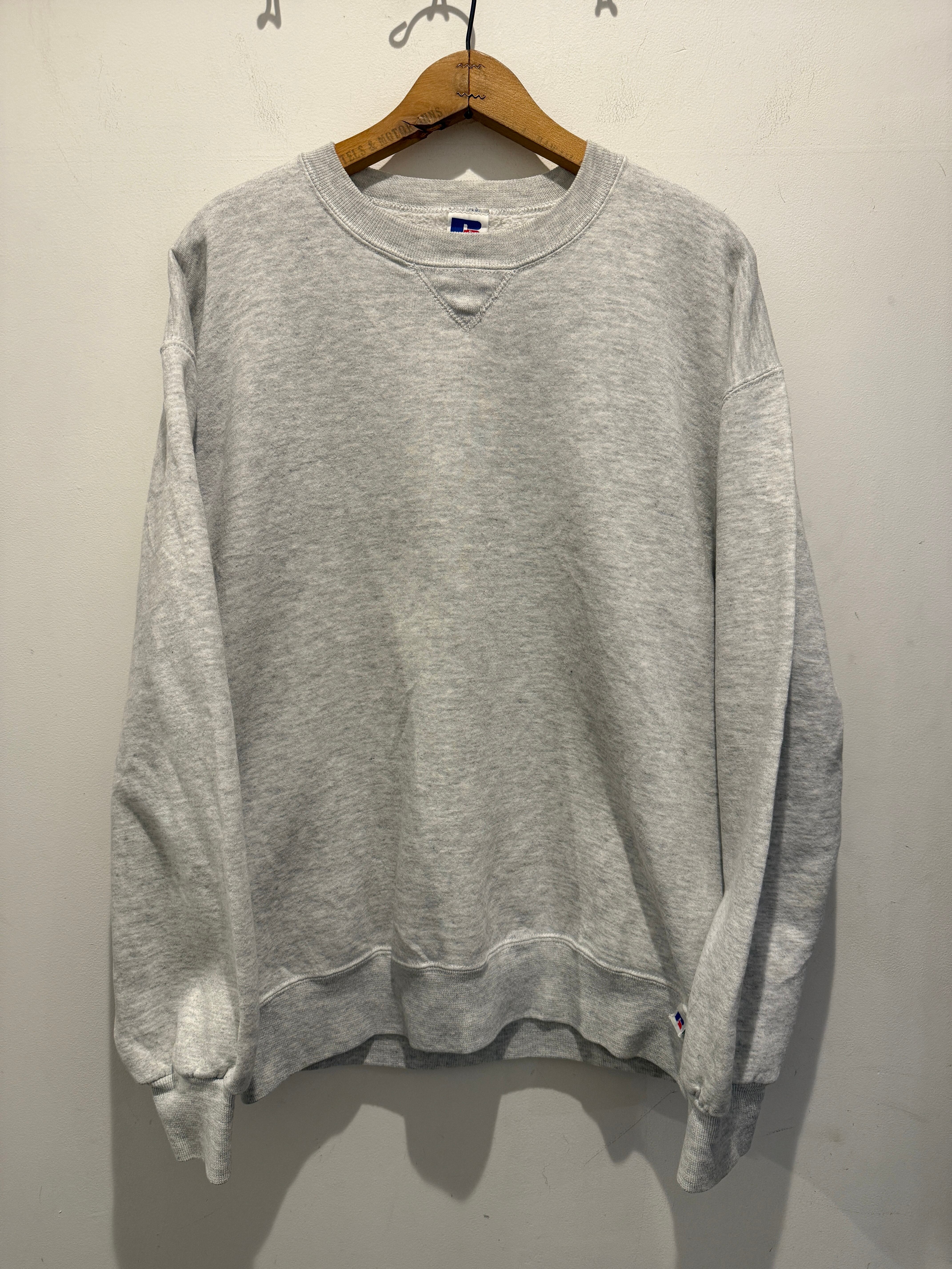 90年代アメリカ製ラッセルの無地スウェットです。シンプルなグレーが定番で使いやすい1着となります。年々アメリカ製のラッセルスウェットは減ってきている印象で探していた方にはコンディションも良くオススメです。