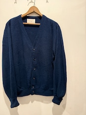 70年代アメリカ製ジャンセンのアクリルカーディガンです。無地のダークネイビーカラーでアクリル素材のカーディガンとなります。ボタンがマーブルボタンと品がある感じがとても良いですね。身幅もしっかりあって着丈短めなシルエットも良く、ユニセックスでオススメなアイテムです。