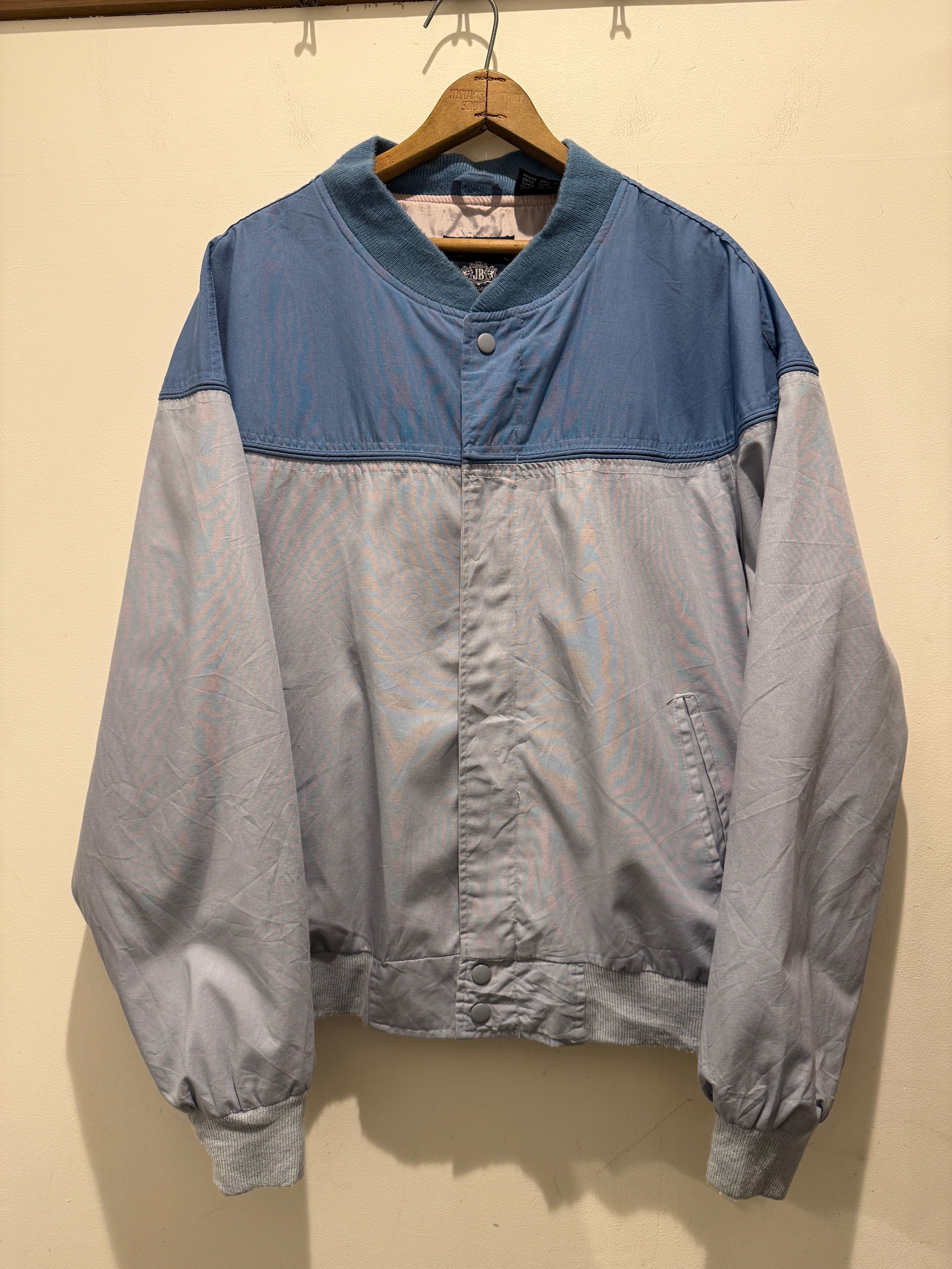 80年代BLAIRのカップショルダージャケットです。80年代にサンフランシスコのパンクやハードコアシーンで流行したダービージャケット。こちらDERBY社製ではありませんがグレー×ブルーグレーのツートンタイプと珍しい1着です。またダービーとは違って中綿が入っていないので着用もしやすいのがポイントですね。CCジッパーでボックスシルエットのツートンとオススメなアイテムです。