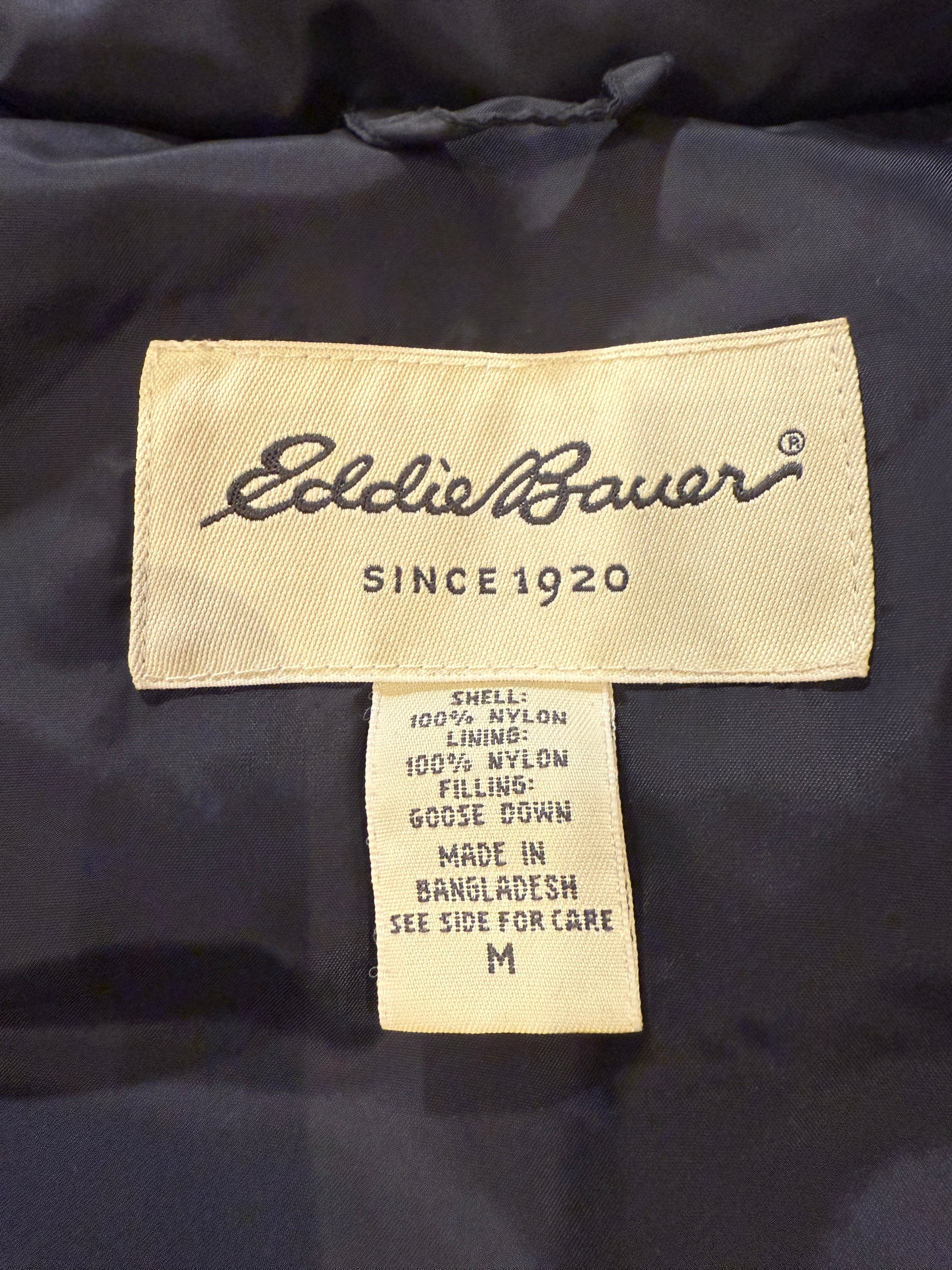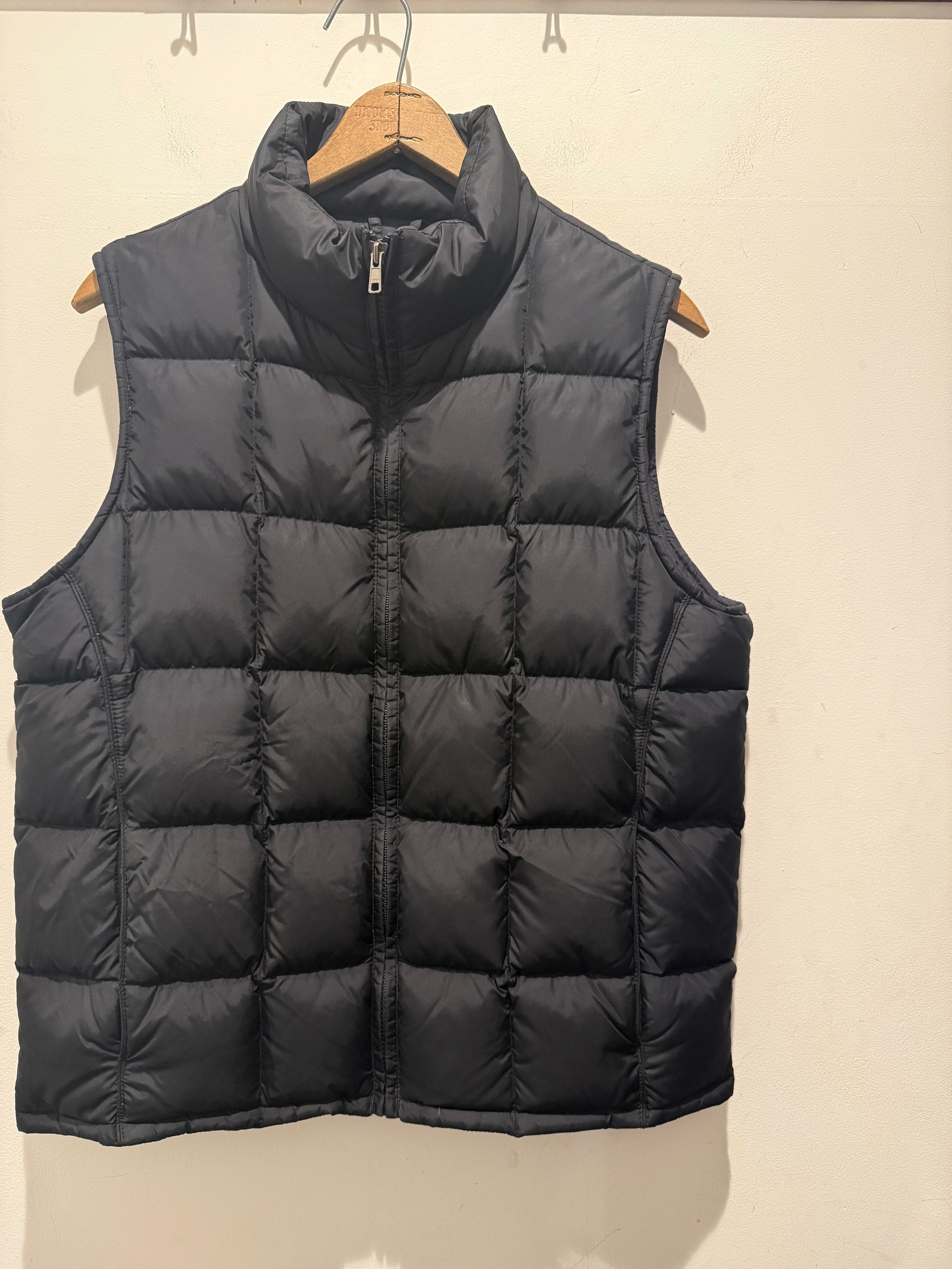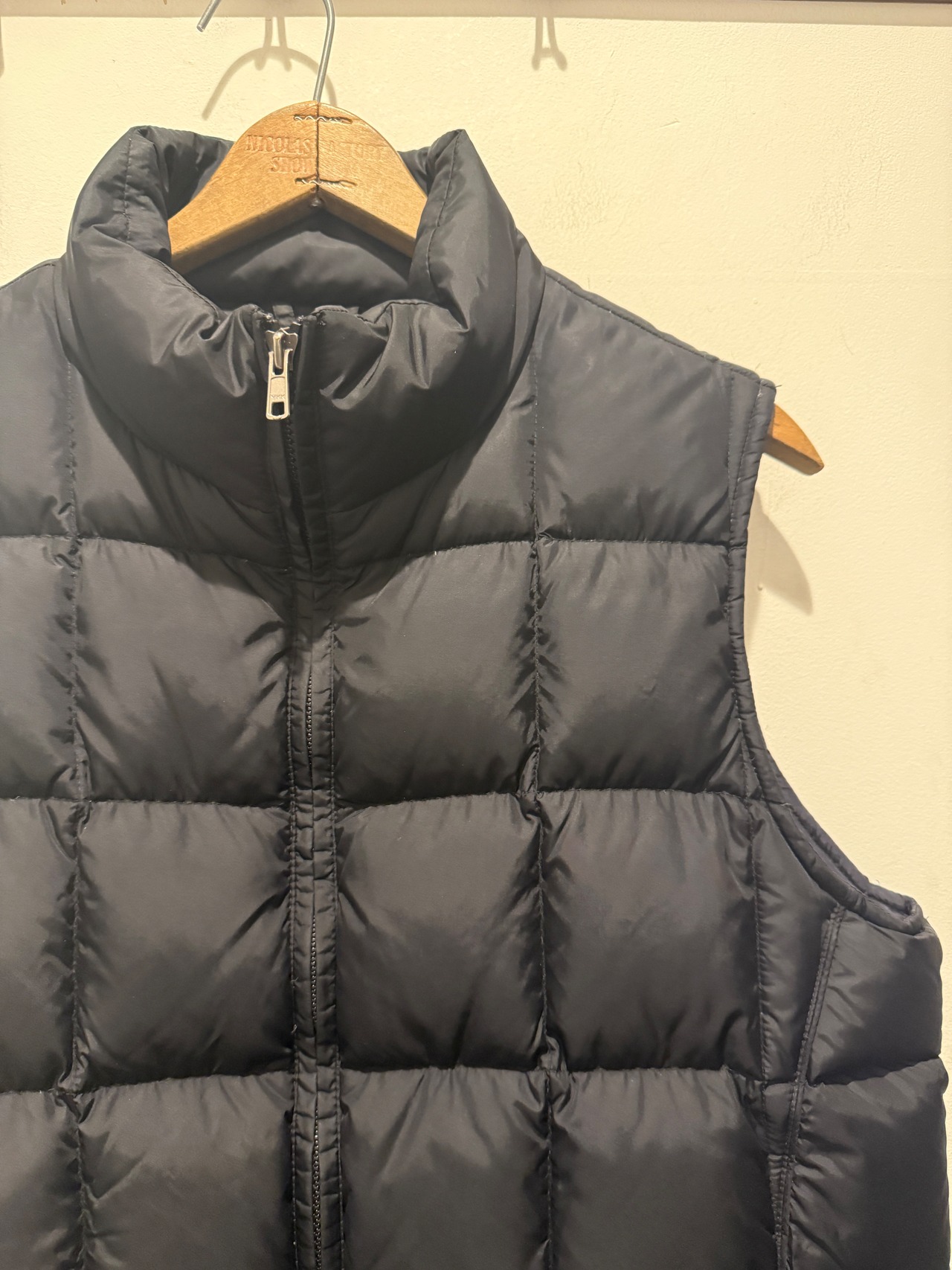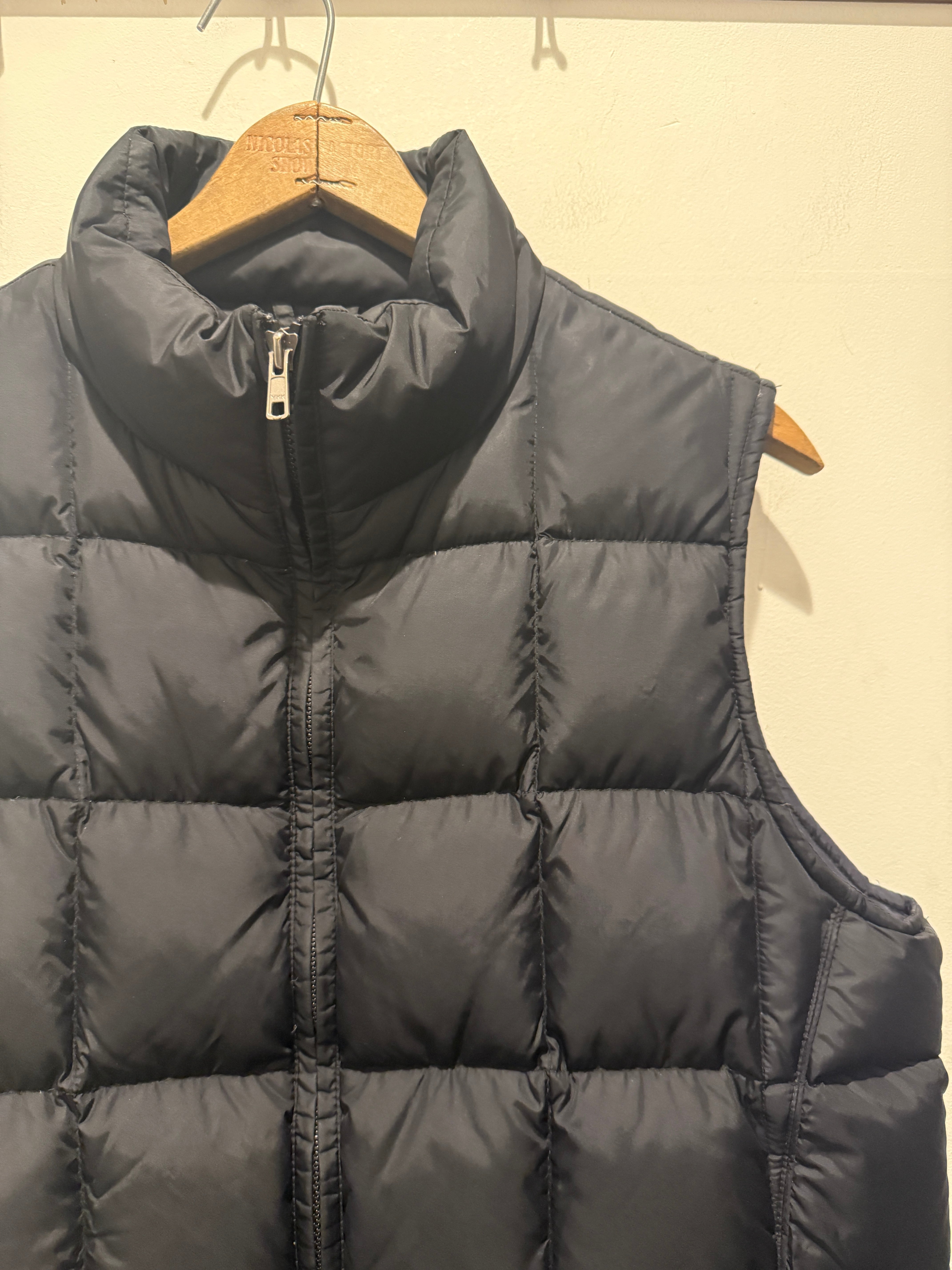 90年代エディバウアーのダウンベストです。ブラックカラーでロゴとかも表面に入らずシンプルなデザインがとても良い1着です。サイドにはしっかりジップポケットと裏地の胸ポケットもあるのが嬉しいポイントですね。グースダウンで軽くて暖かさもありレイヤードに使えるアイテムとしてオススメです。