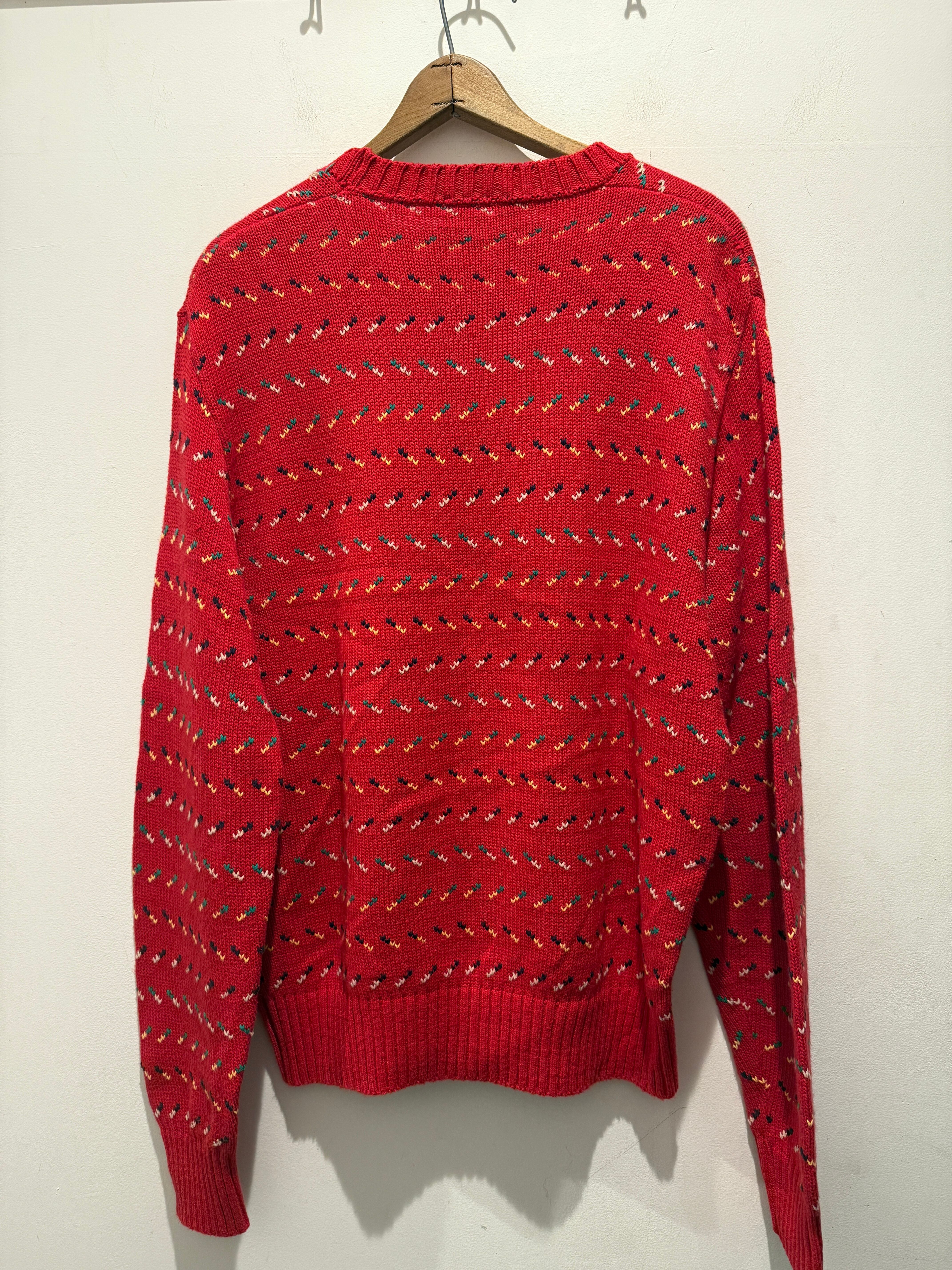 80年代アメリカ製ロードジェフのバーズアイニットです。赤ボディにバーズアイ柄がお洒落で可愛い1着です。そしてこちらはコットン100%とチクチクが苦手な方にもオススメなニットです。男性だけでは無く女性の方がザックリ着用するのもオススメです。