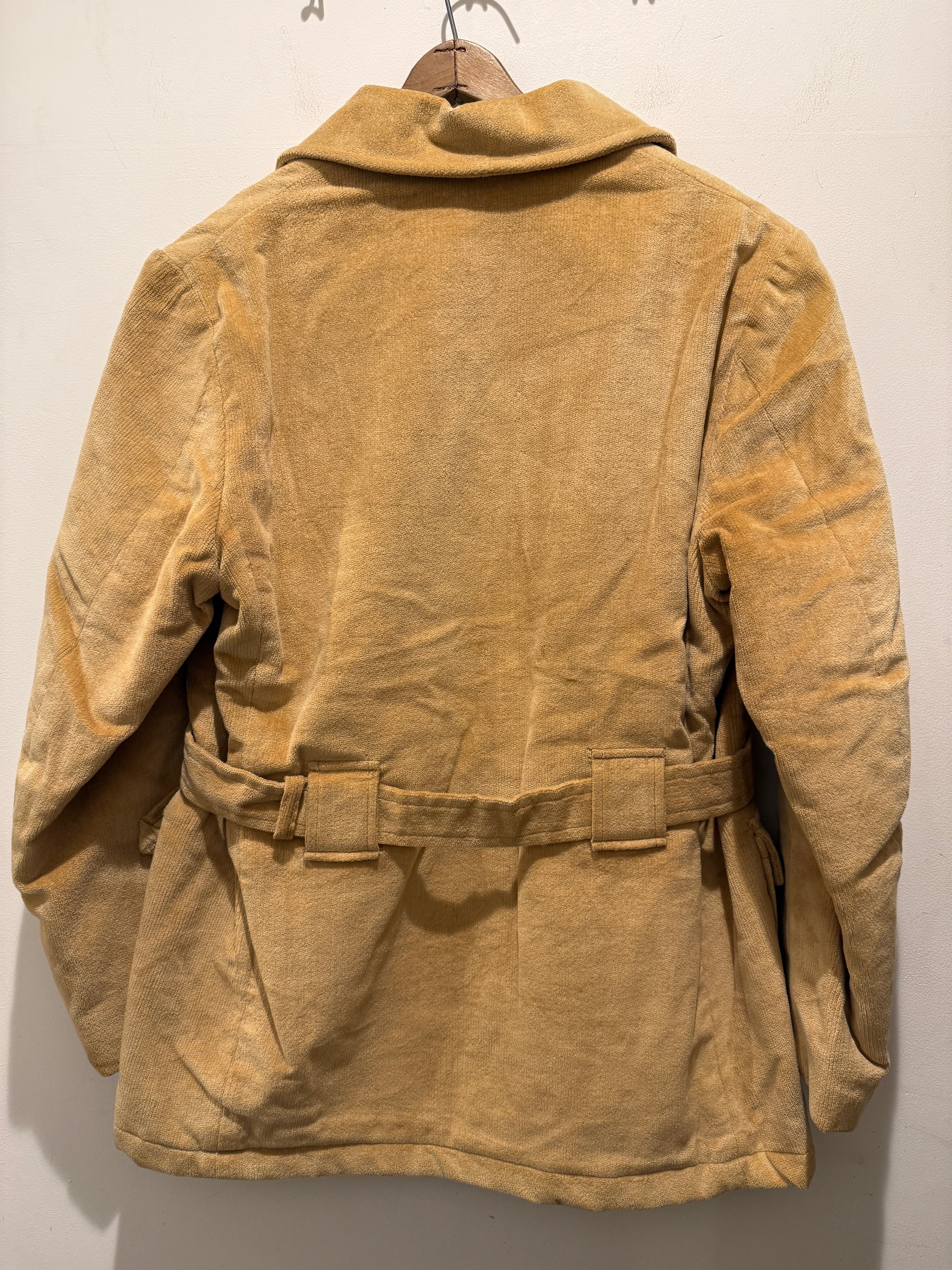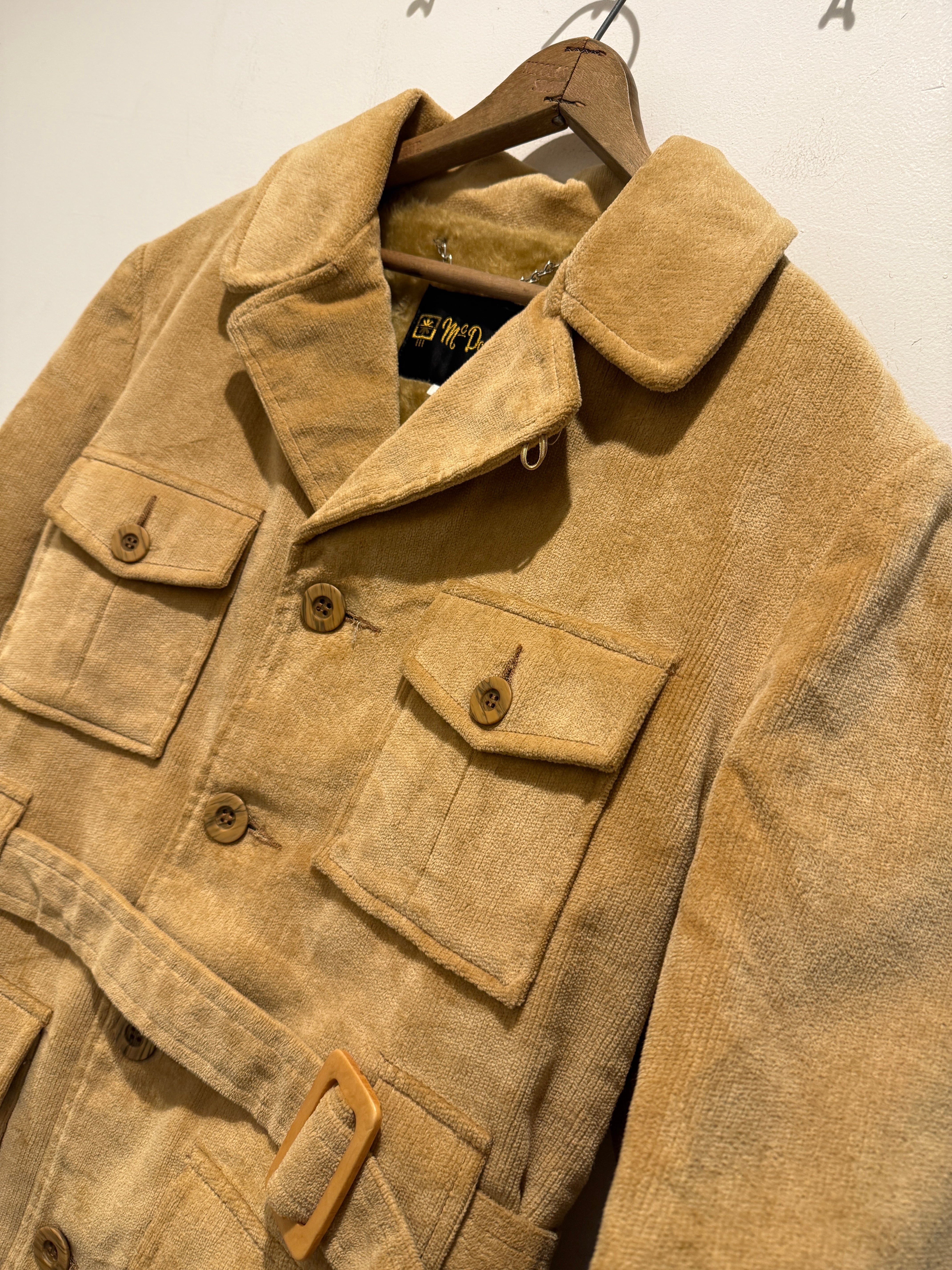 70年代コーデュロイのボアジャケットです。ベージュのコーデュロイで裏地がボア仕様の温かさもあるジャケットです。フラップ付きの4つポケットでベルト付きのオープンカラー仕様とナイスなディテールですね。コンディションもとても良くボアもフカフカでオススメなアウターです。
