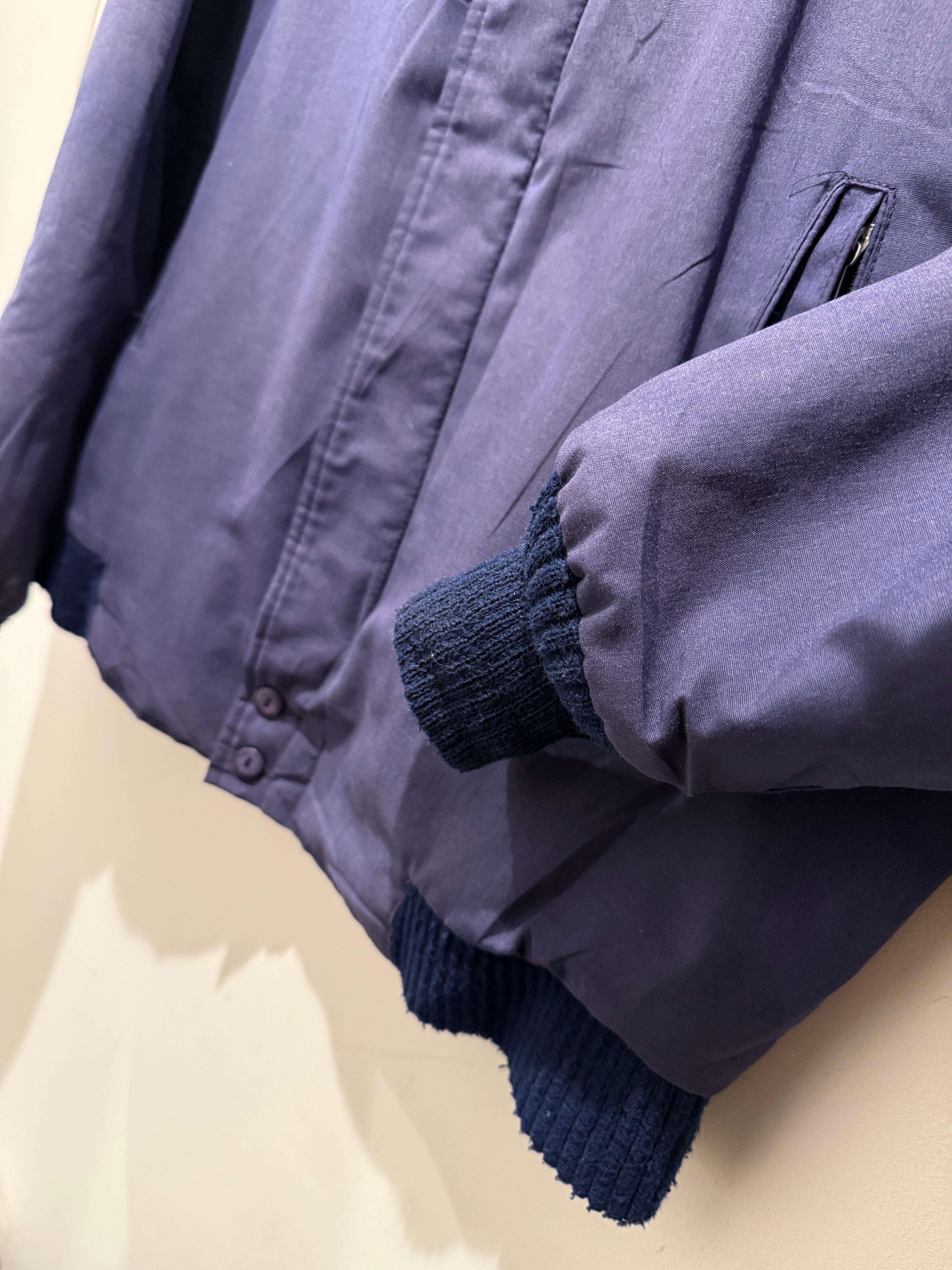 70年代〜80年代アメリカ製カタリナののカップショルダージャケットです。80年代にサンフランシスコのパンクやハードコアシーンで流行したダービージャケット。こちらダービーと共に人気のあるカタリナの1着となります。フェードしたネイビーカラーで茄子紺色になっているのがとても良いですね。カタリナといえば裏地のトビウオ柄が有名ですがこちらは珍しく無地の裏地となります。IDEALアルミジッパーなのも最高ですね。裏地にダメージありますがアメリカ製で茄子紺×アルミジッパーと雰囲気も良くオススメです。