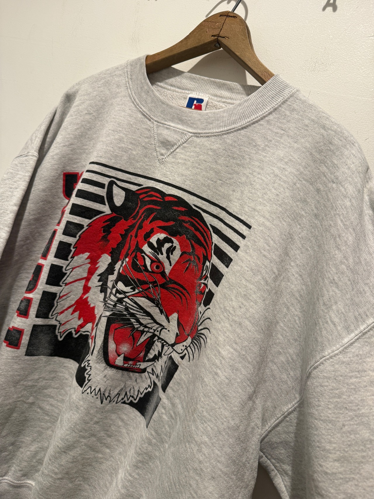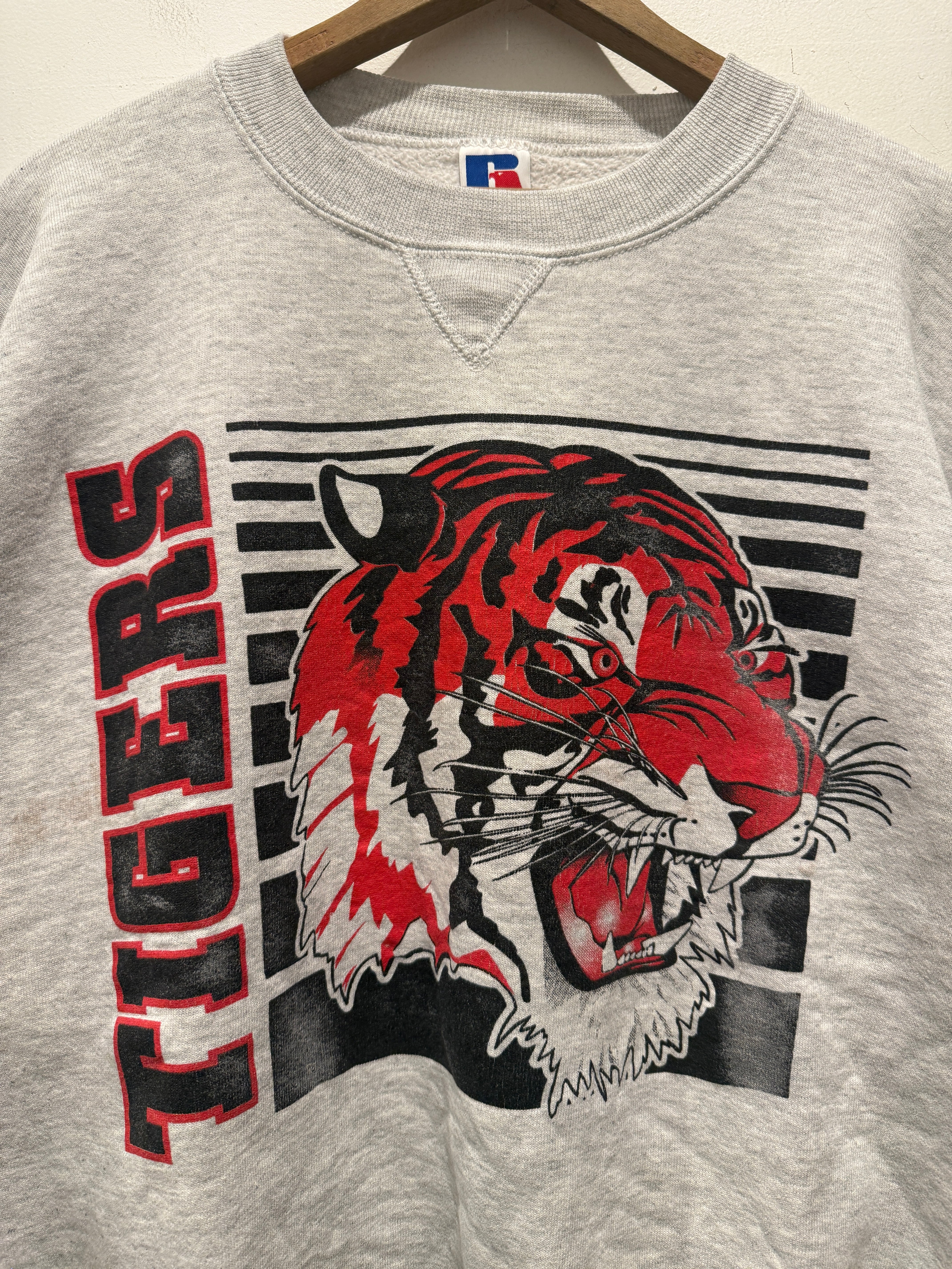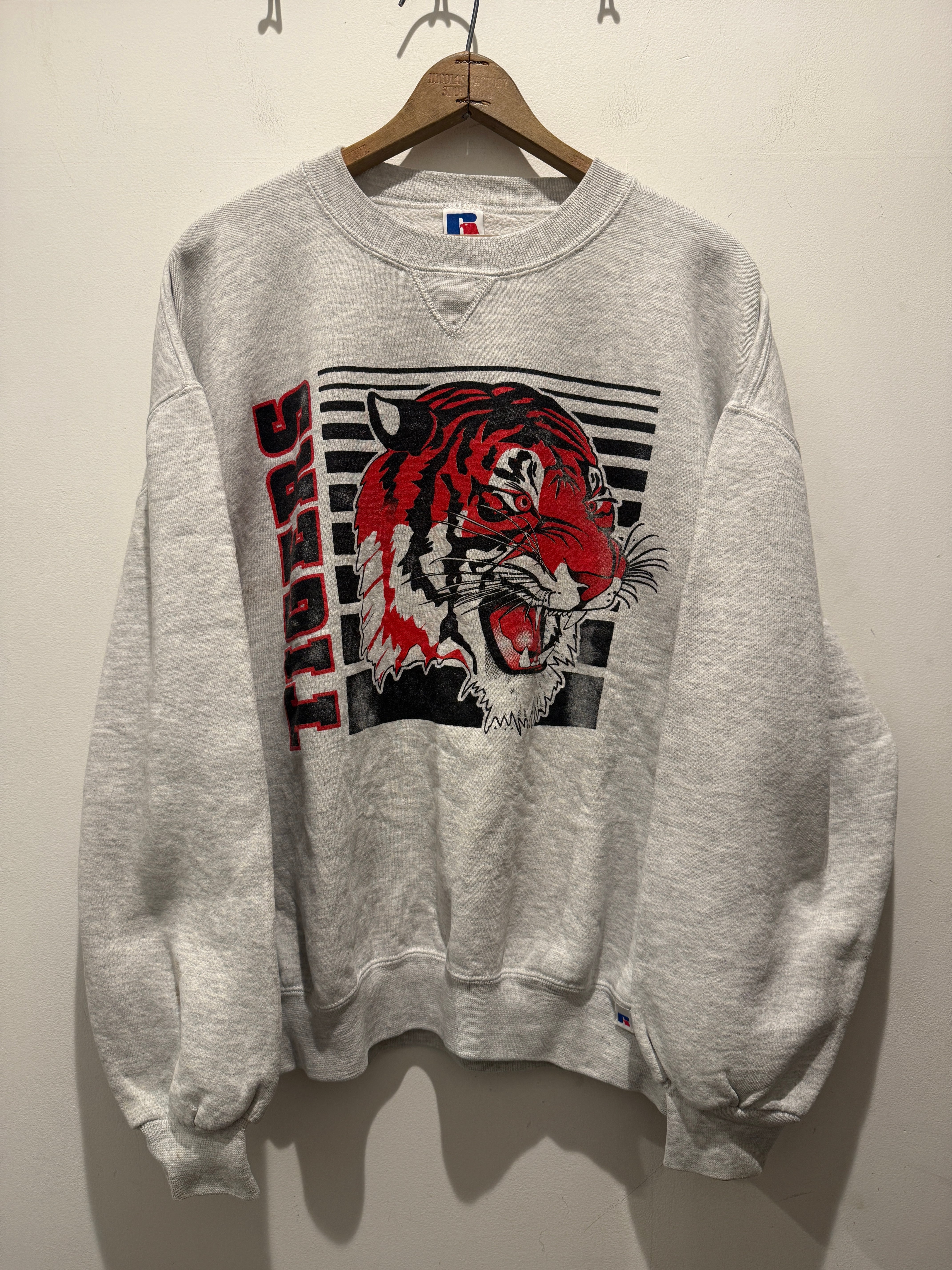 グレーボディにリアルなタイガープリントがとても良い1着です。身幅広めで着丈短めなボックスシルエットなのも着やすくて良いですね。アメリカ製でデザイン良く、ユニセックスでオススメなスウェットです。