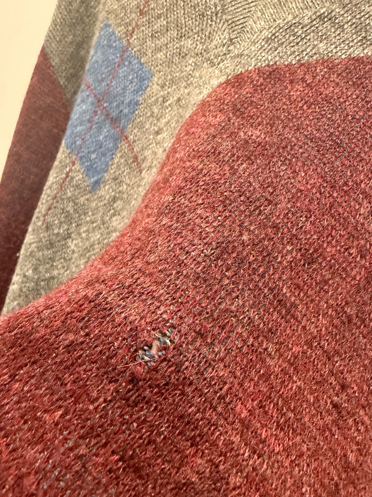 80年代アメリカ製ジャンセンのデザインニットです。Vネック仕様で切り替えしのデザイン、さり気なく入るアーガイル柄とお洒落な1着です。またフロントとバッグで違うデザインと袖にも入るのがとても良いですね。レイヤードにも使えてユニセックスでオススメなアイテムです。