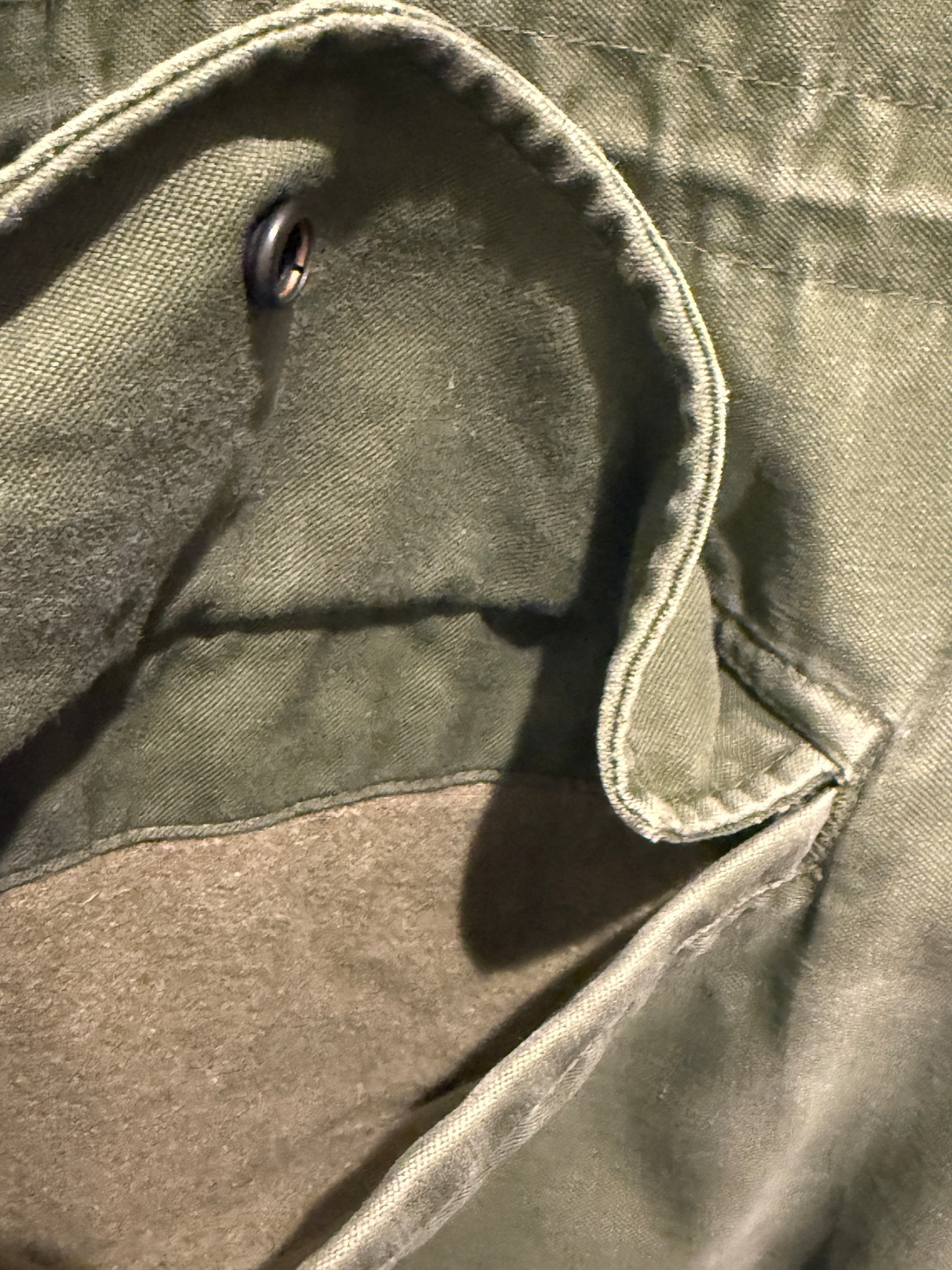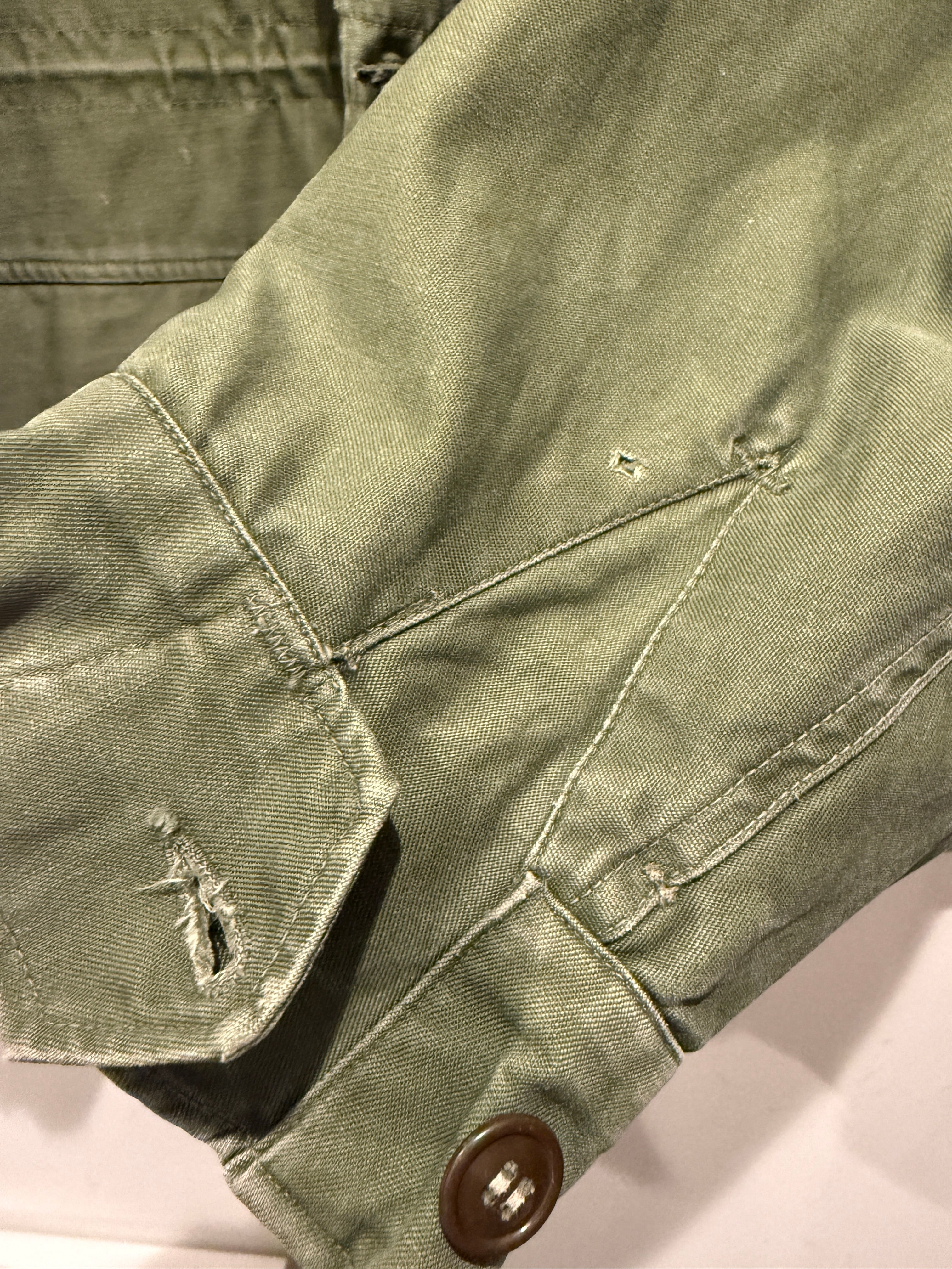 画像の通り内側1つと袖ボタンの欠損、所々に小穴や擦れ、薄汚れ等がございます。大きなダメージは無く着用には問題無いコンディションとなります。