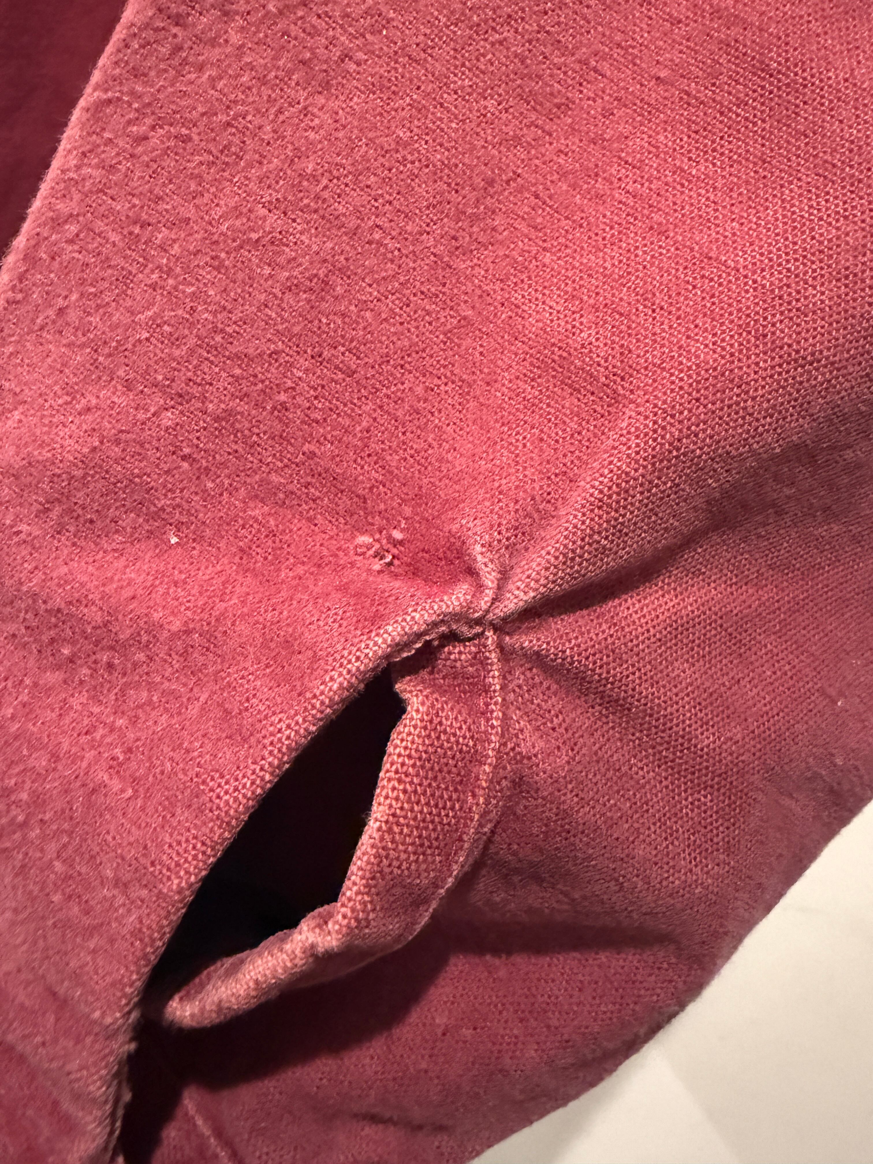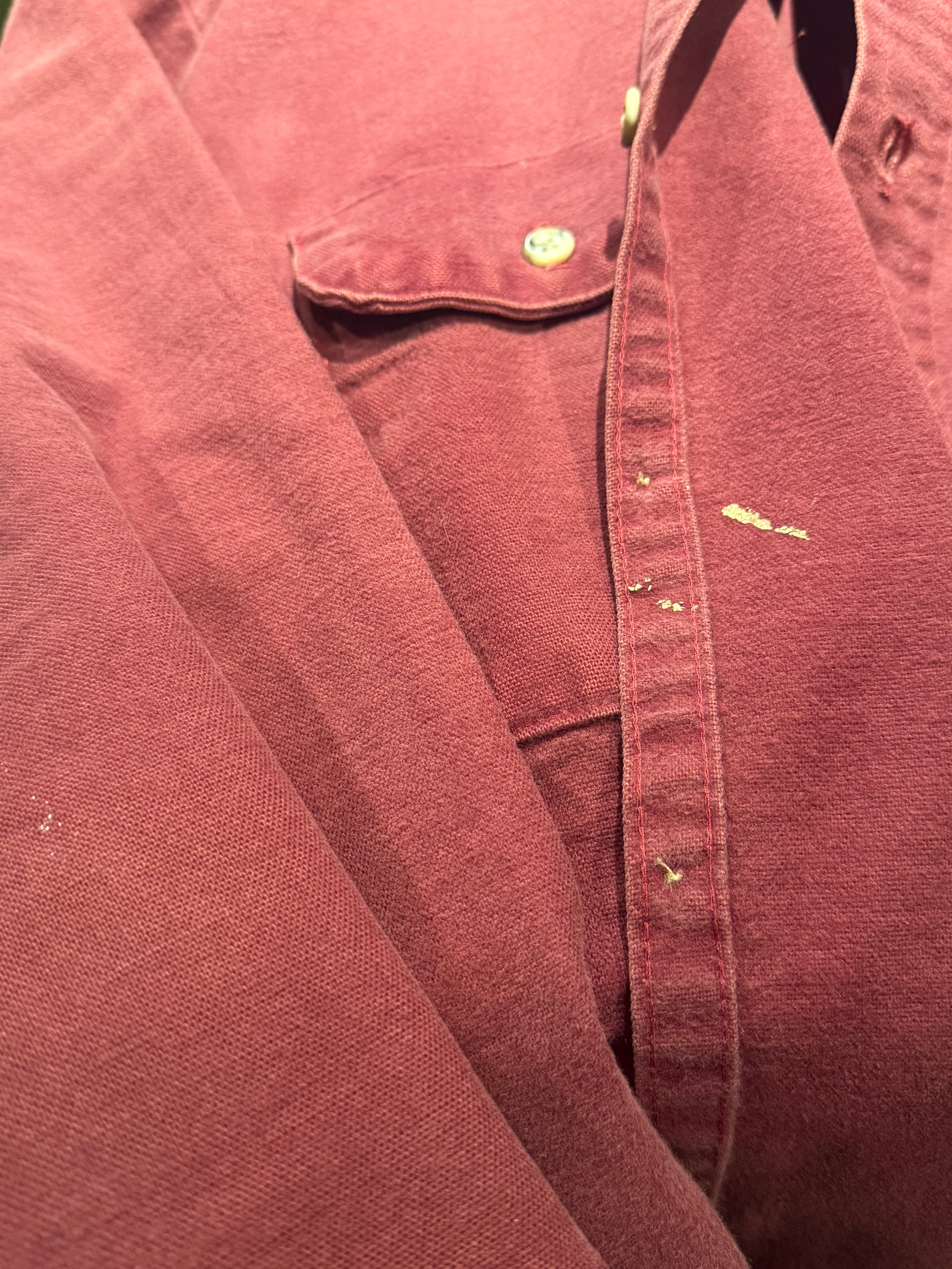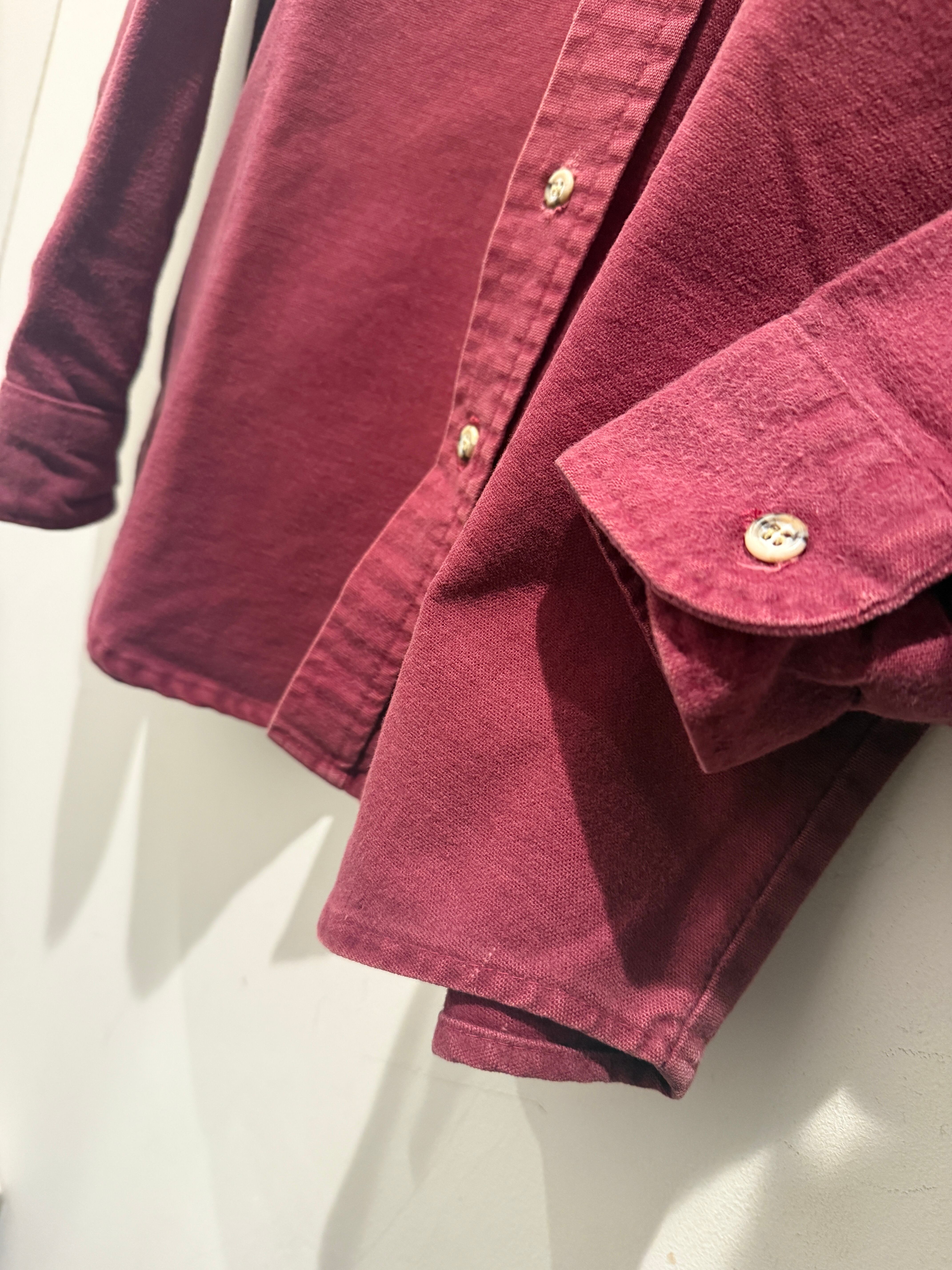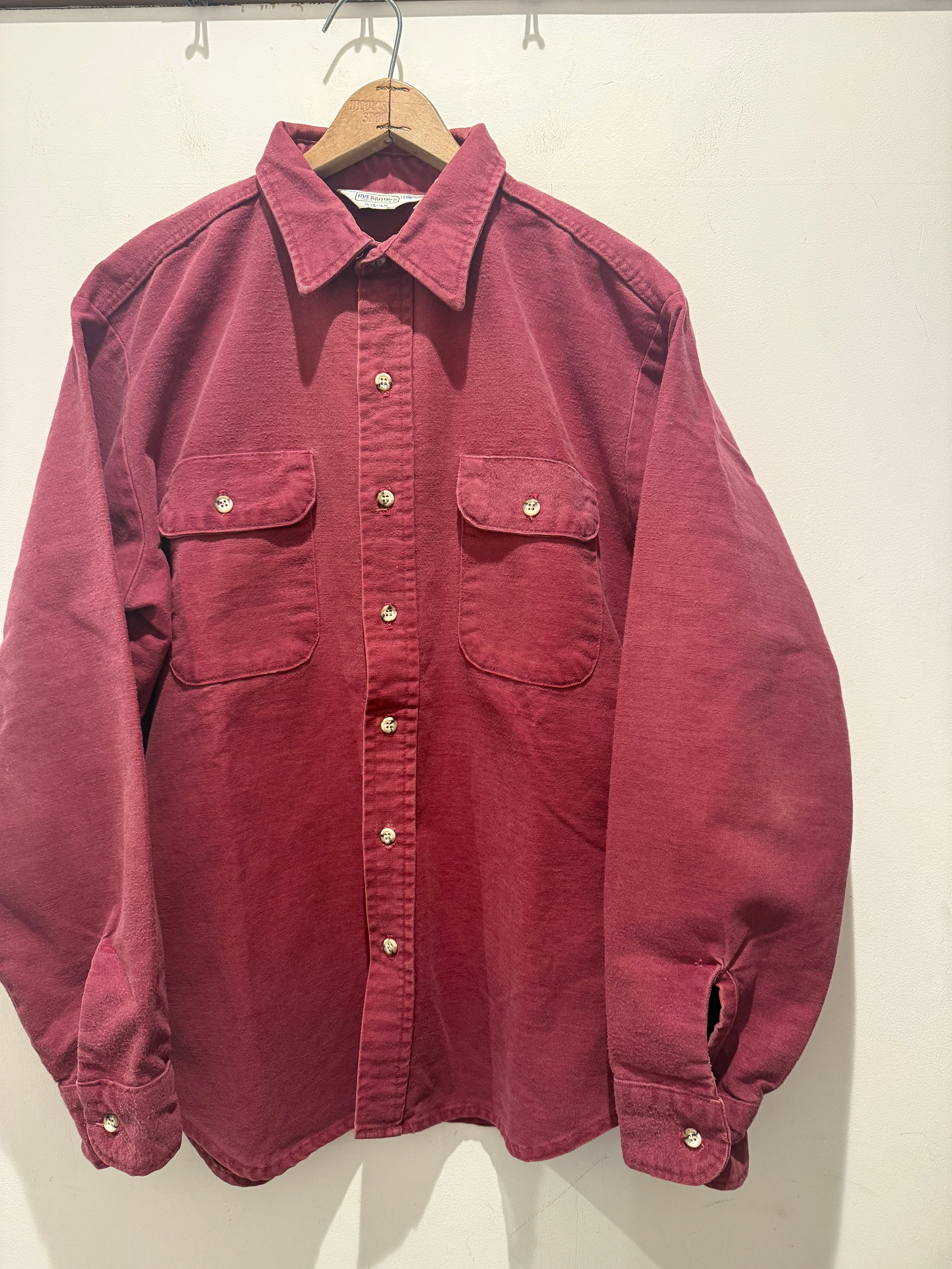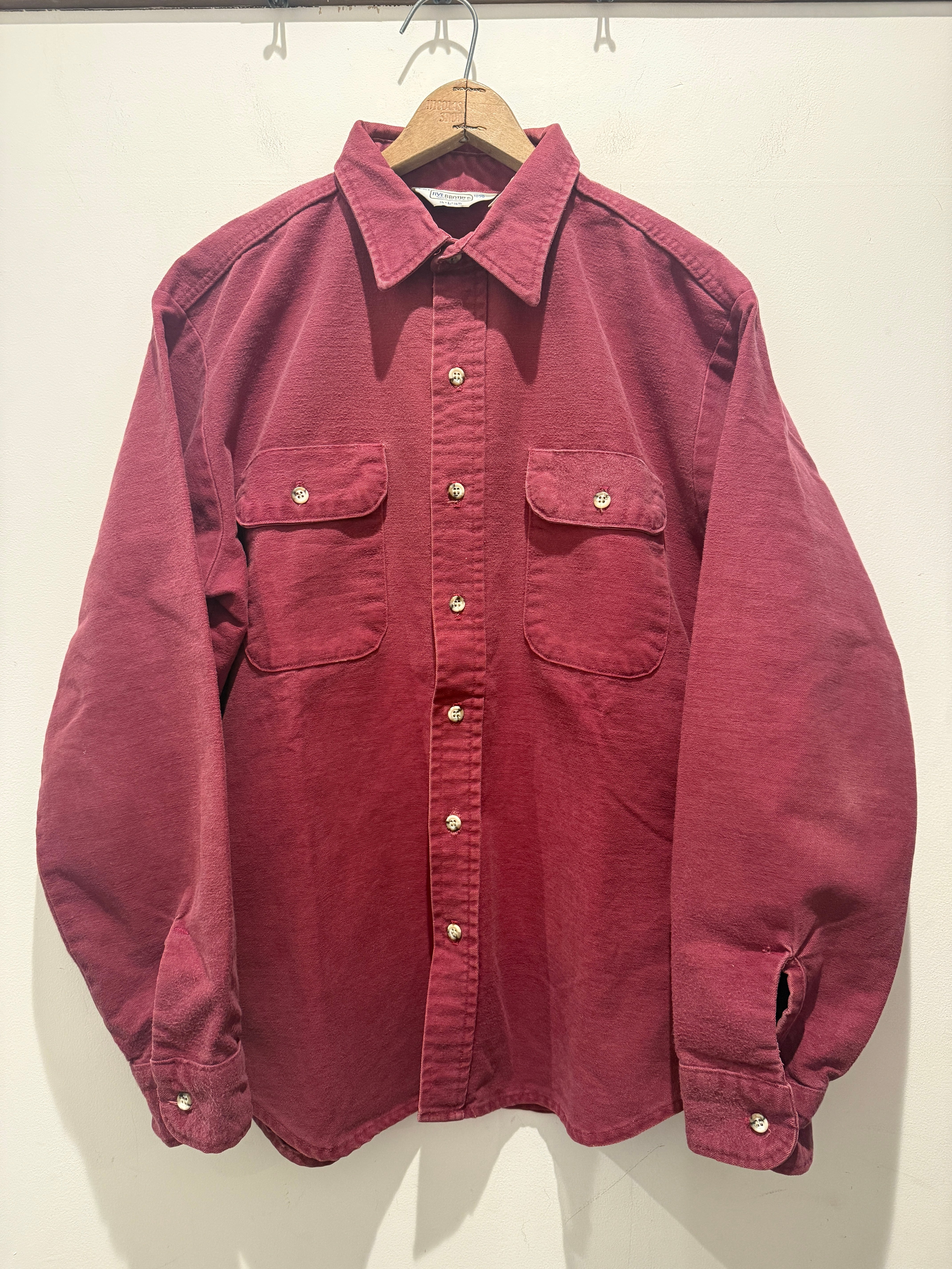 70年代〜80年代アメリカ製ファイブブラザーのネルシャツです。ファイブブラザーといえばチェックのネルシャツが定番ですが、こちらは玉数少ない無地のネルシャツとなります。エンジの無地でフェードしてる感じも最高ですね。身幅がしっかりあって着丈も長すぎずなシルエットも良くオススメです。