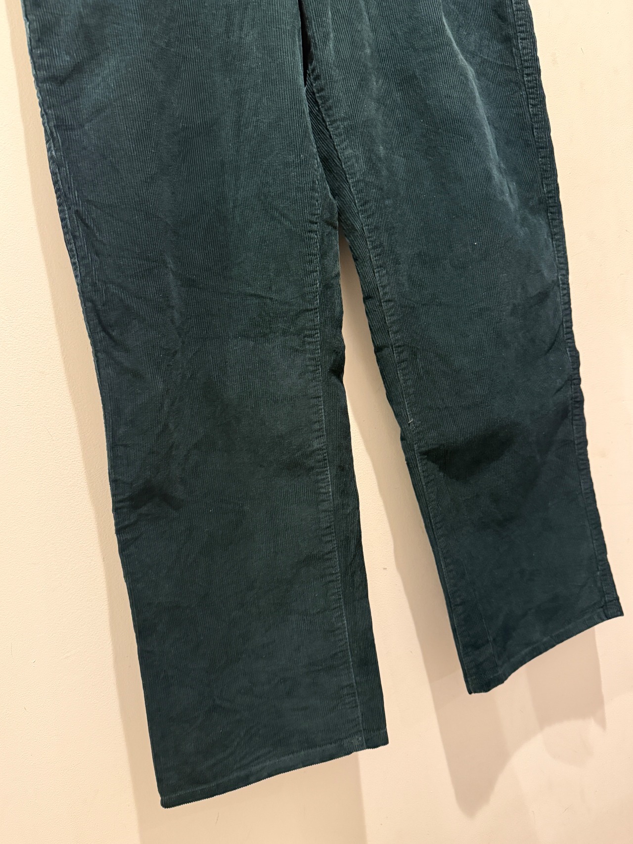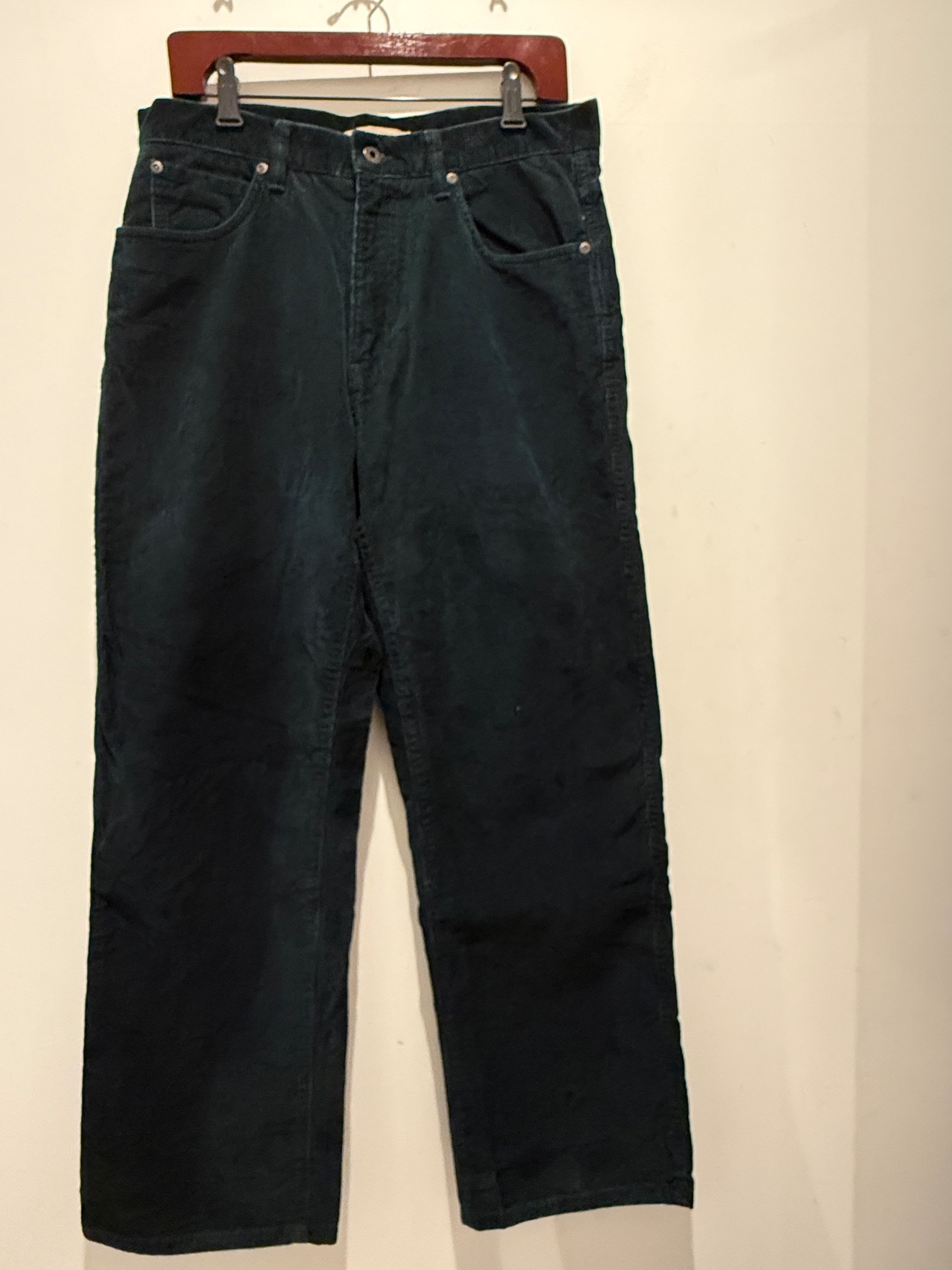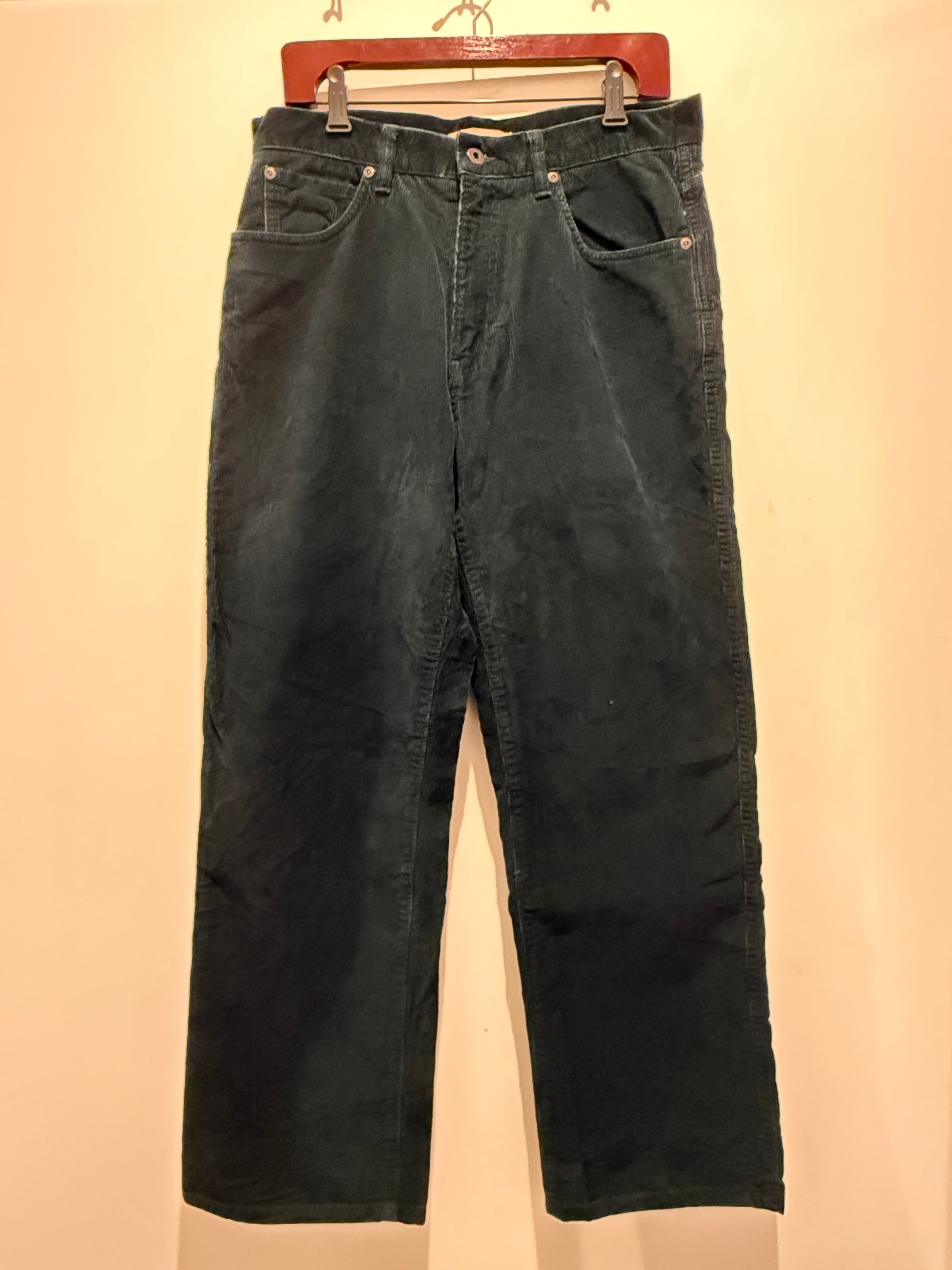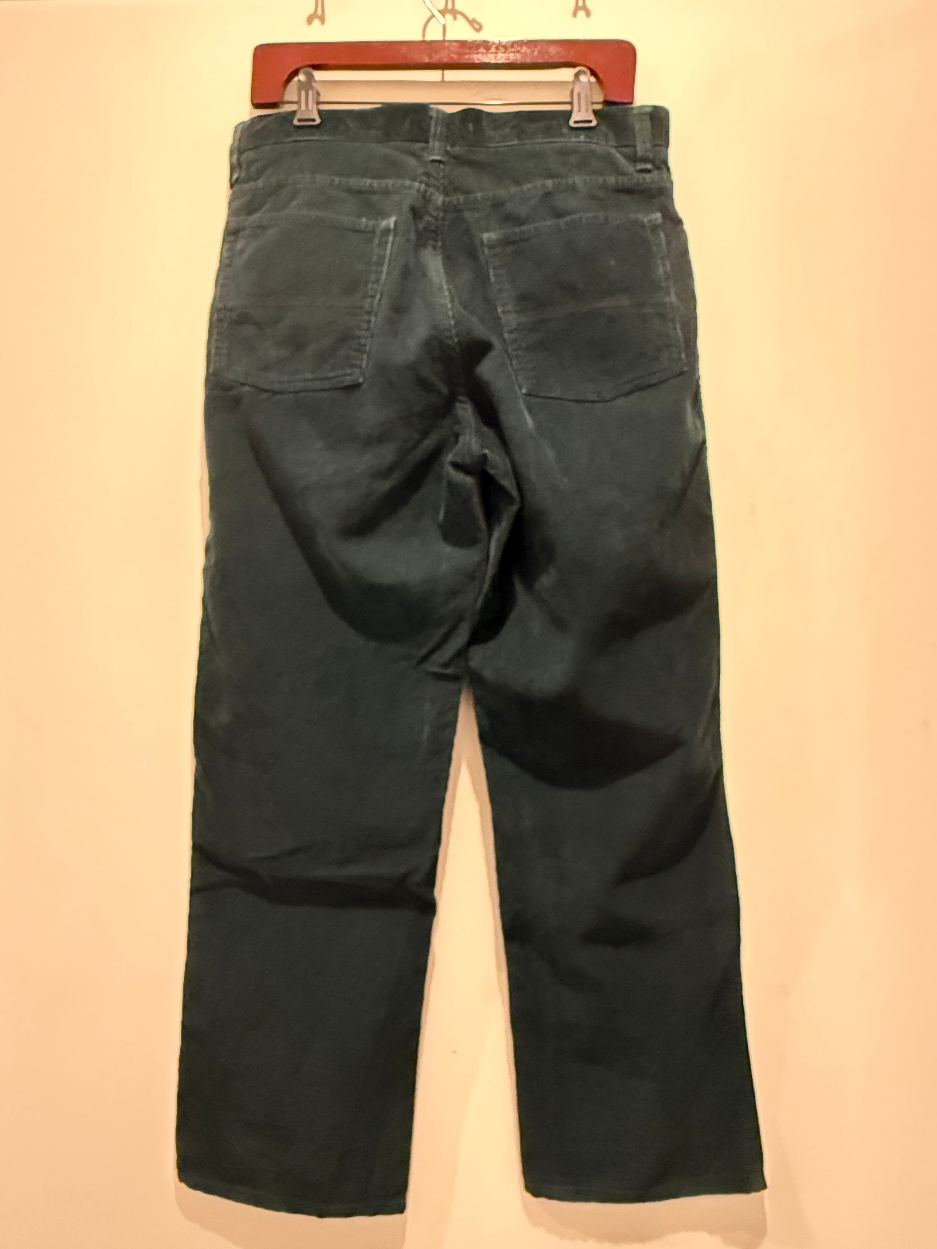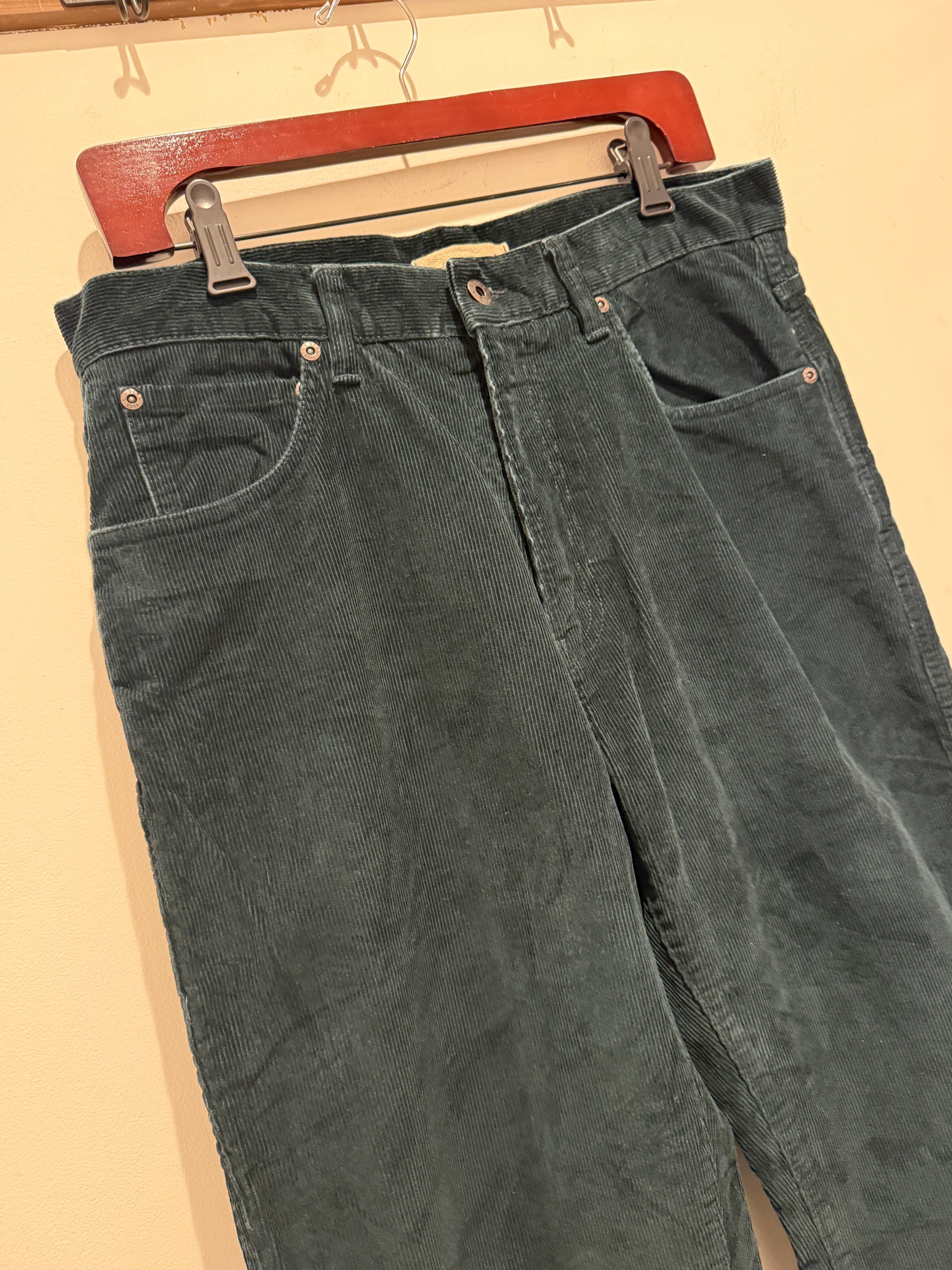 LLビーンのコーデュロイパンツです。ブラックの様にも見えますが、ダークグリーンカラーで少し太めのストレートシルエットがとても良い1本です。生地感も薄くなっていたりするところは無くしっかりハリがあります。そしてサイズW32×L29とサイズ感もとても良くオススメです。
