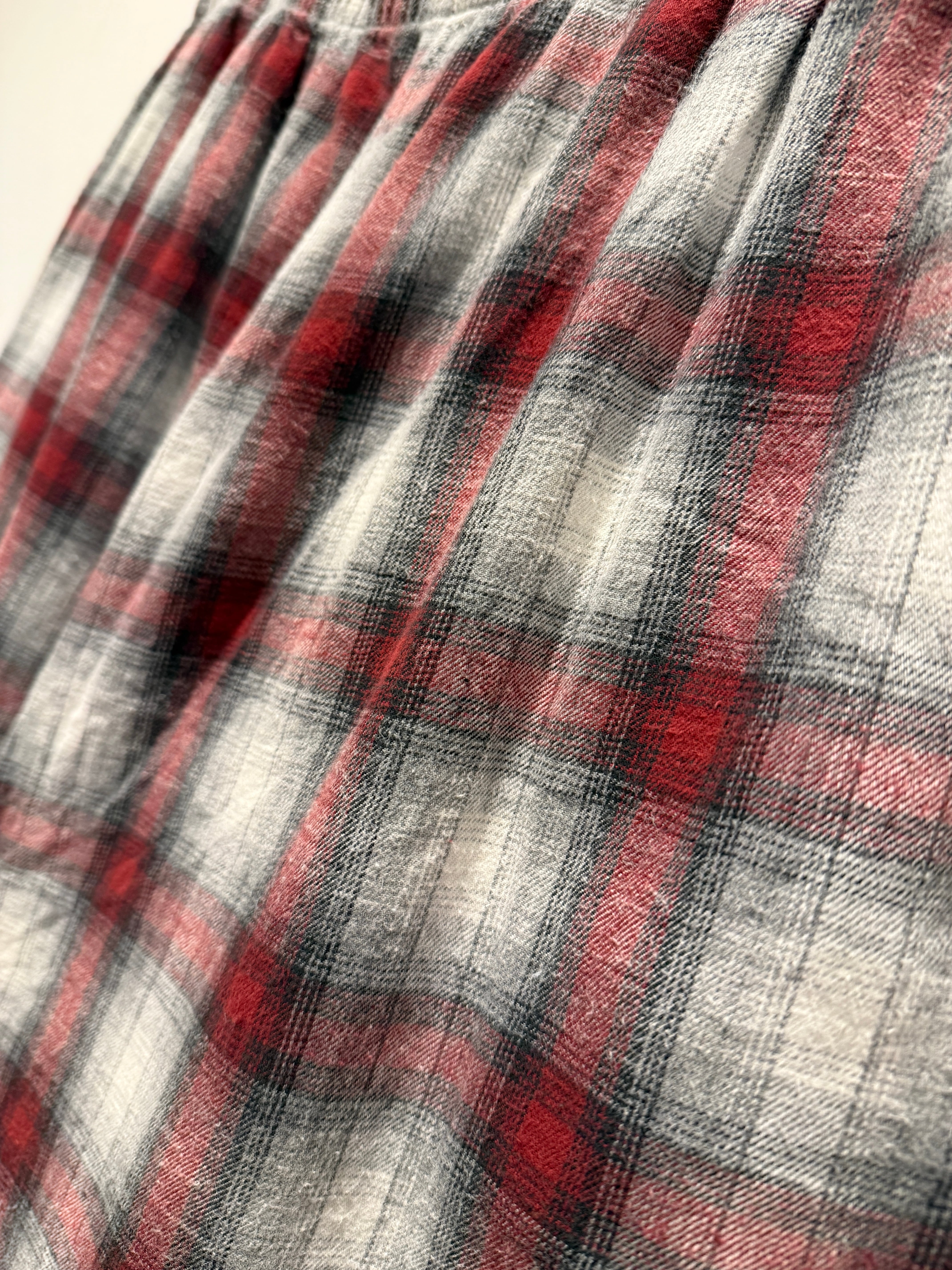 90年代セントジョンズベイのフランネルパンツです。レッド×ホワイト×グレー×ブラックのオンブレチェックがとても良い配色です。オンブレチェックでシャツよりパンツの方が出てこない印象ですね。ブランドもセントジョンズベイとしっかりサイドポケット付きでオススメなパンツです。