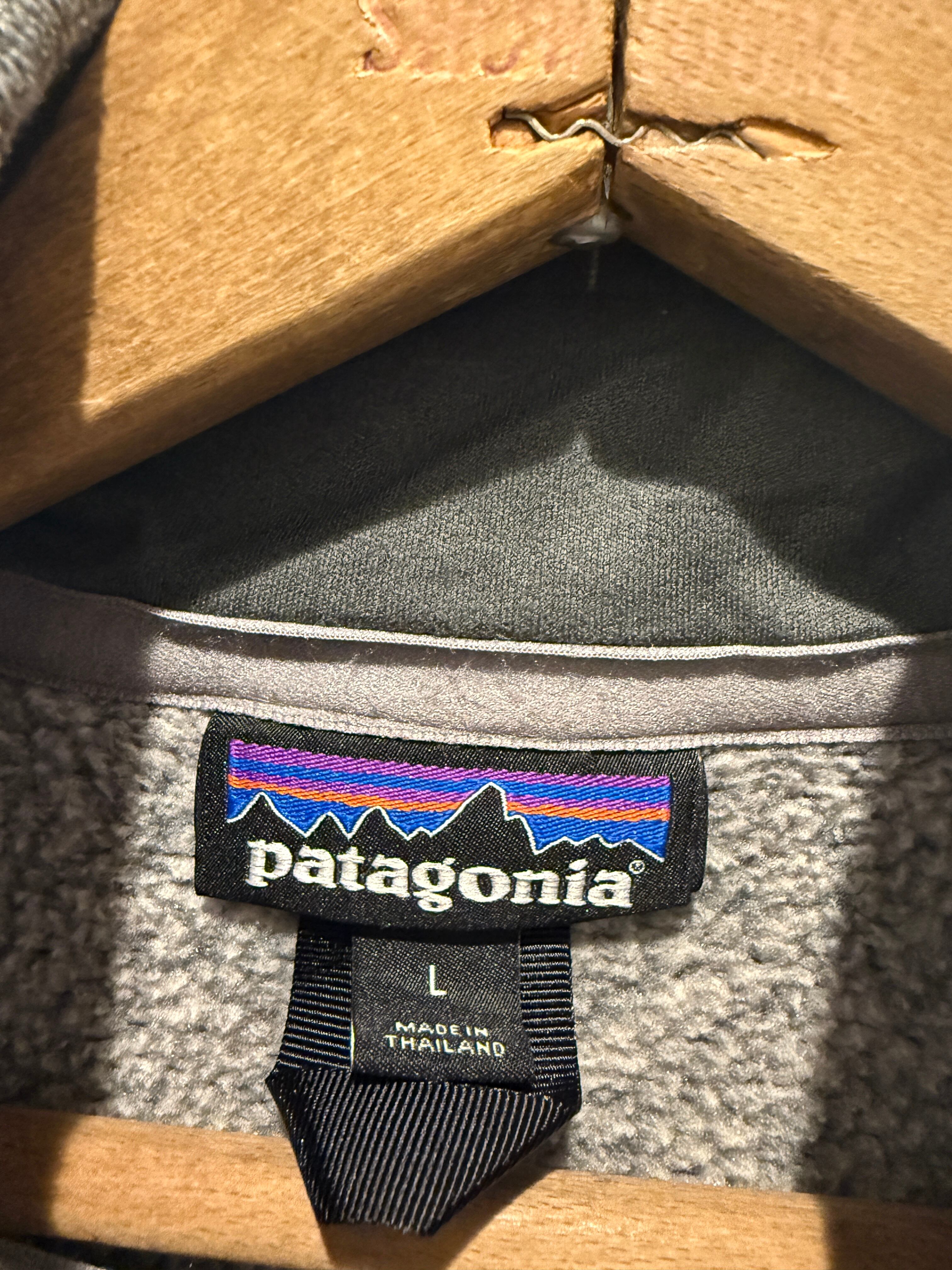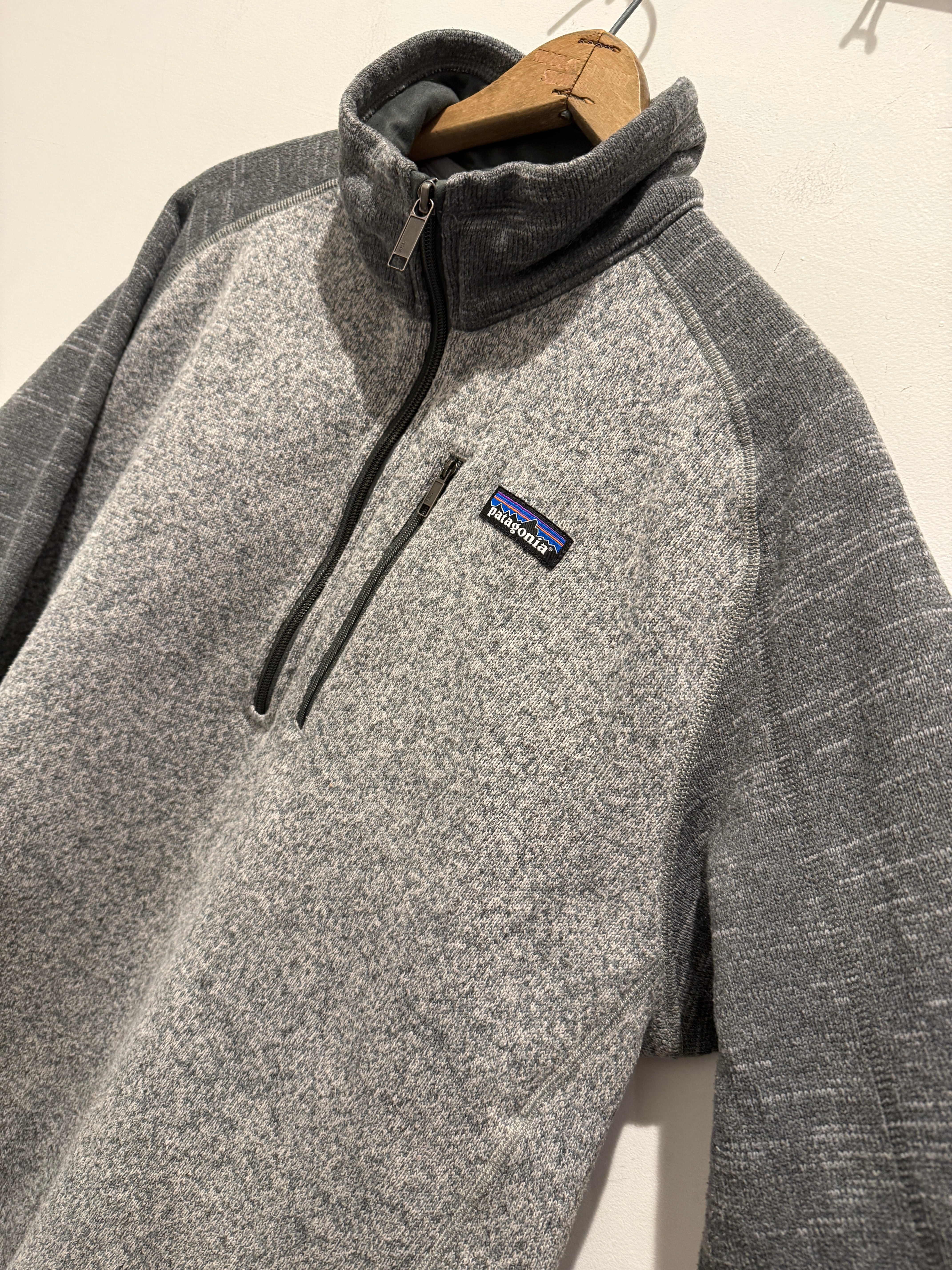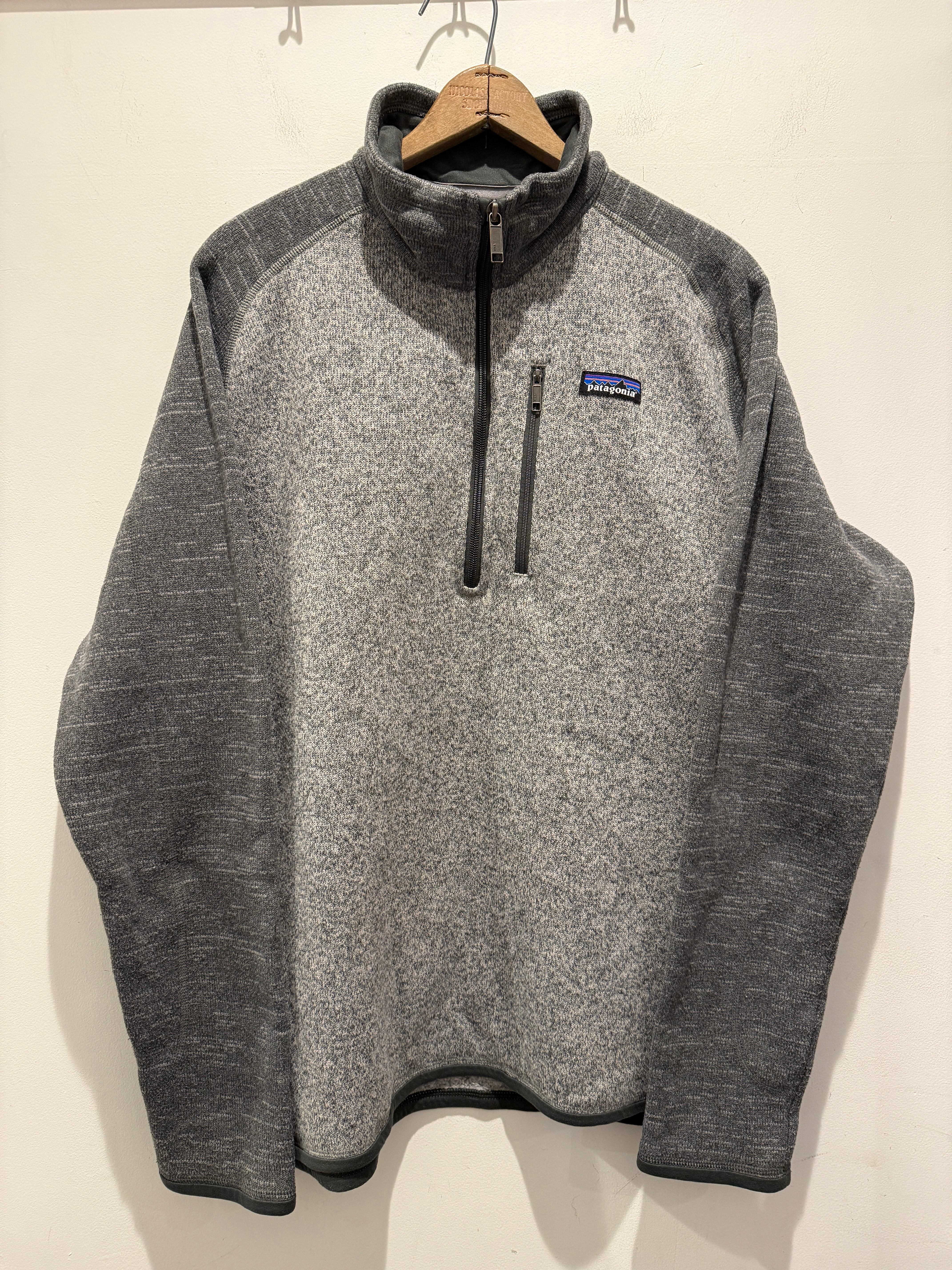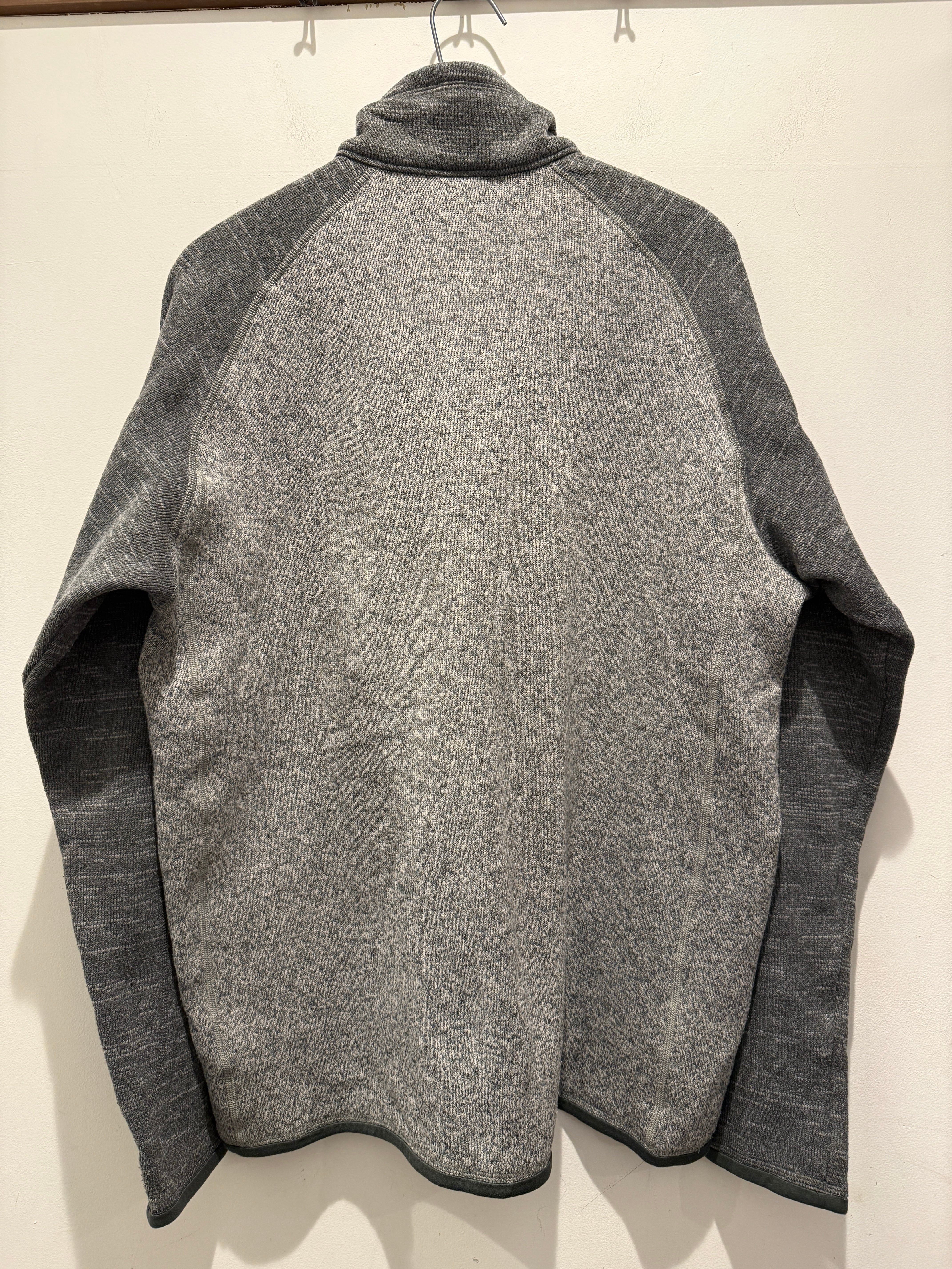 パタゴニアのベターセーターです。カラーはライトグレーとチャコールグレーのツートンでハーフジップタイプとなります。スタンド襟とジップ付きのポケットが機能面でも最高ですね。コンディションも良くラグランスリーブで着用しやすく定番アイテムとしてもオススメです。