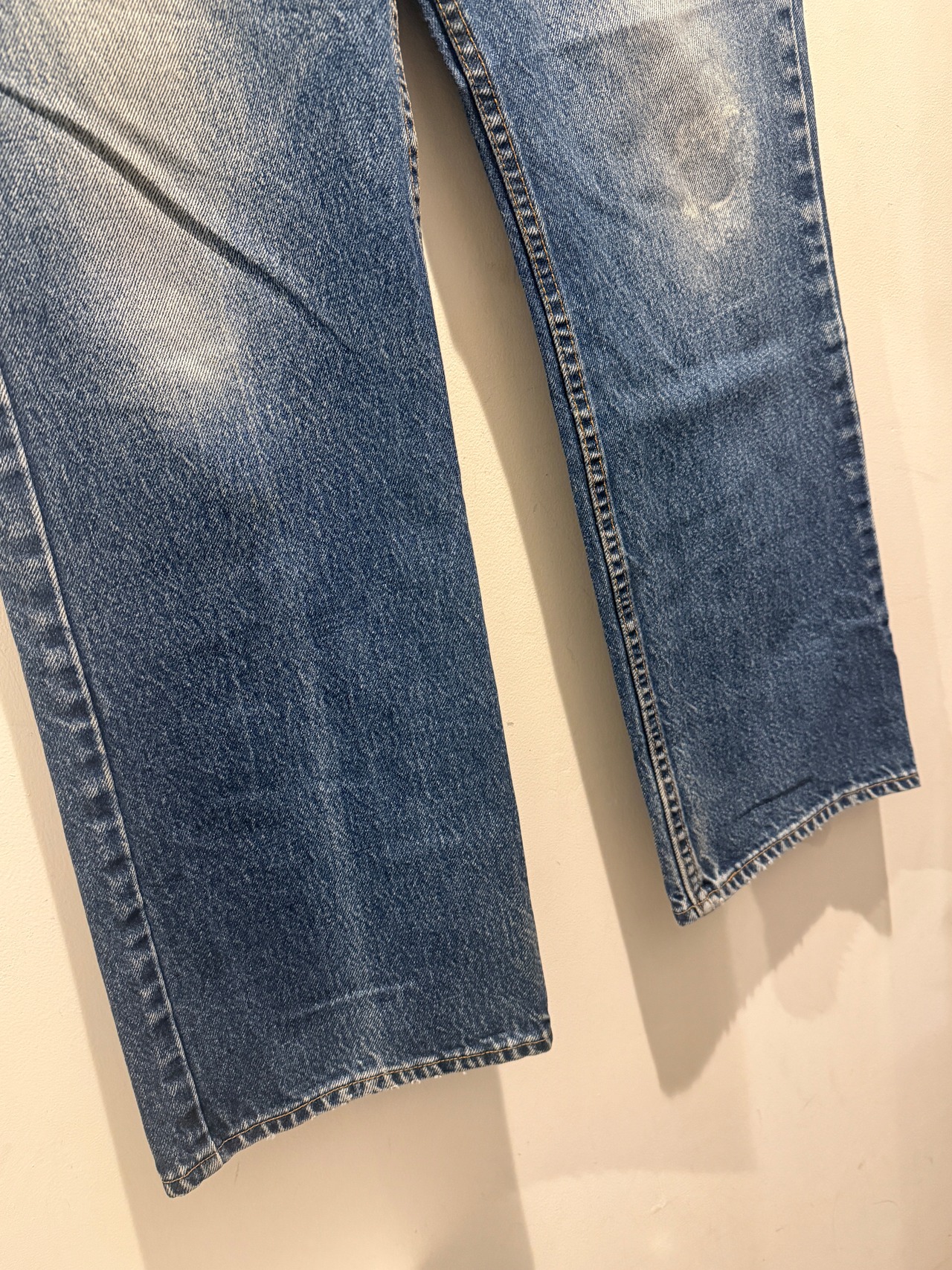2000年代アメリカ製リーバイス517デニムパンツです。ブーツカットが特徴の517。こちらは2001年11月製造のトップボタン裏554のアメリカ製となります。薄らとヒゲも出ていて良い色落ち感の1本です。ウエストを絞って緩めに履く517もお洒落ですね。裾もオリジナルレングスと色落ち具合も良くオススメです。