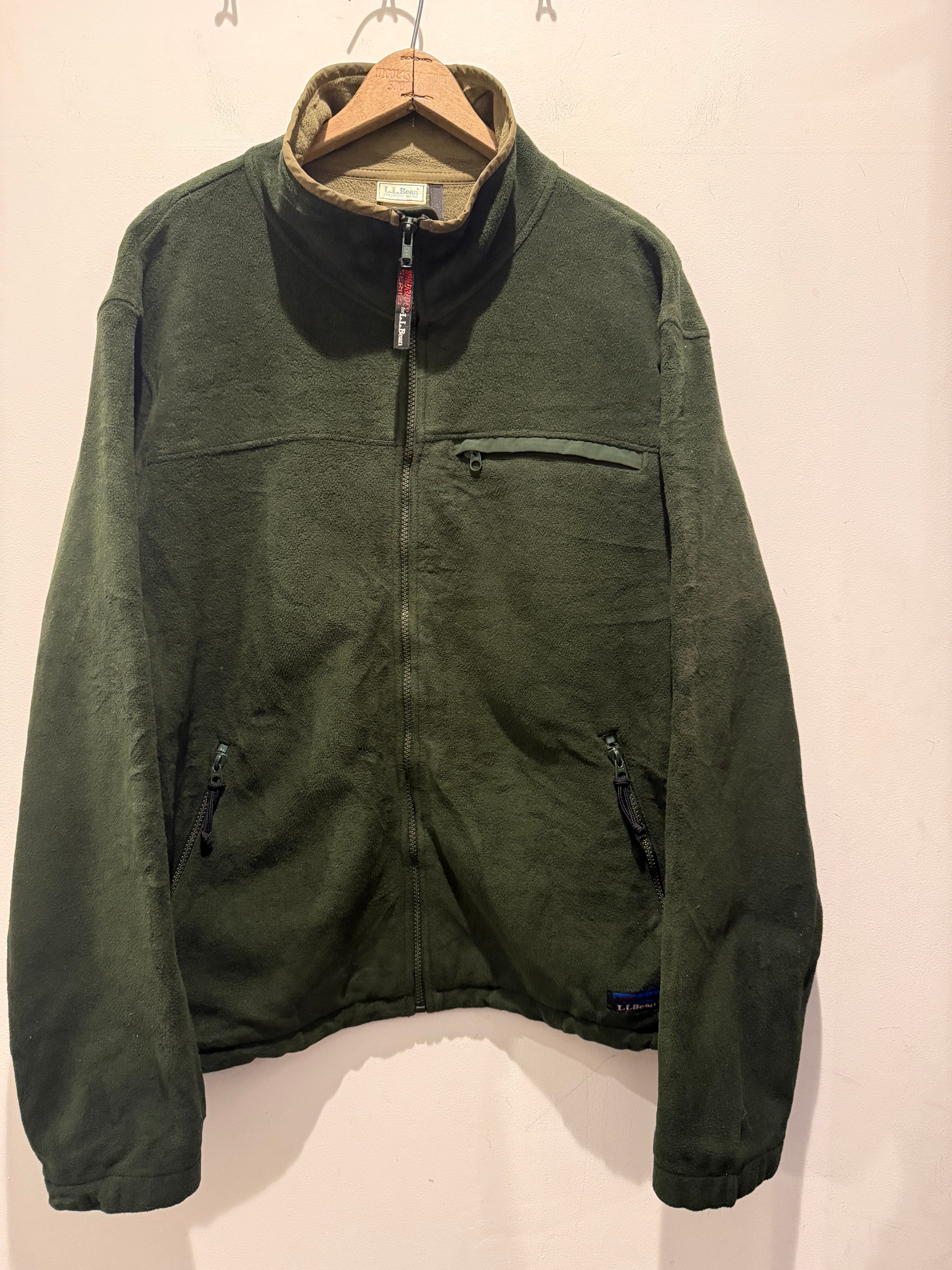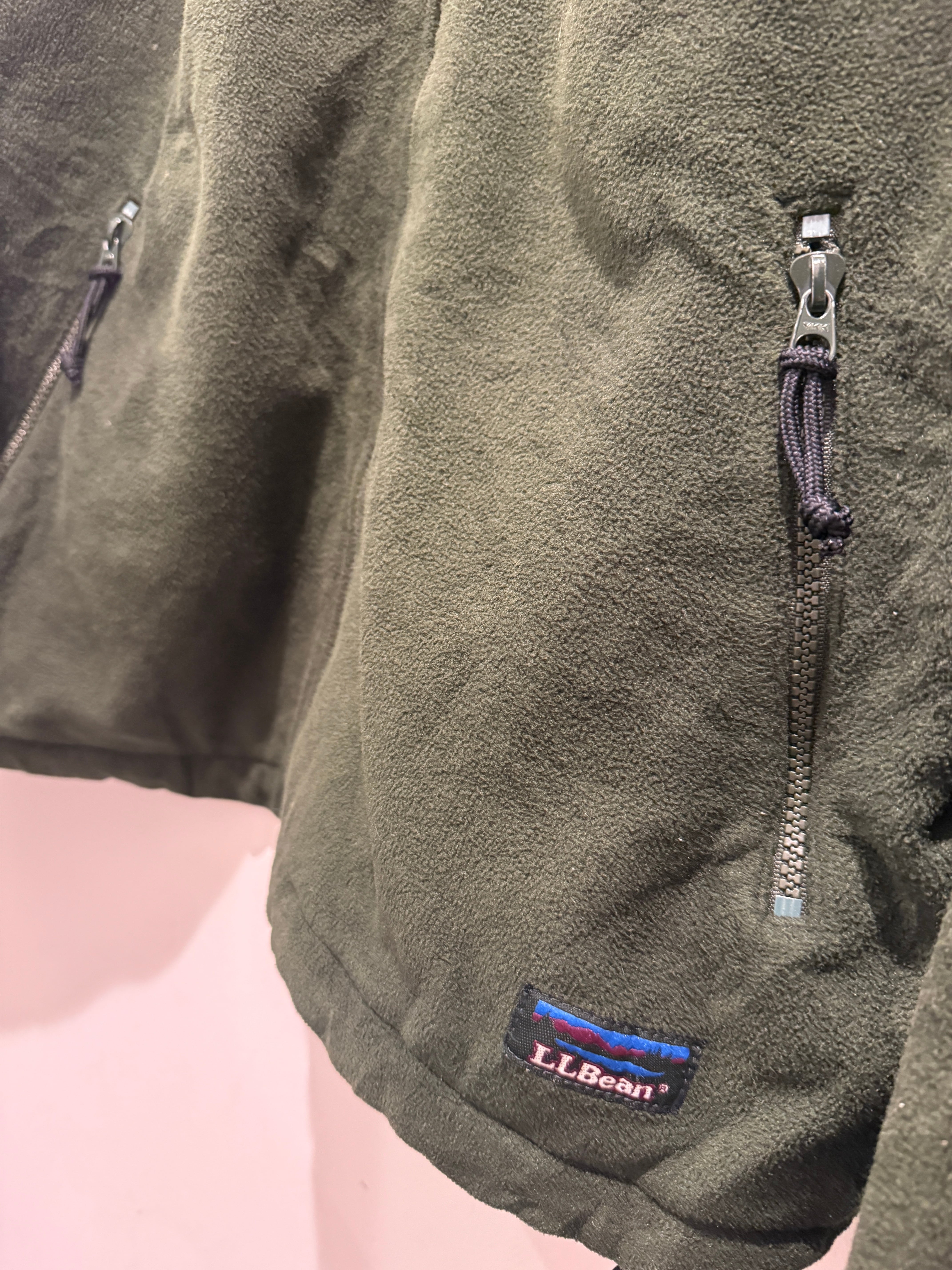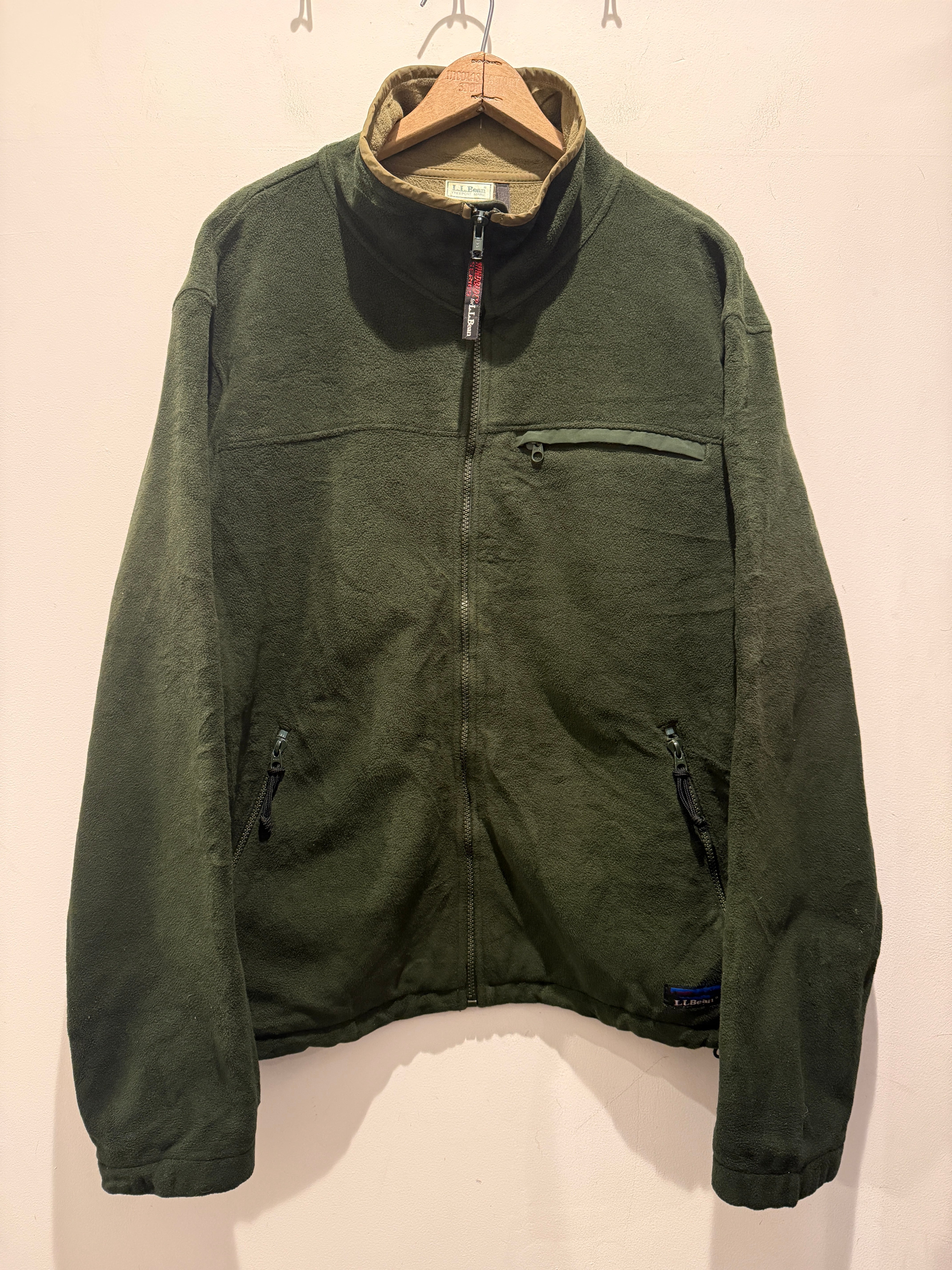 80年代〜90年代LLビーンのフルジップフリースです。表がオリーブグリーン、裏地がコヨーテカラーとミリタリーな配色がとても良い1着です。さり気無く裾に付くタグとドローコードで絞れるのも最高ですね。肉厚な生地感でポーラテックとアウターとしても着用出来てオススメです。