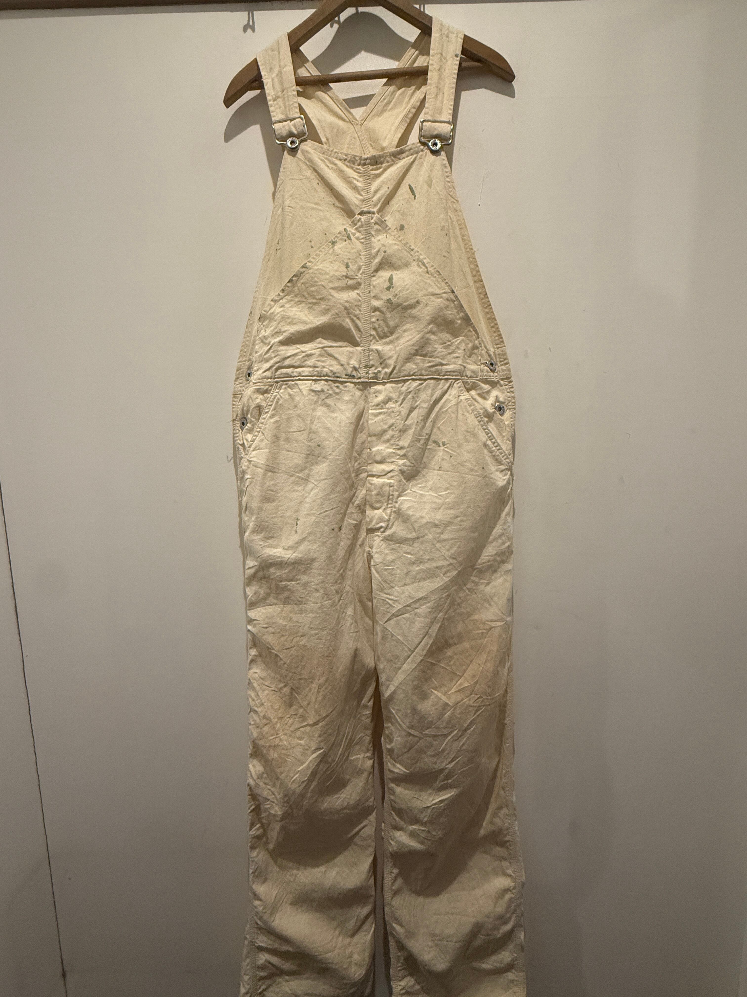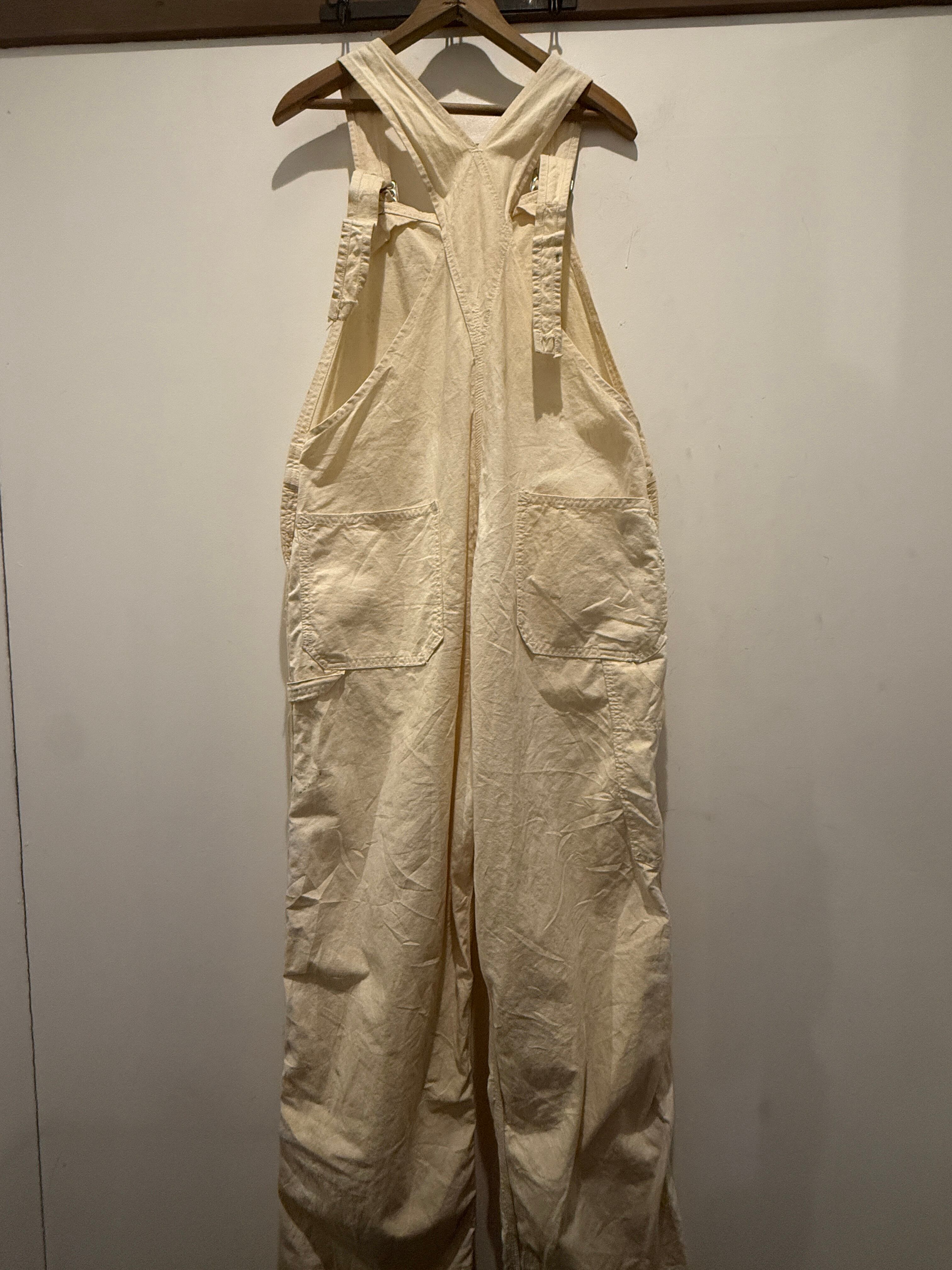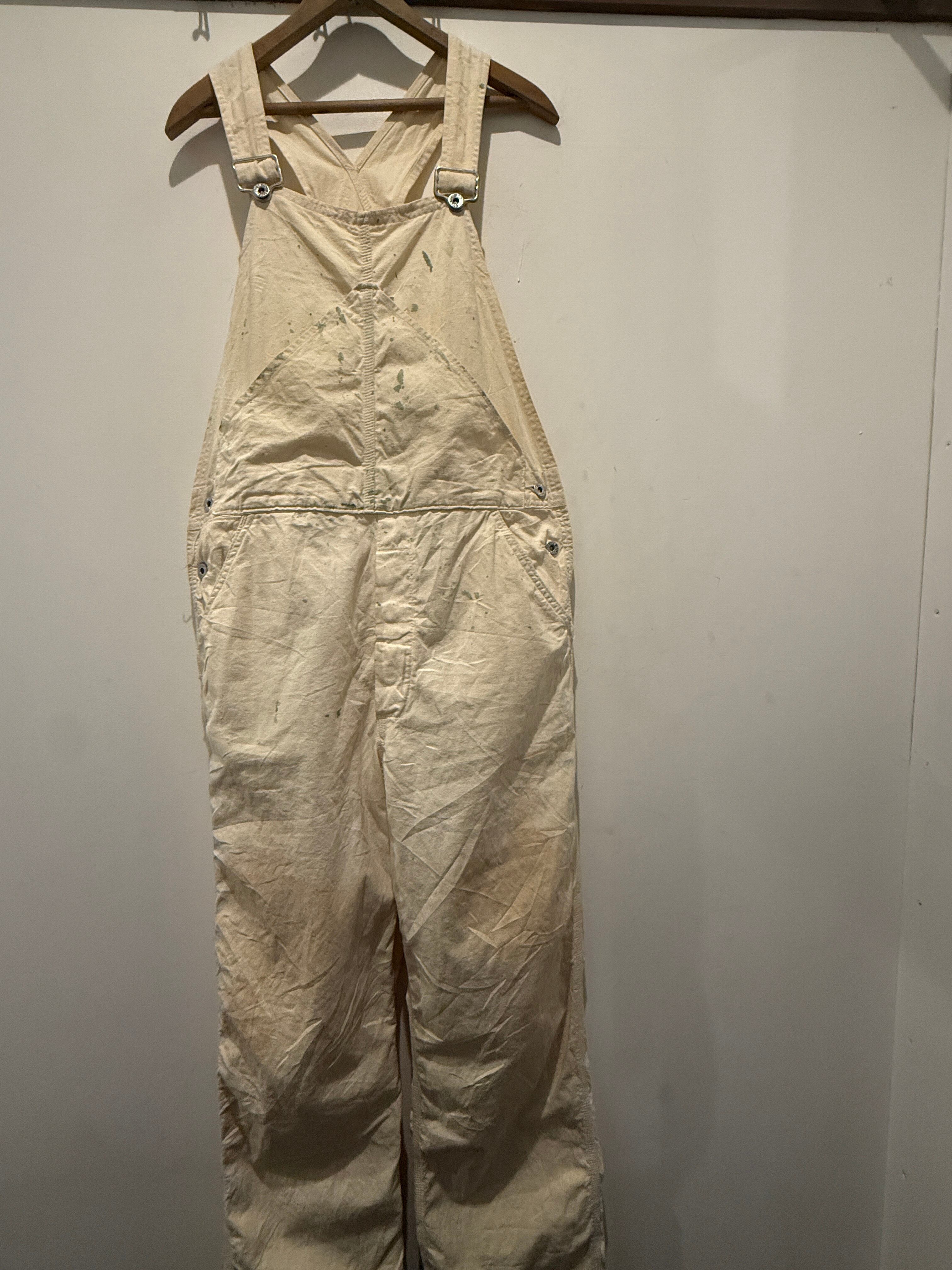 50年代ヴィンテージGO-PFORのオーバーオールです。アメリカ・ミネソタ州ニコレット郡の都市、セントピーターのJOHNSON&COMPANYのブランドGO-PFOR。こちらは生成りのオーバーオールで山ポケ仕様がとても良い1着です。アルミのドーナツボタンでユニオンタグも残っています。またフラッシャーが付いていたと思われるホッチキスの針も残っていてペンキなど雰囲気も最高でサイズ感も良くオススメなオーバーオールです。