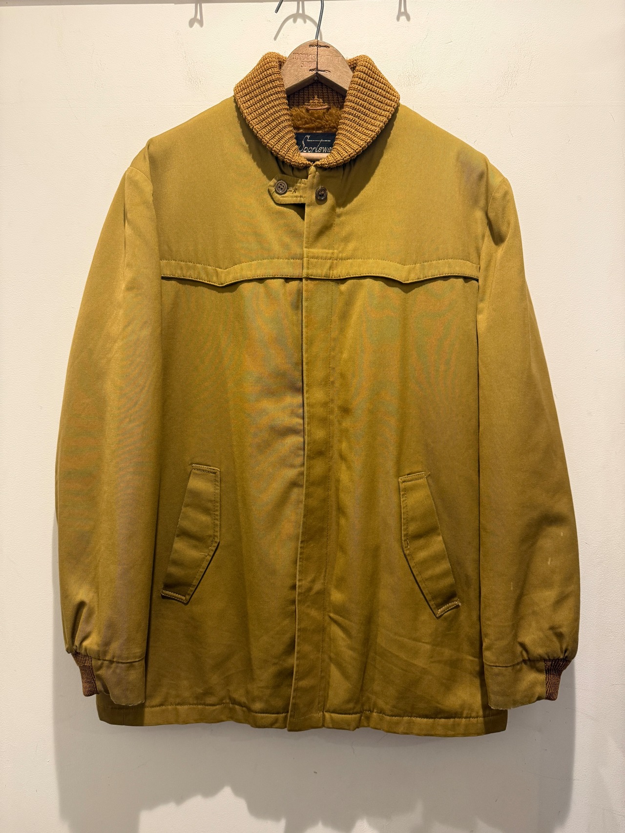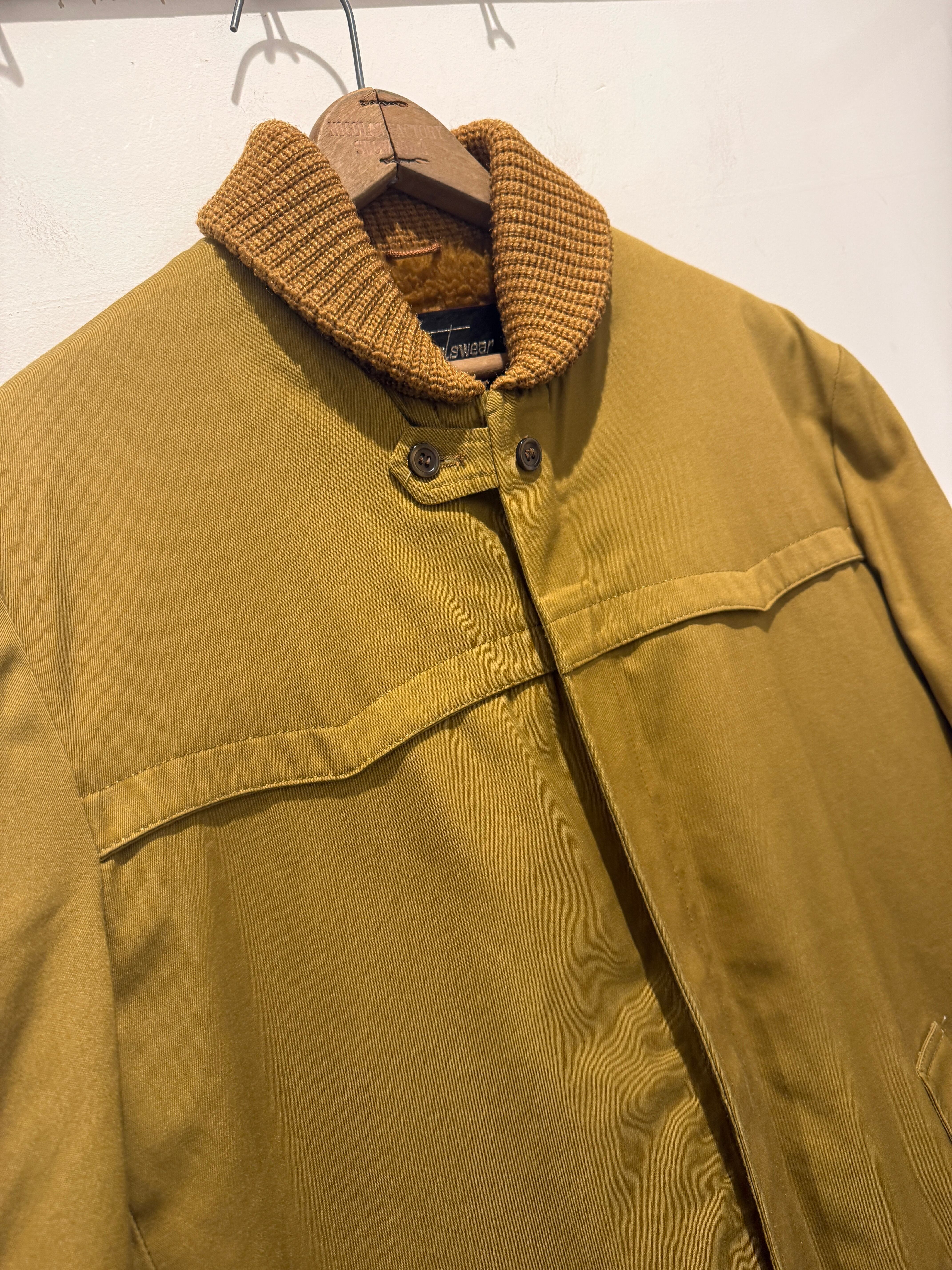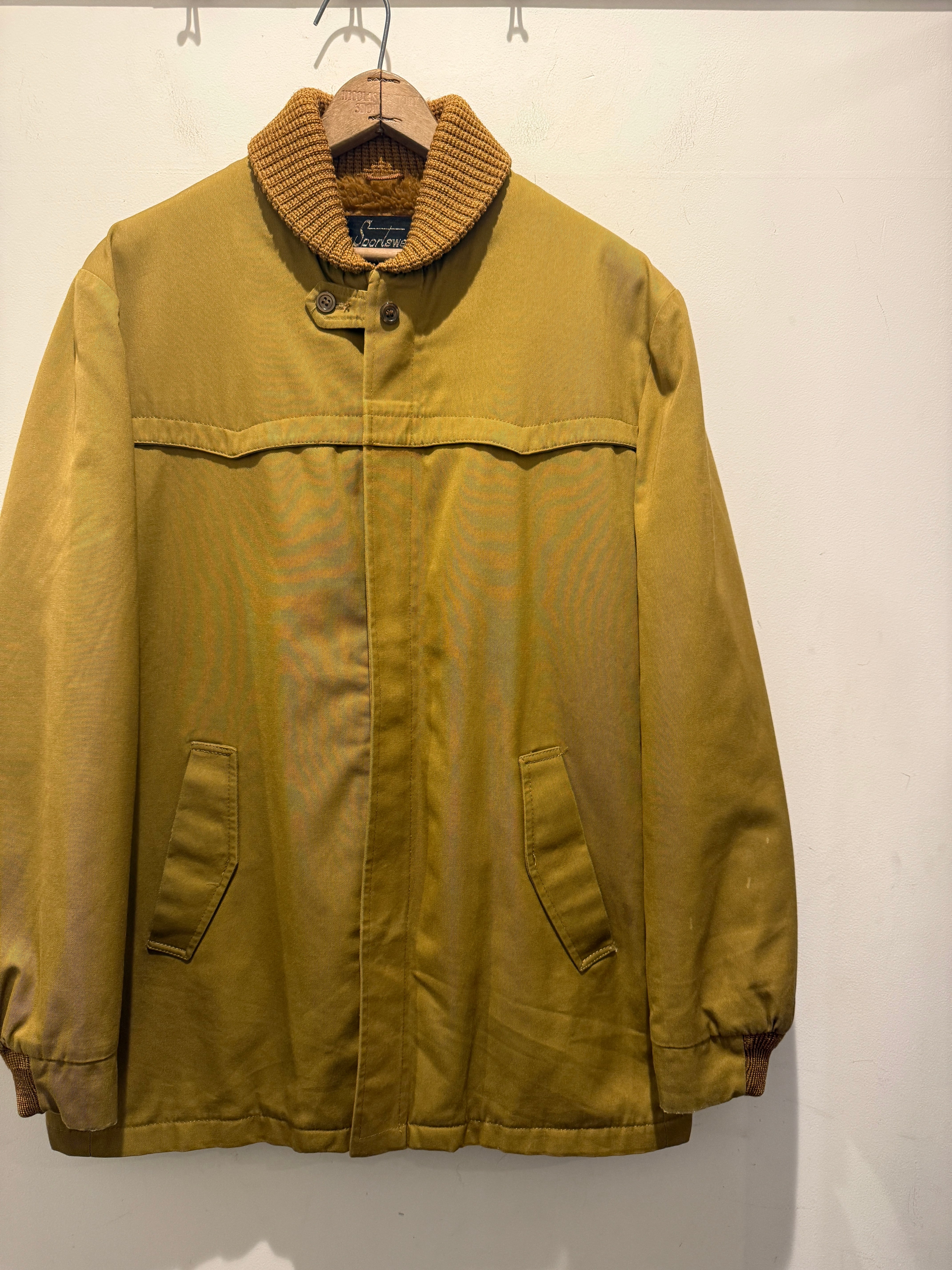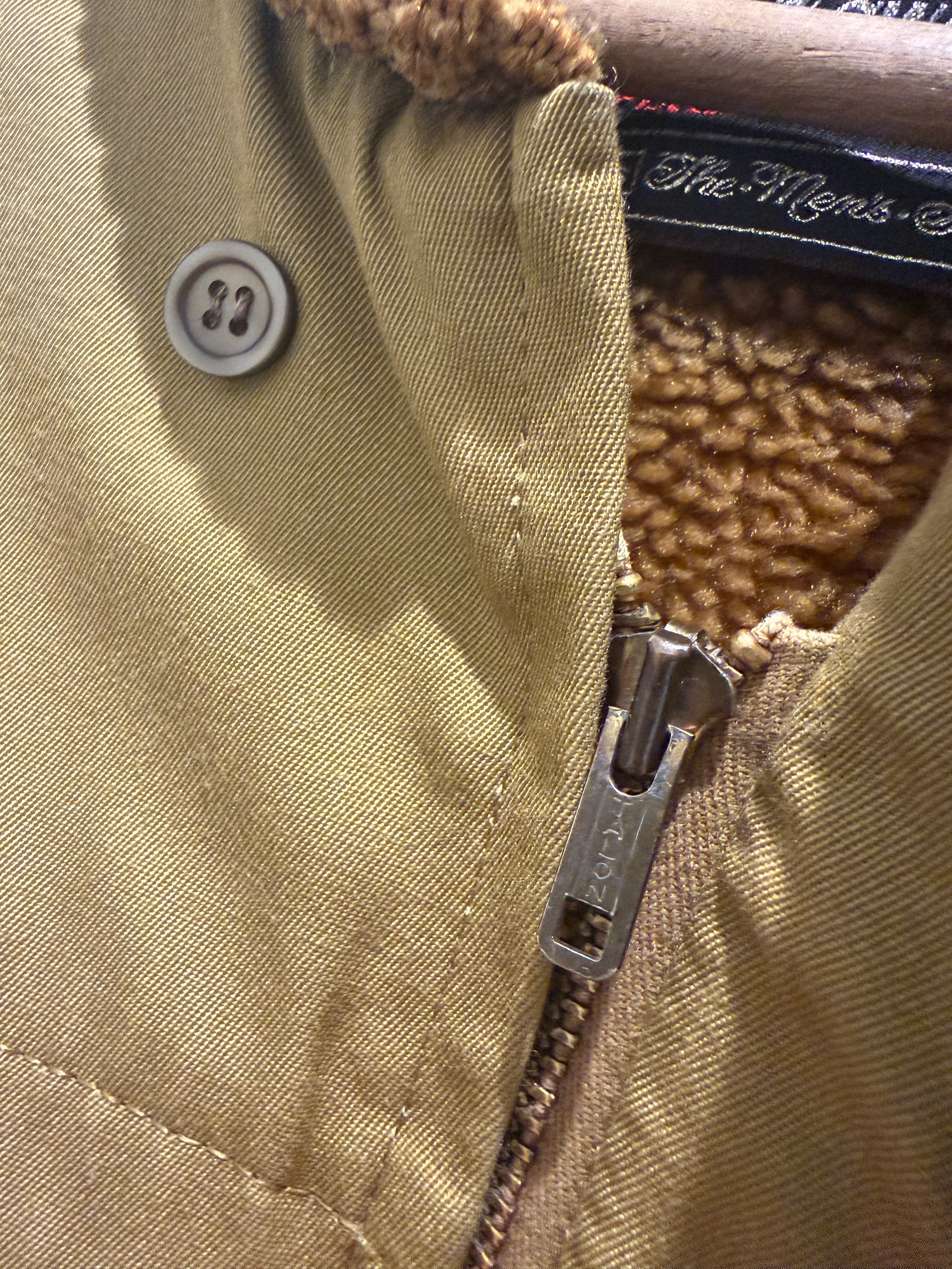 70年代シアーズのファラオジャケットです。コヨーテカラーでウールでは無いファラオジャケットとなります。ジッパーはブラスのTALONでヨークの形などもとても良いですね。裏地のボアもフカフカでウール物より軽くて着用しやすくオススメです。