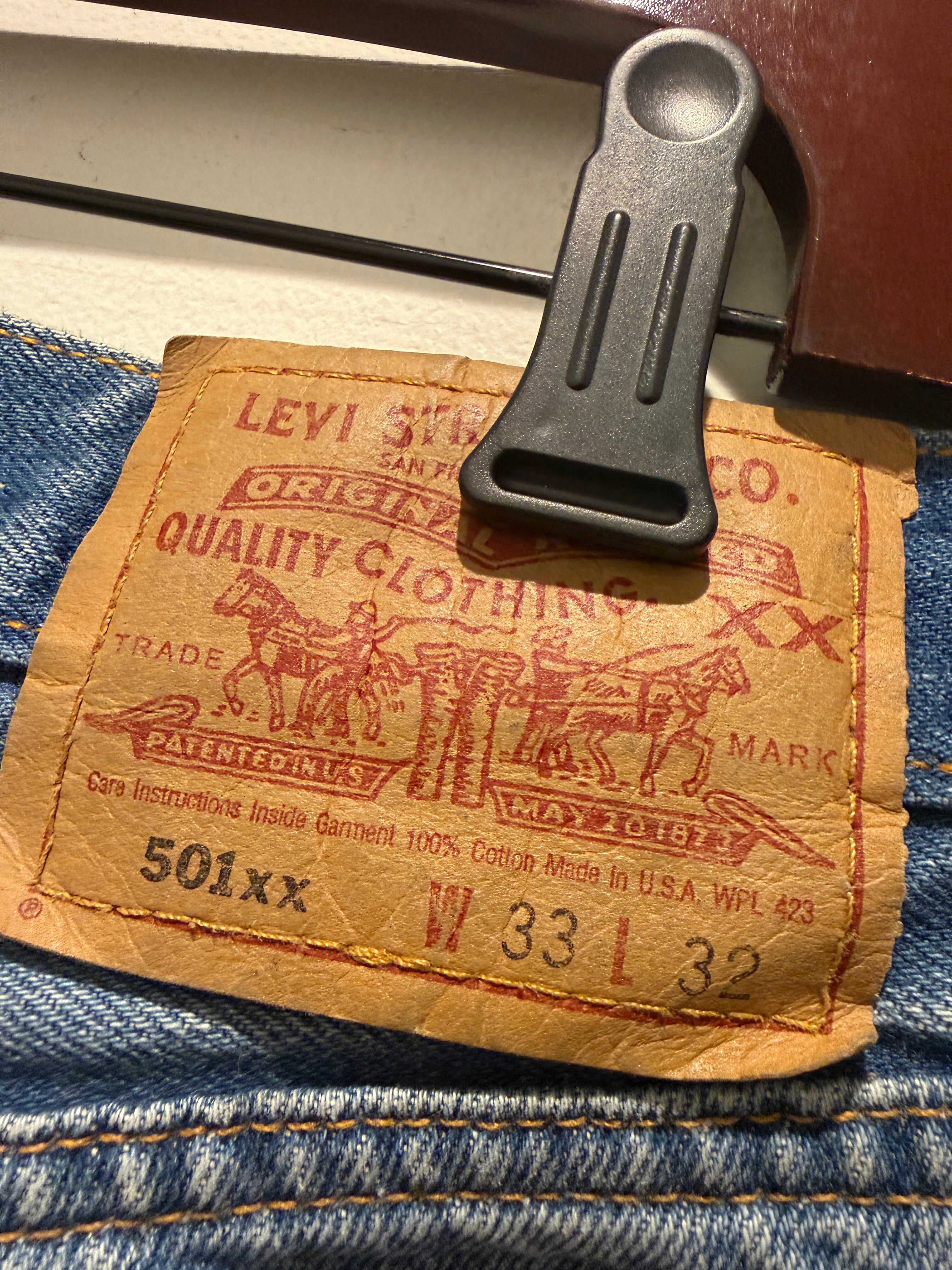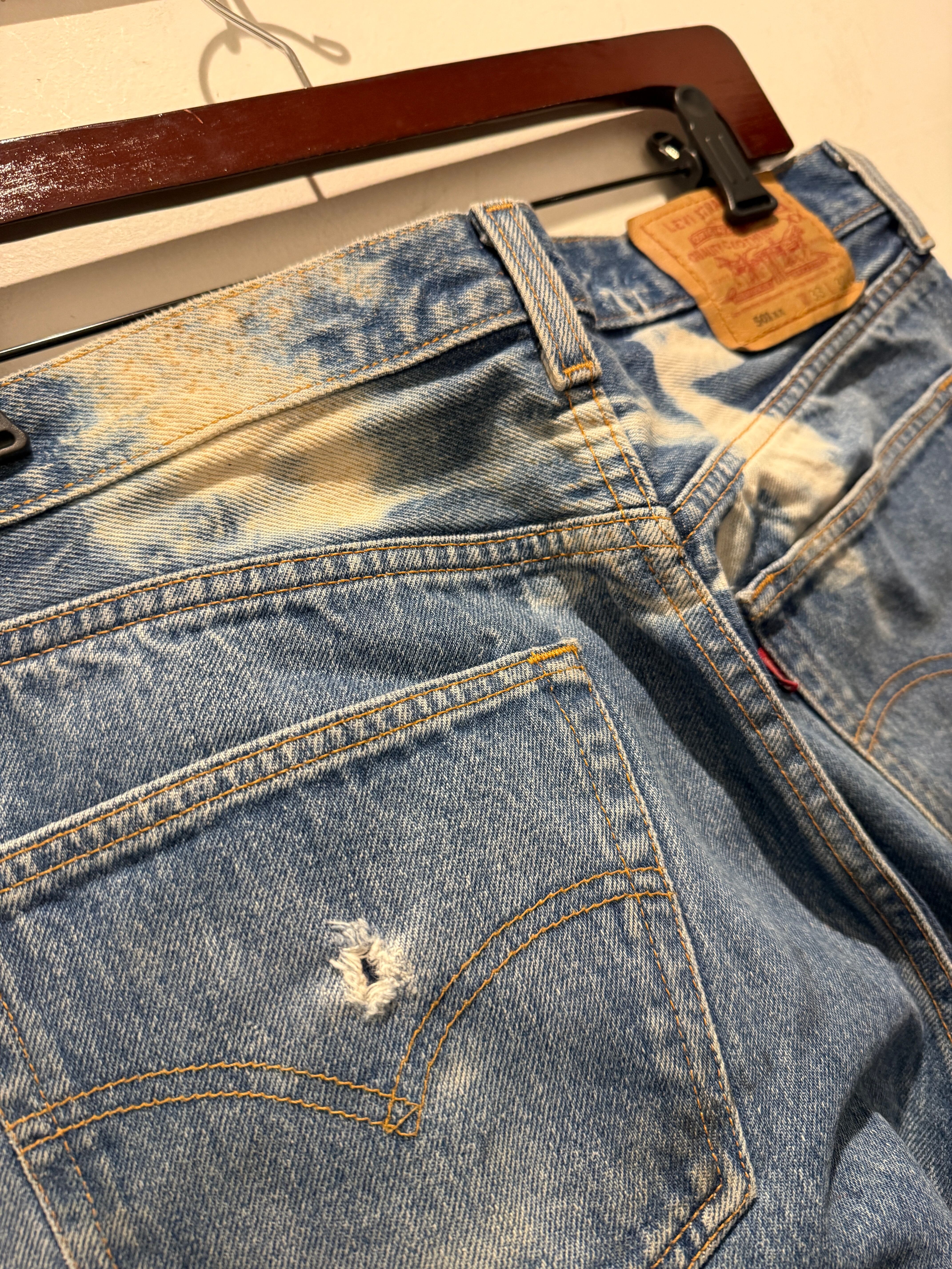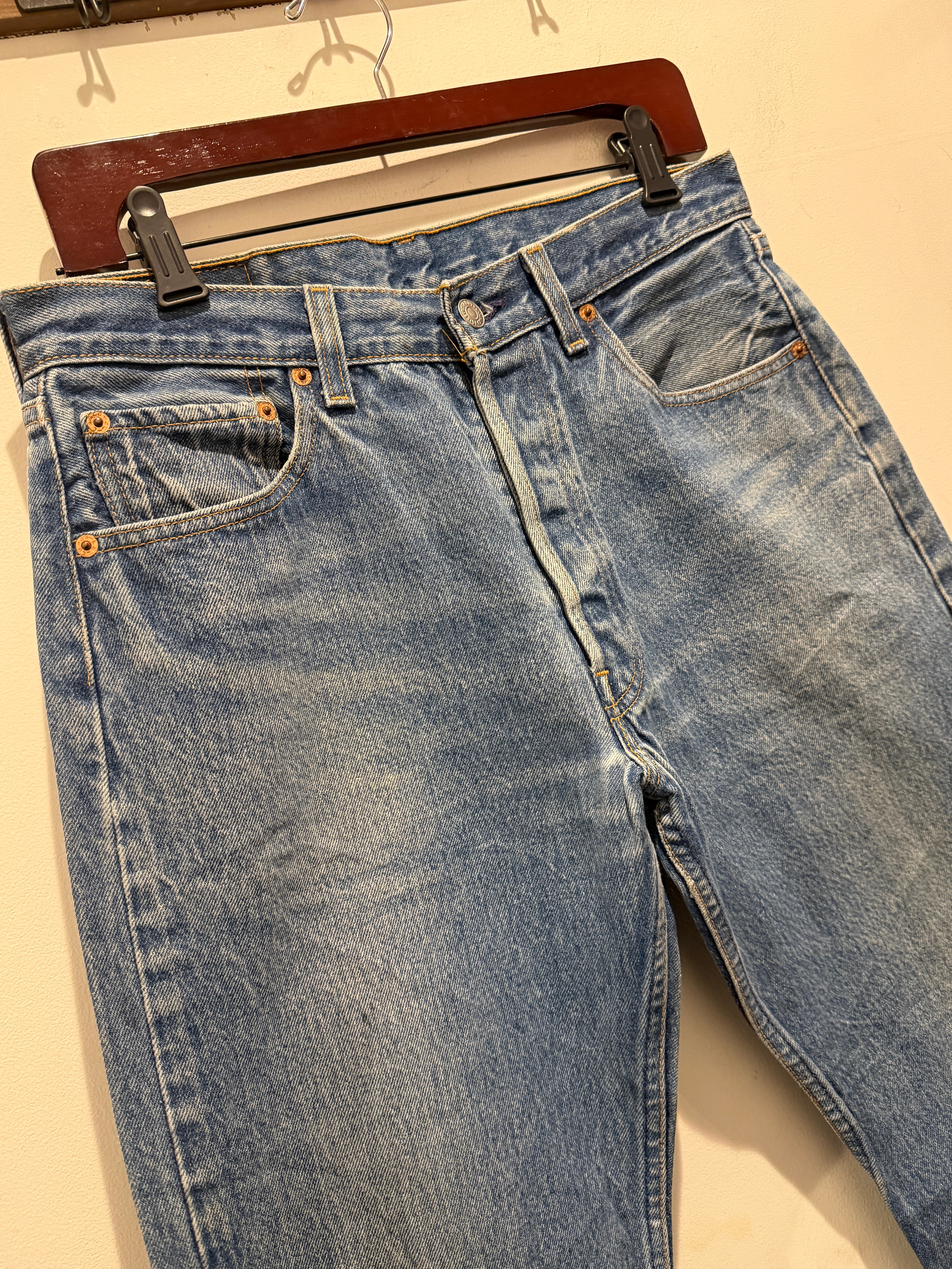 90年代アメリカ製リーバイス501デニムパンツです。1997年3月製造の501でトップボタン裏555のバレンシア工場で作られた1本となります。うっすらとヒゲもあり、良い色落ち感のデニムとなります。実寸でW32×L29とサイズ感も良くオススメです。