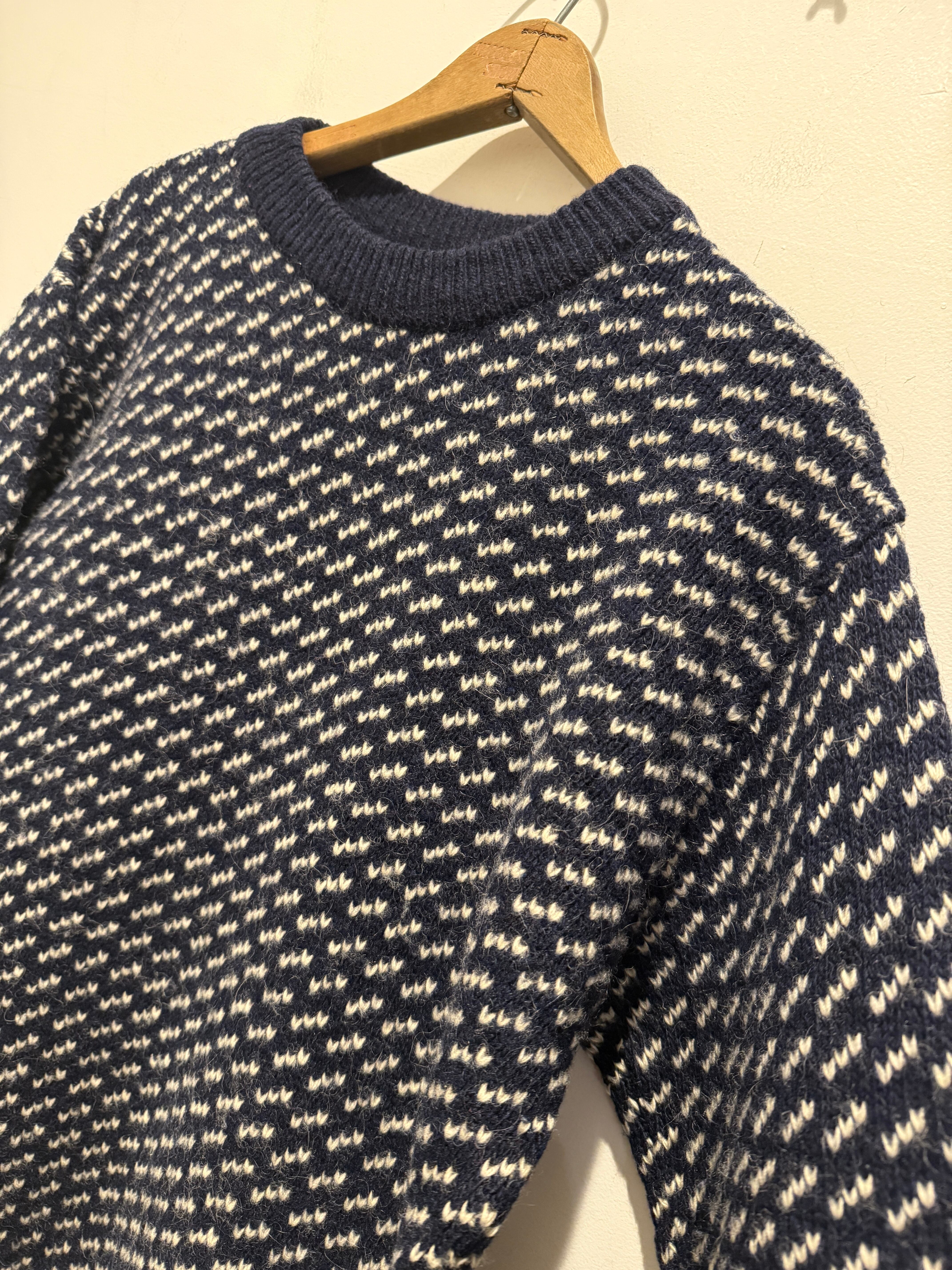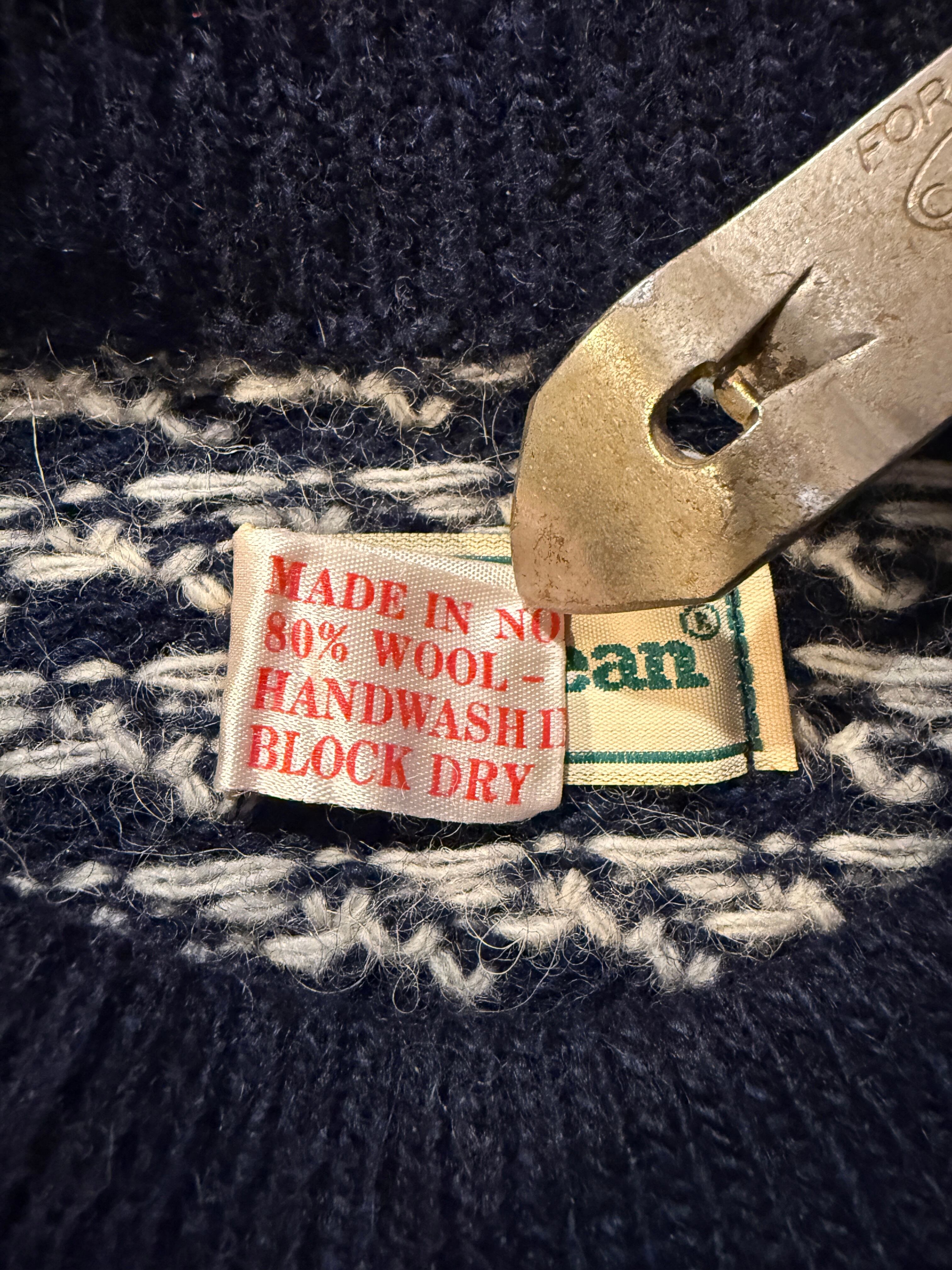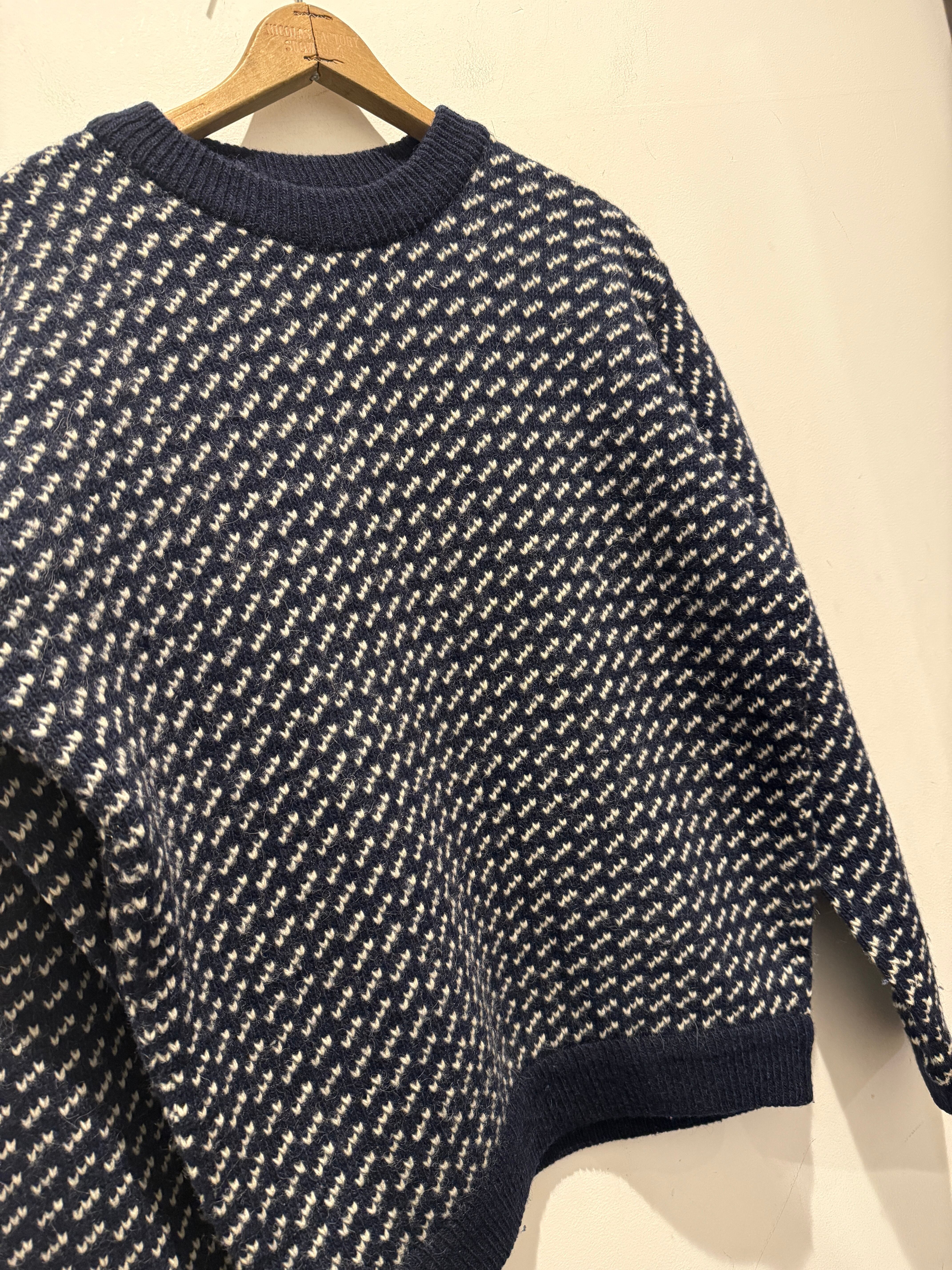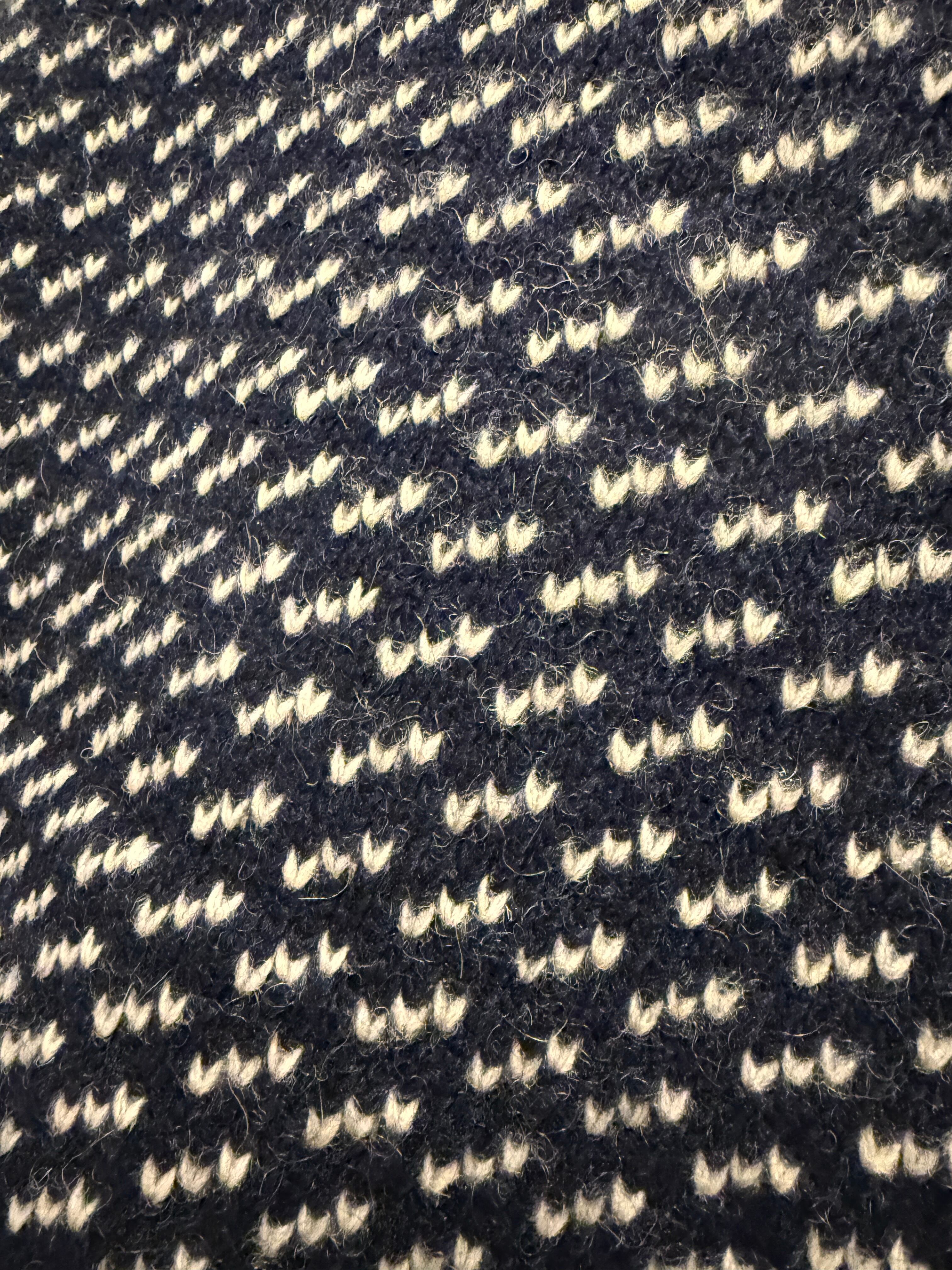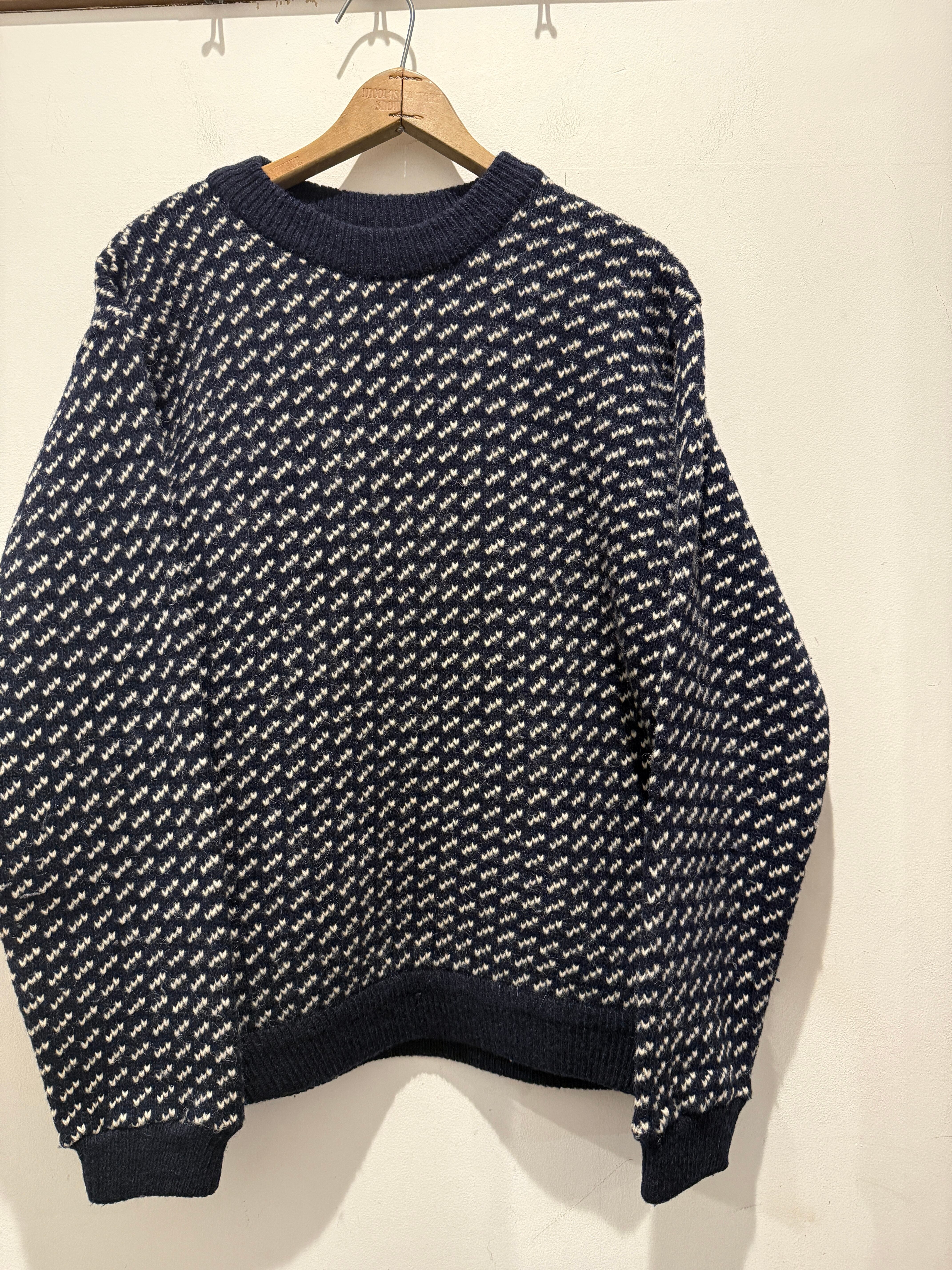 90年代ノルウェー製LLビーンのバーズアイニットです。バーズアイニットといえば今はいろいろなブランドから出ていますが、元祖といえばLLBEANでしょうか。こちらは定番のネイビーボディのバーズアイニットでノルウェー製の物となります。レディース物ですが大きめな作りでメンズも人によってはいけるサイズ感ですね。コンディションも良くサイズの合う方にはオススメな1点です。
