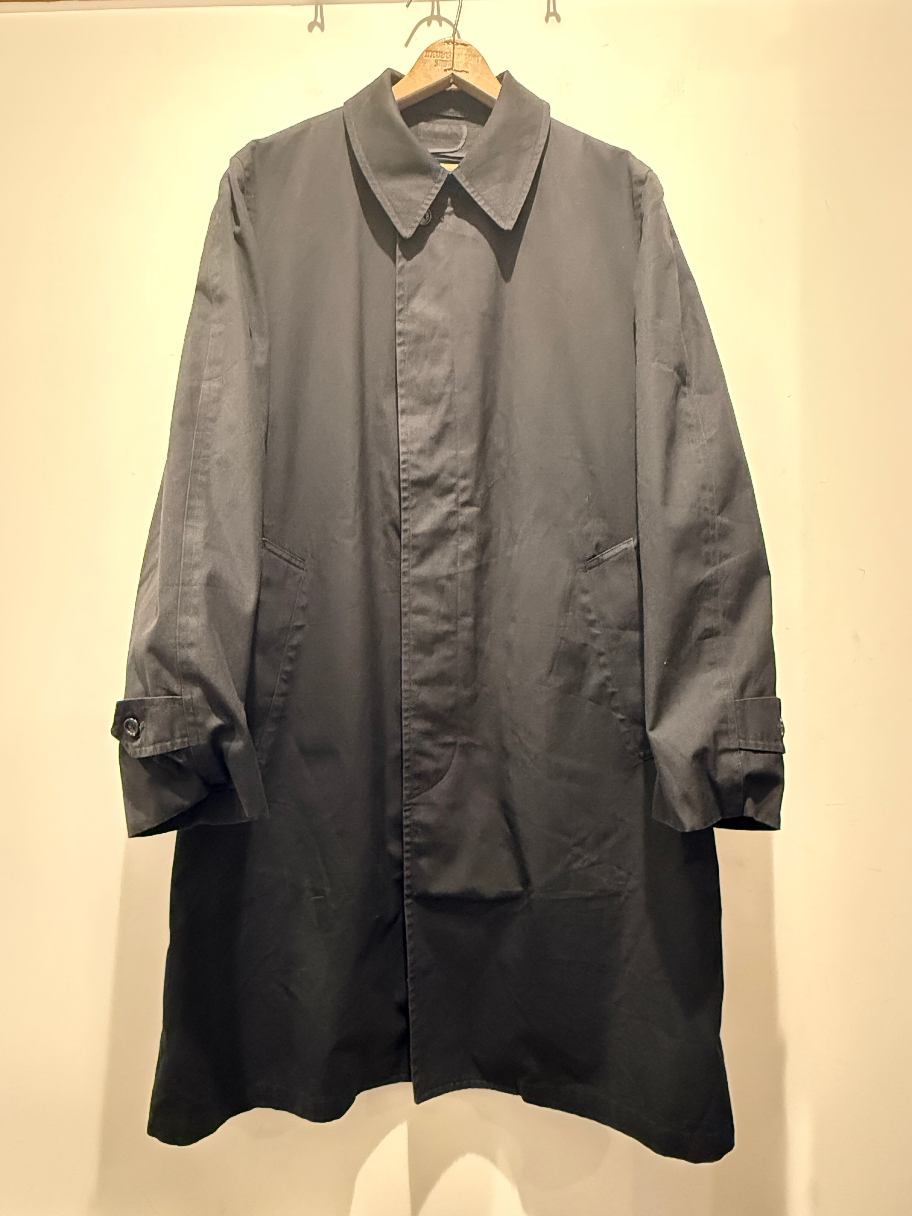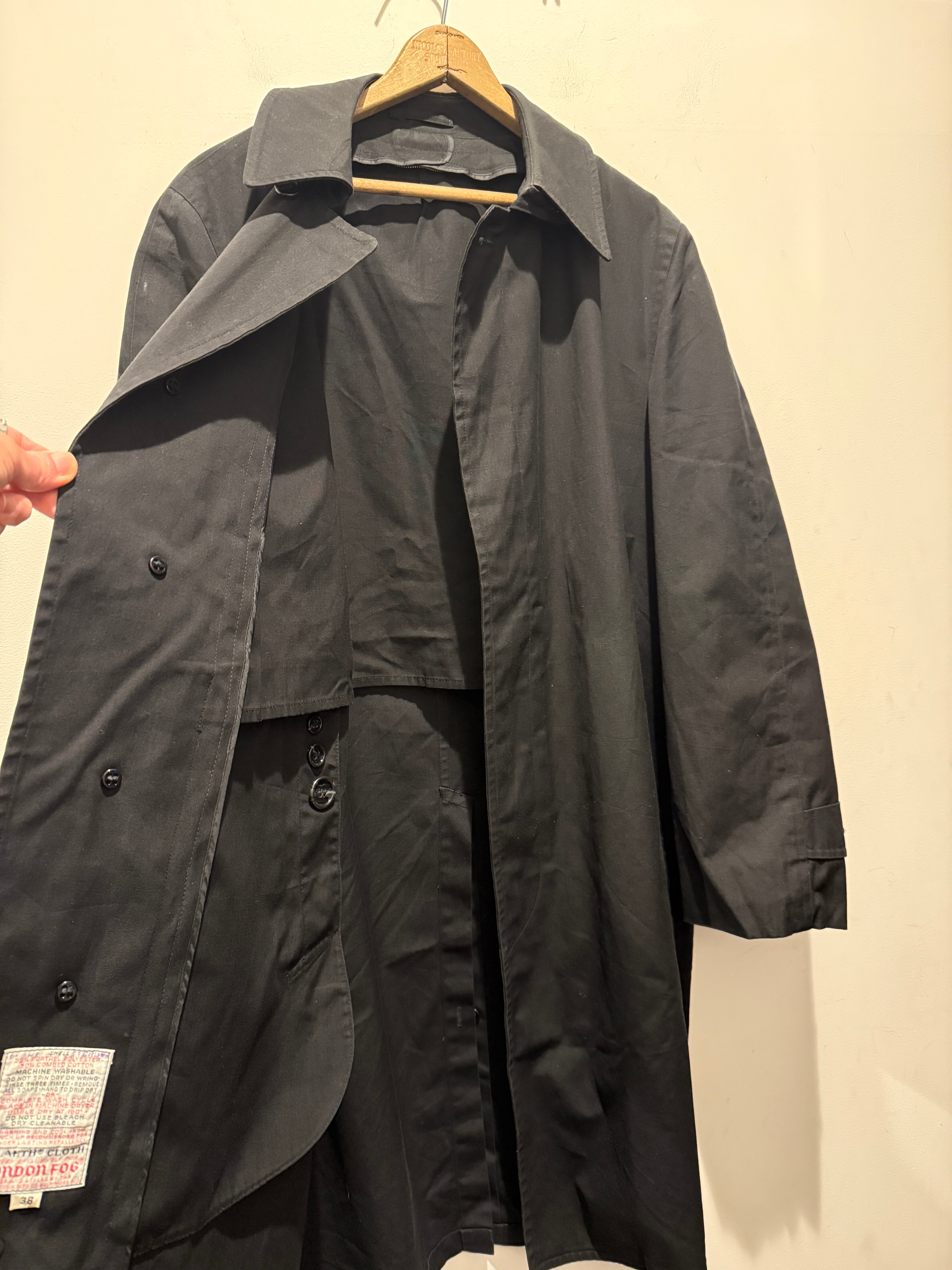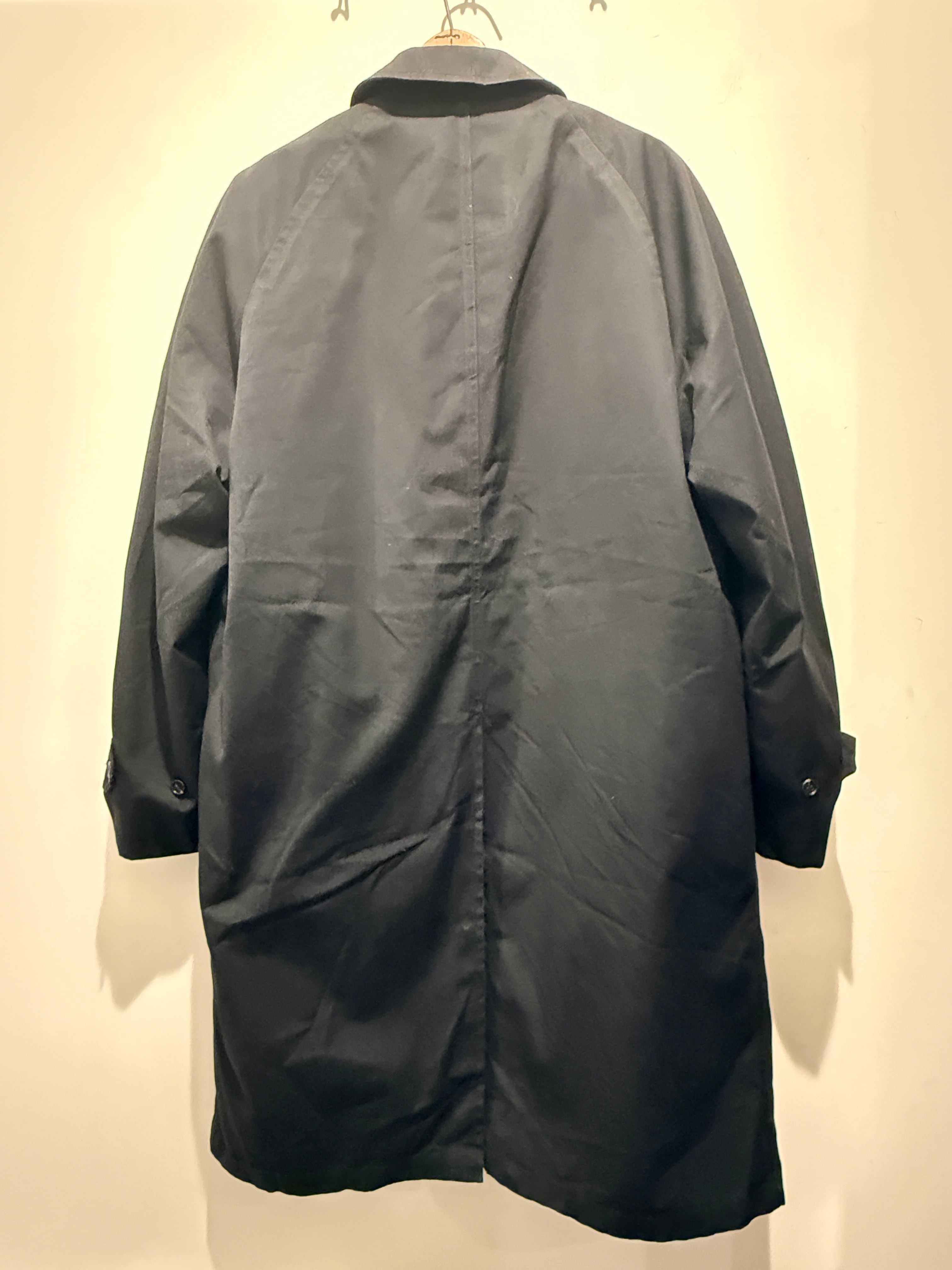 70年代ロンドンフォグのバルマカーンコートです。ブラックカラーでライナーのジッパーはアルミのTALONとなります。無地のブラックカラーで、はりのある生地感が上品な印象です。エポーレットが付かず中のライナーのボアもフカフカなのが最高ですね。ライナーも取り外し可能で春、秋、冬と3シーズン使えるコートです。コンディションも良く普段着でもビジネスでも使えてオススメなアウターです。