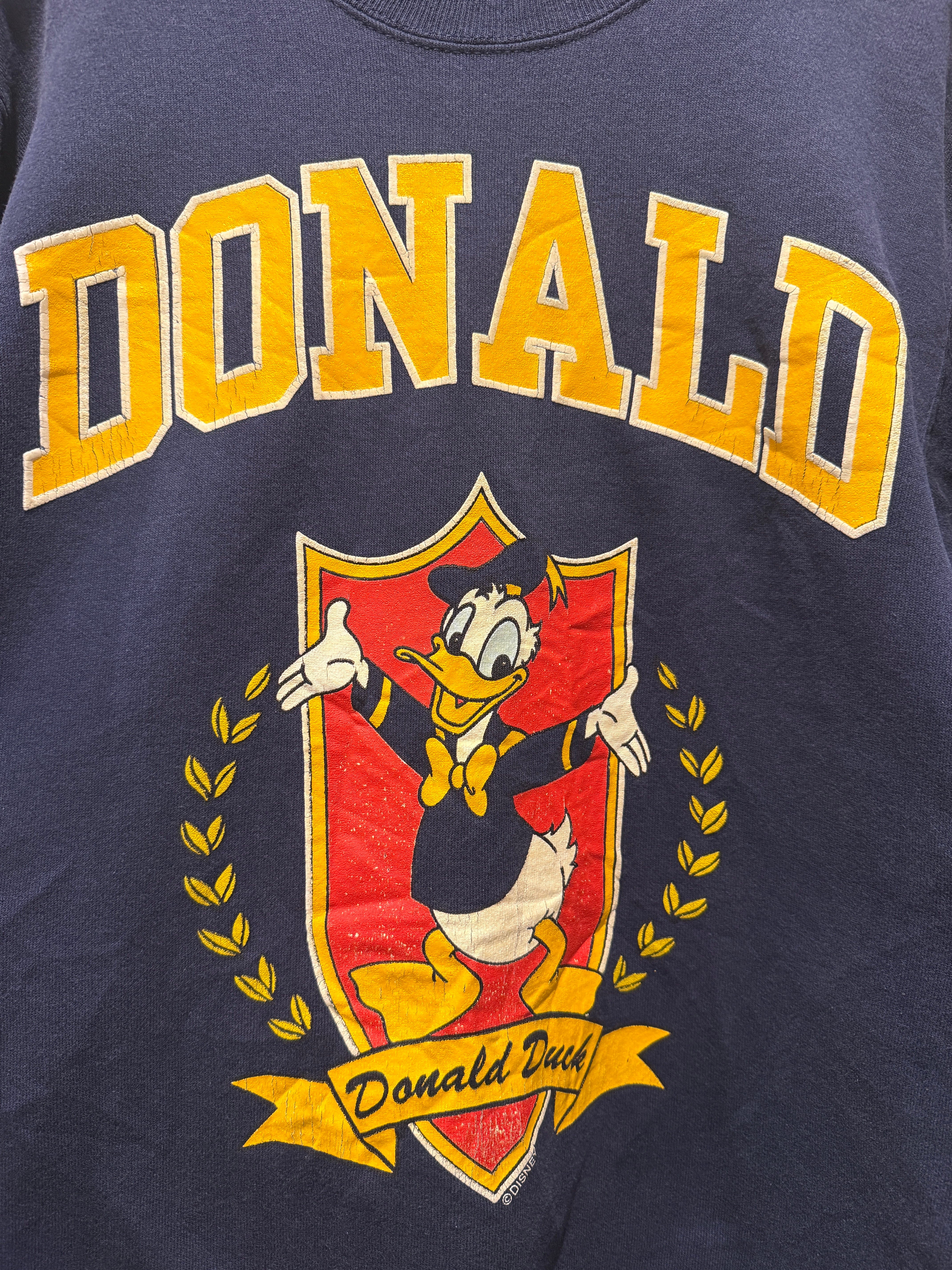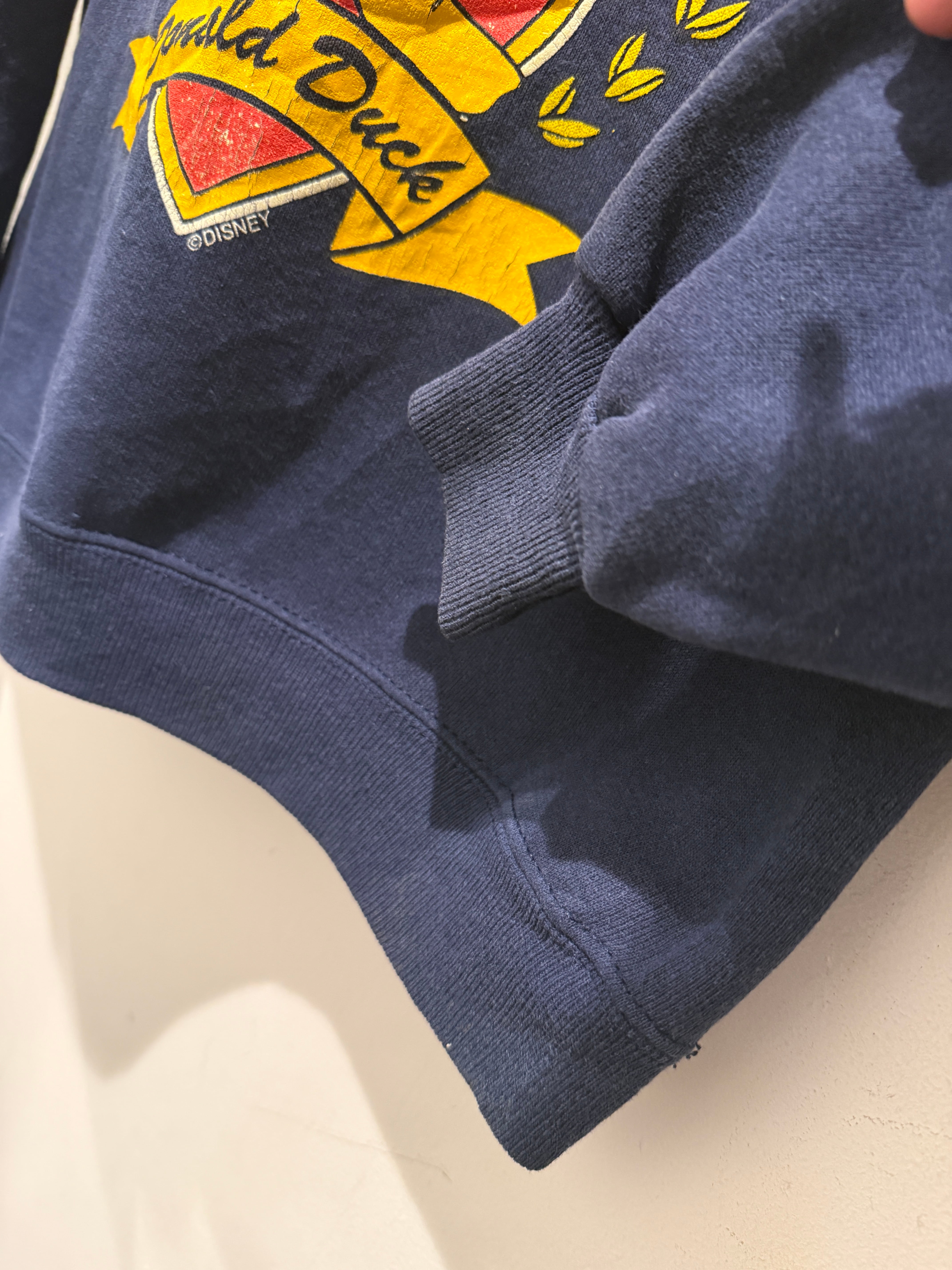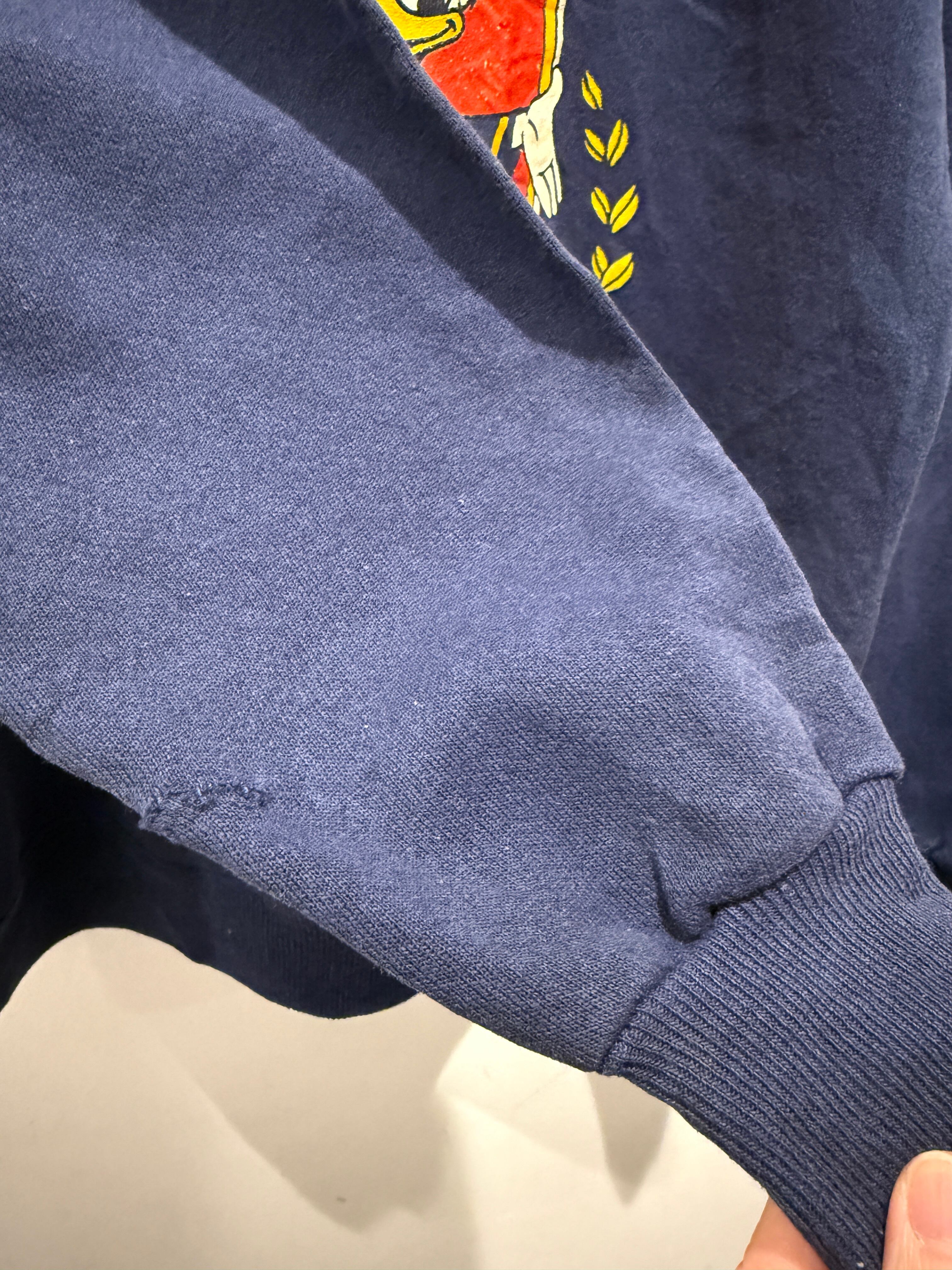 90年代アメリカ製ヘインズボディのドナルドスウェットです。ネイビーボディにドナルドのデザインがとても良い1着です。ドナルド単体のデザインはあまり見かけない印象ですね。しっかりコピーライト入りのオフィシャル物でアメリカ製とオススメなスウェットです。