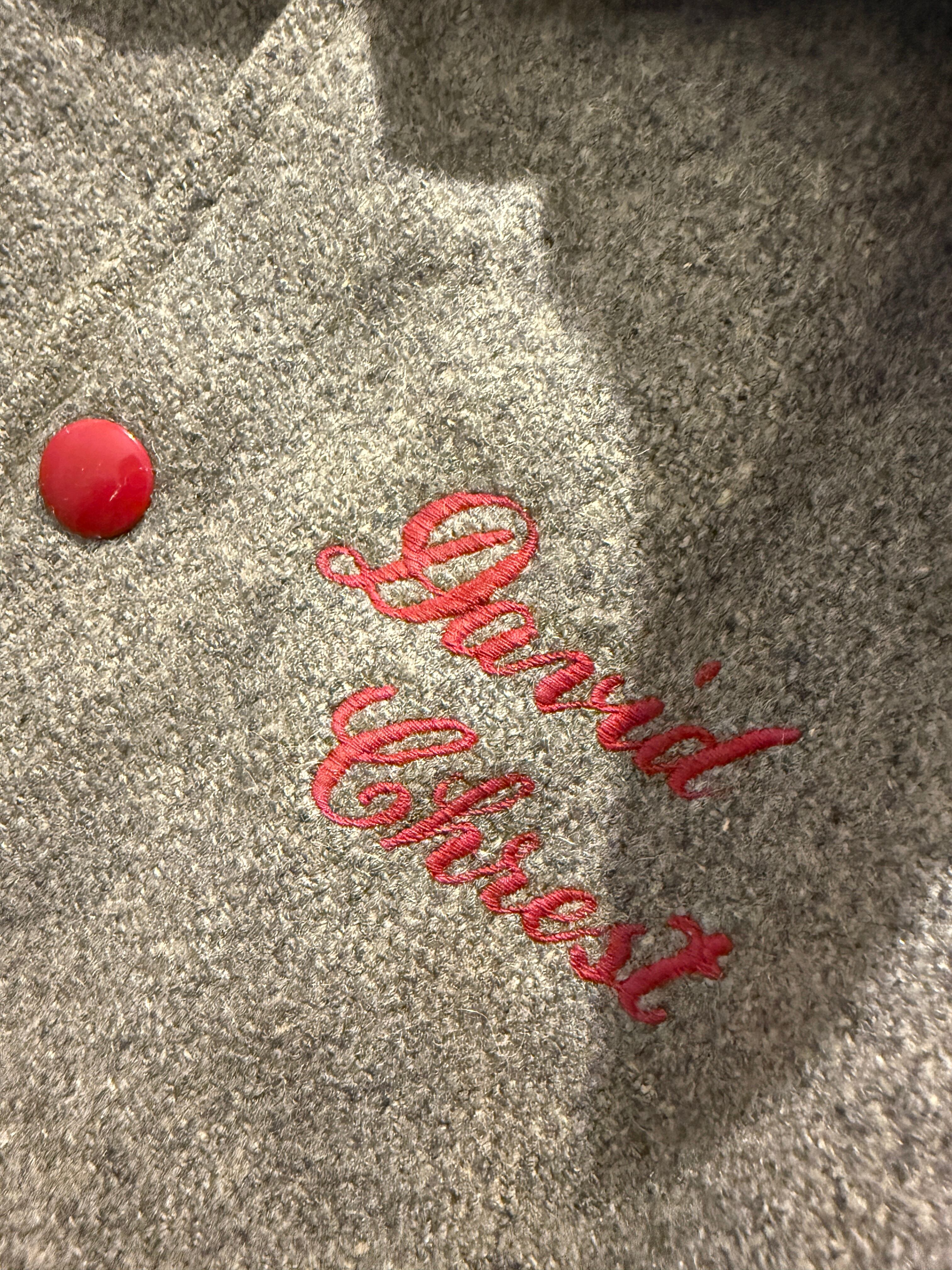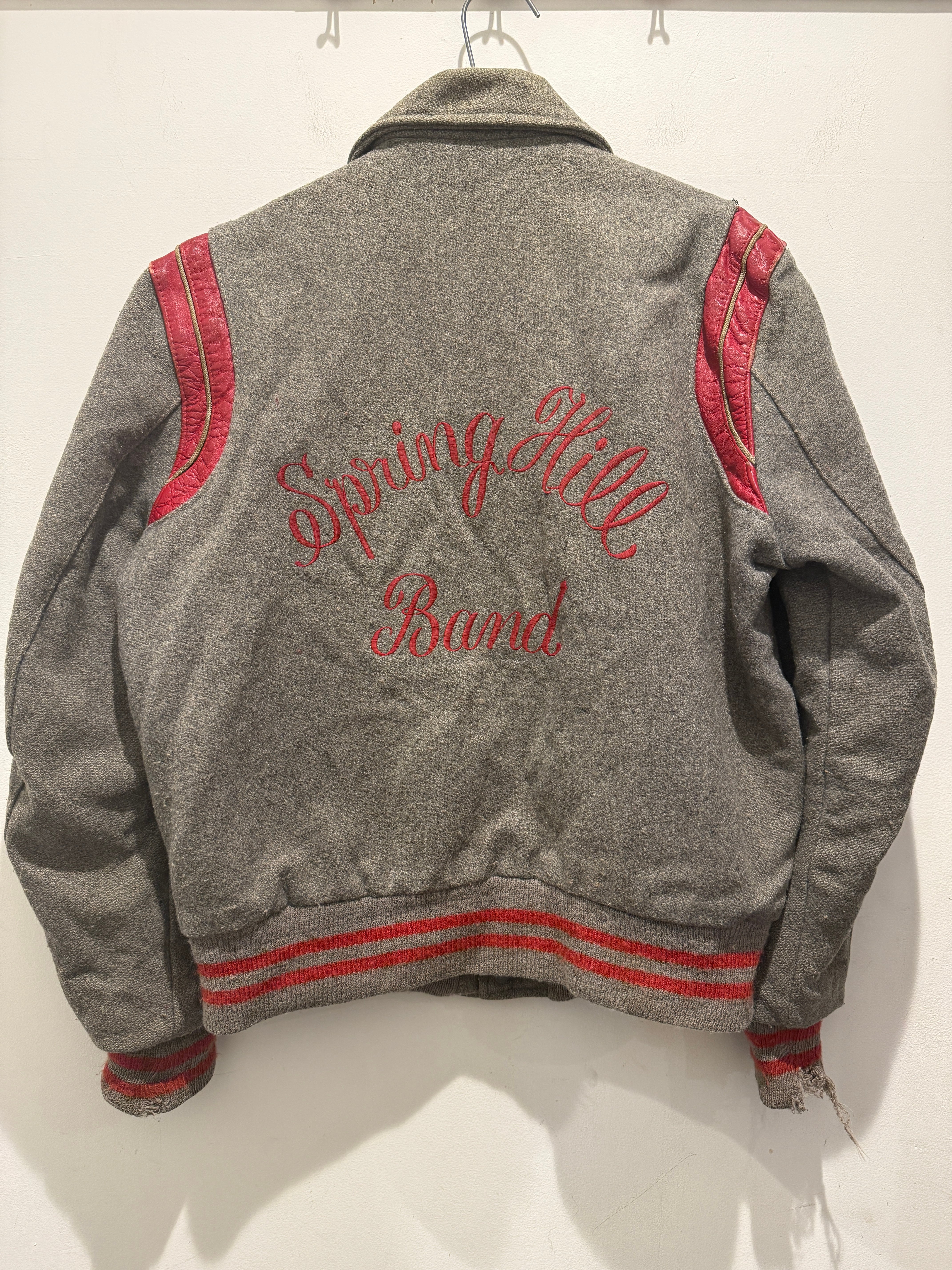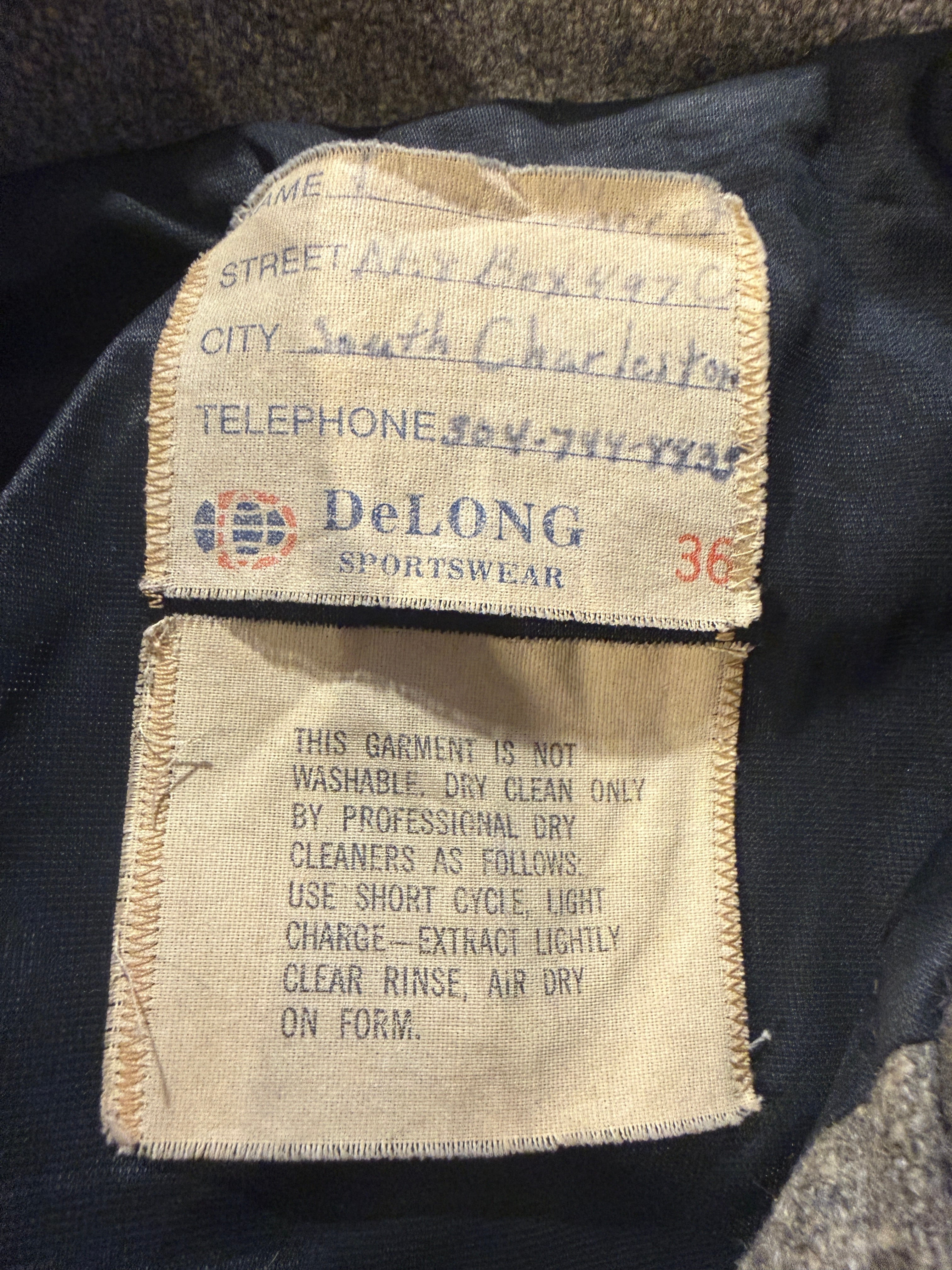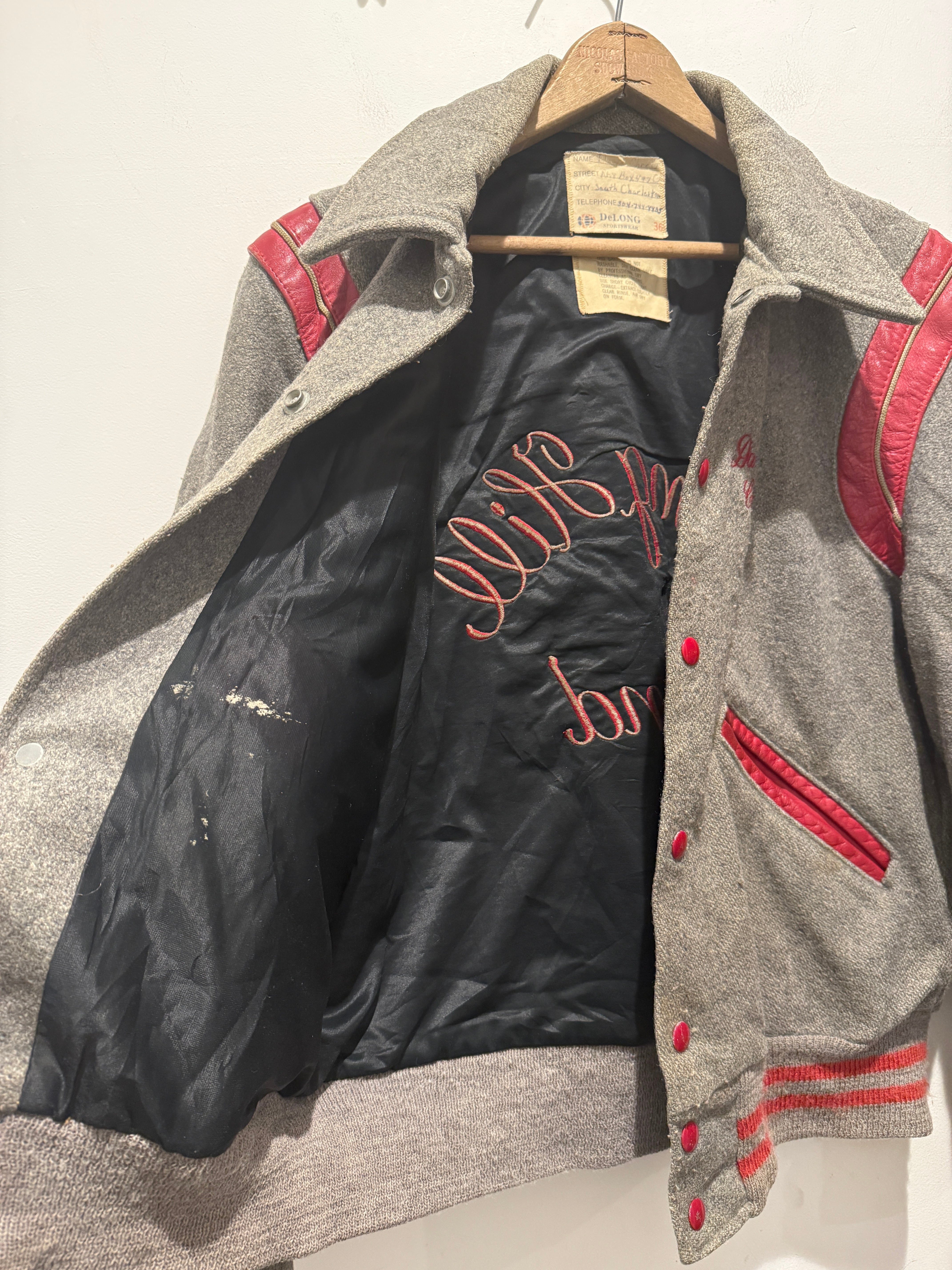 70年代〜80年代アメリカ製デロングのスタジャンです。グレーボディにレッドのレザーがとても良い1着です。胸とバッグに入るチェーンステッチもとても良いですね。サンローランやセリーヌであるテディジャケットと同じ型とファッション要素も高くサイズの合う方にはオススメなアイテムです。