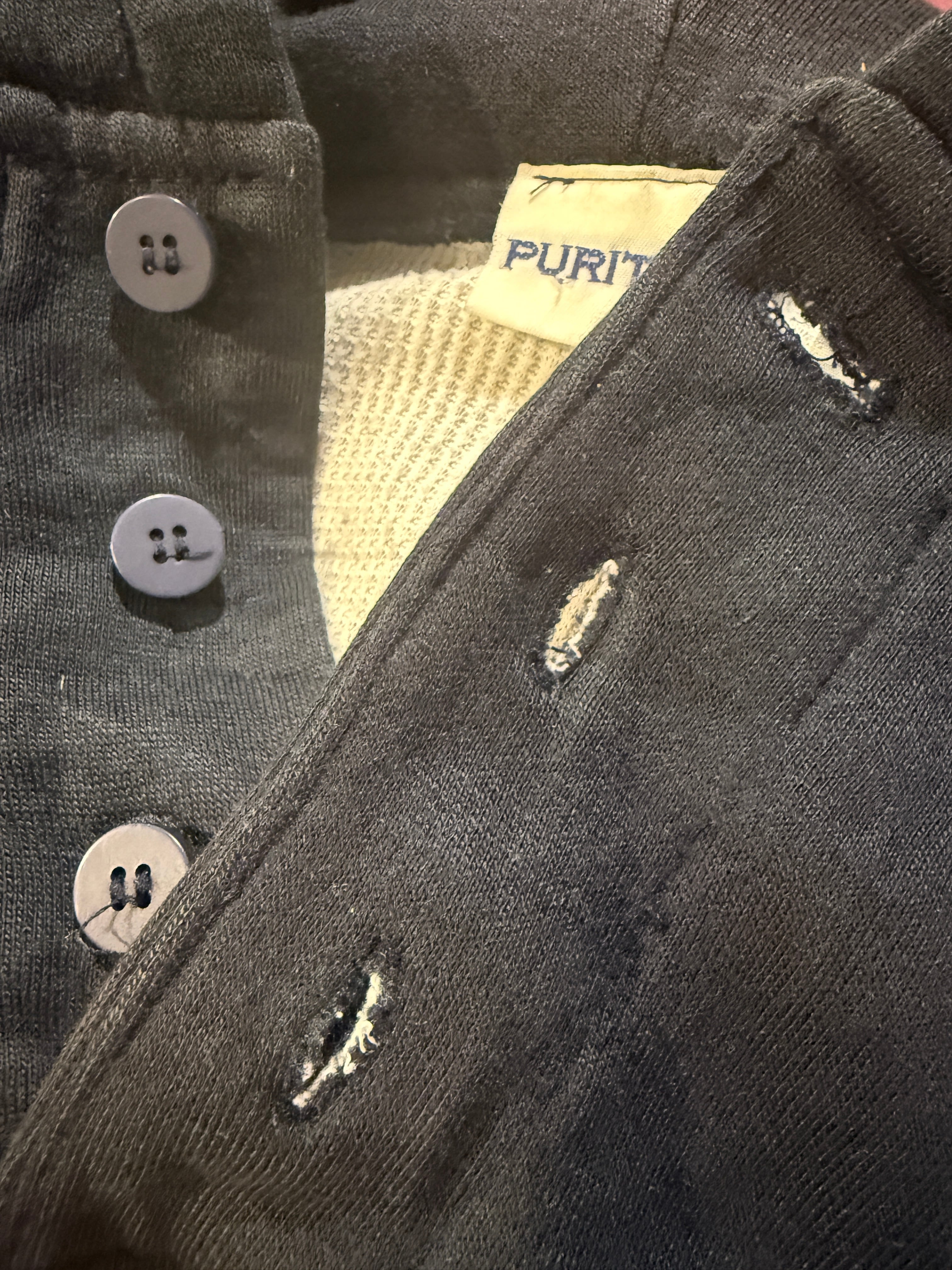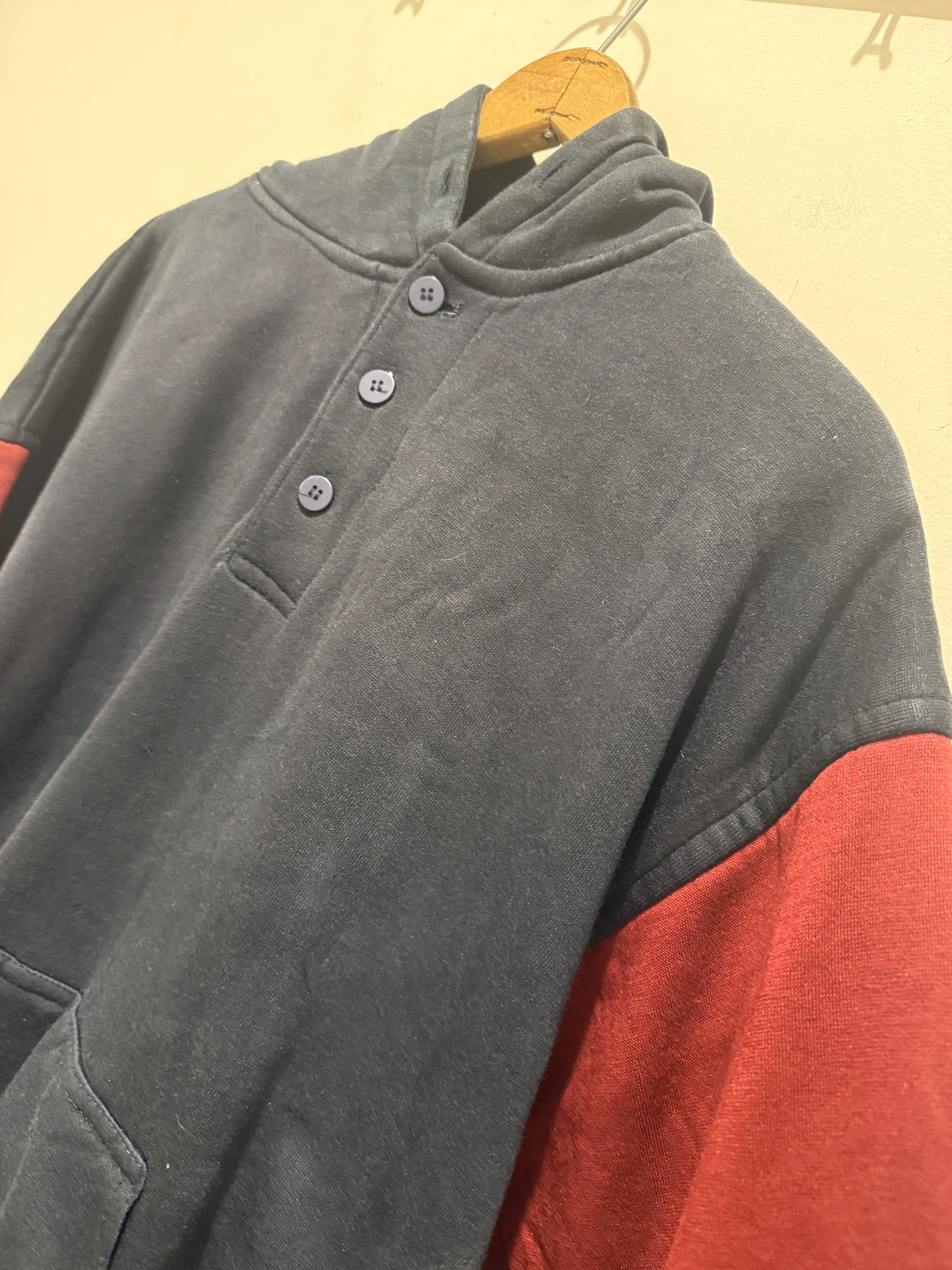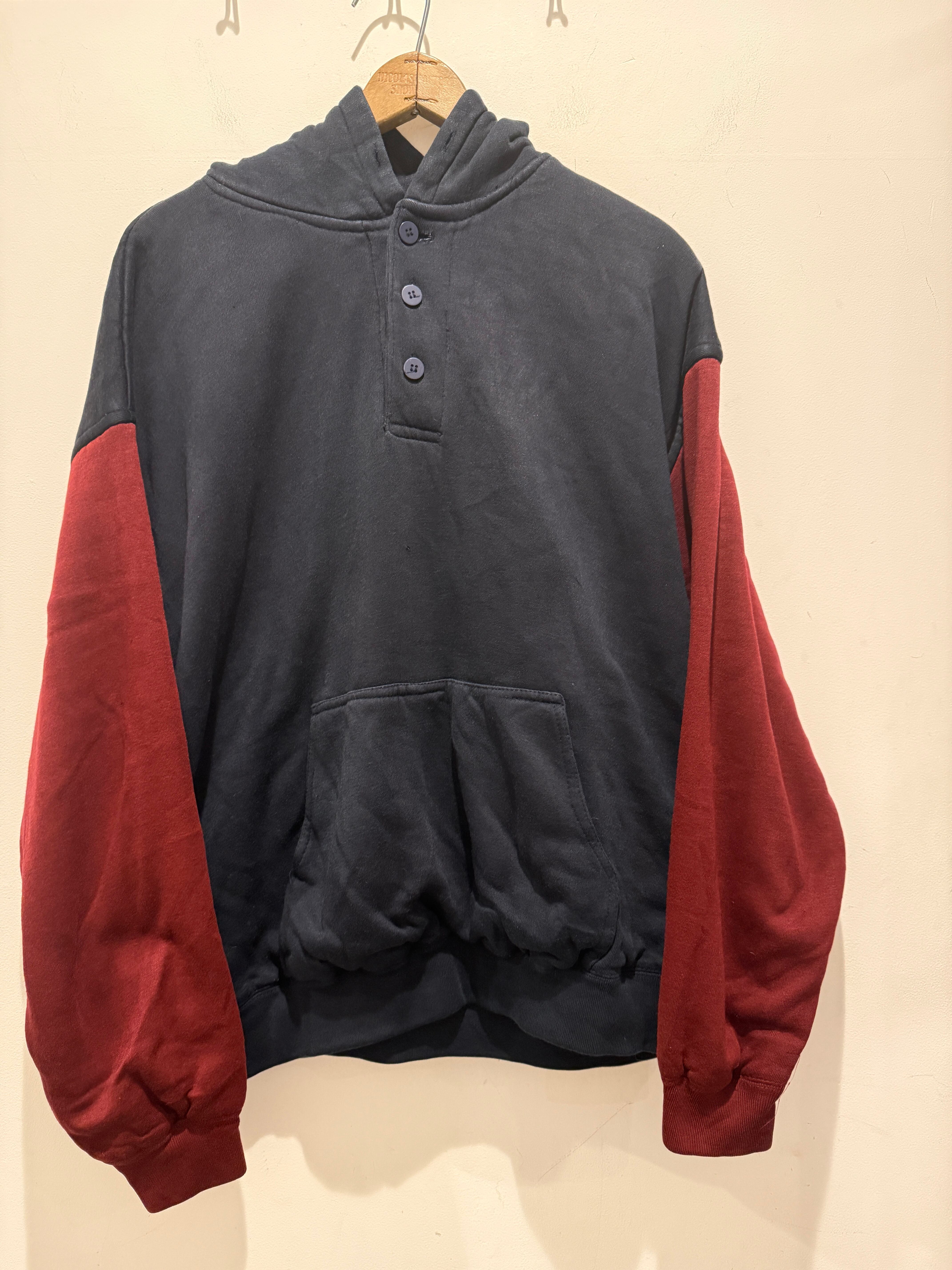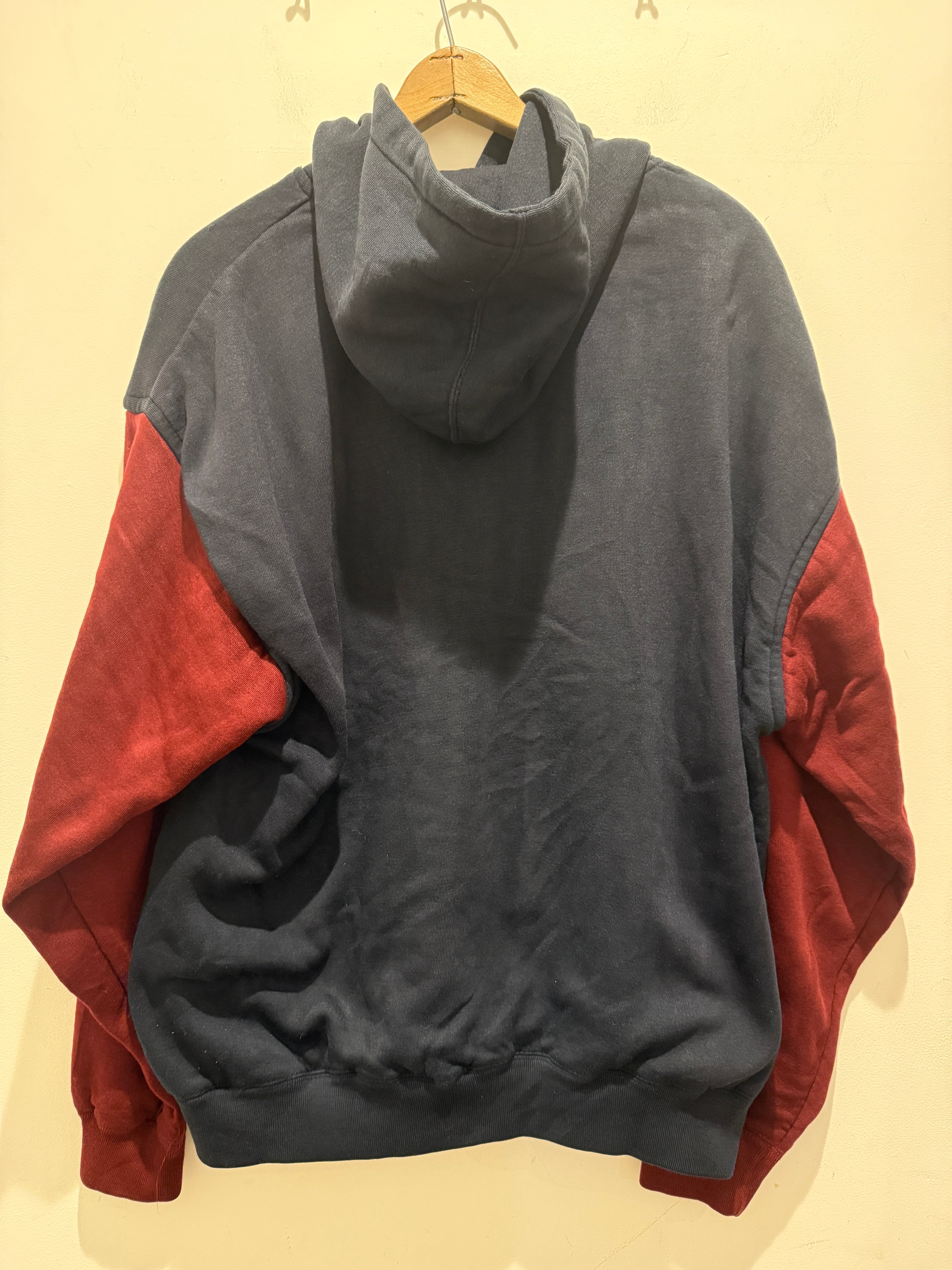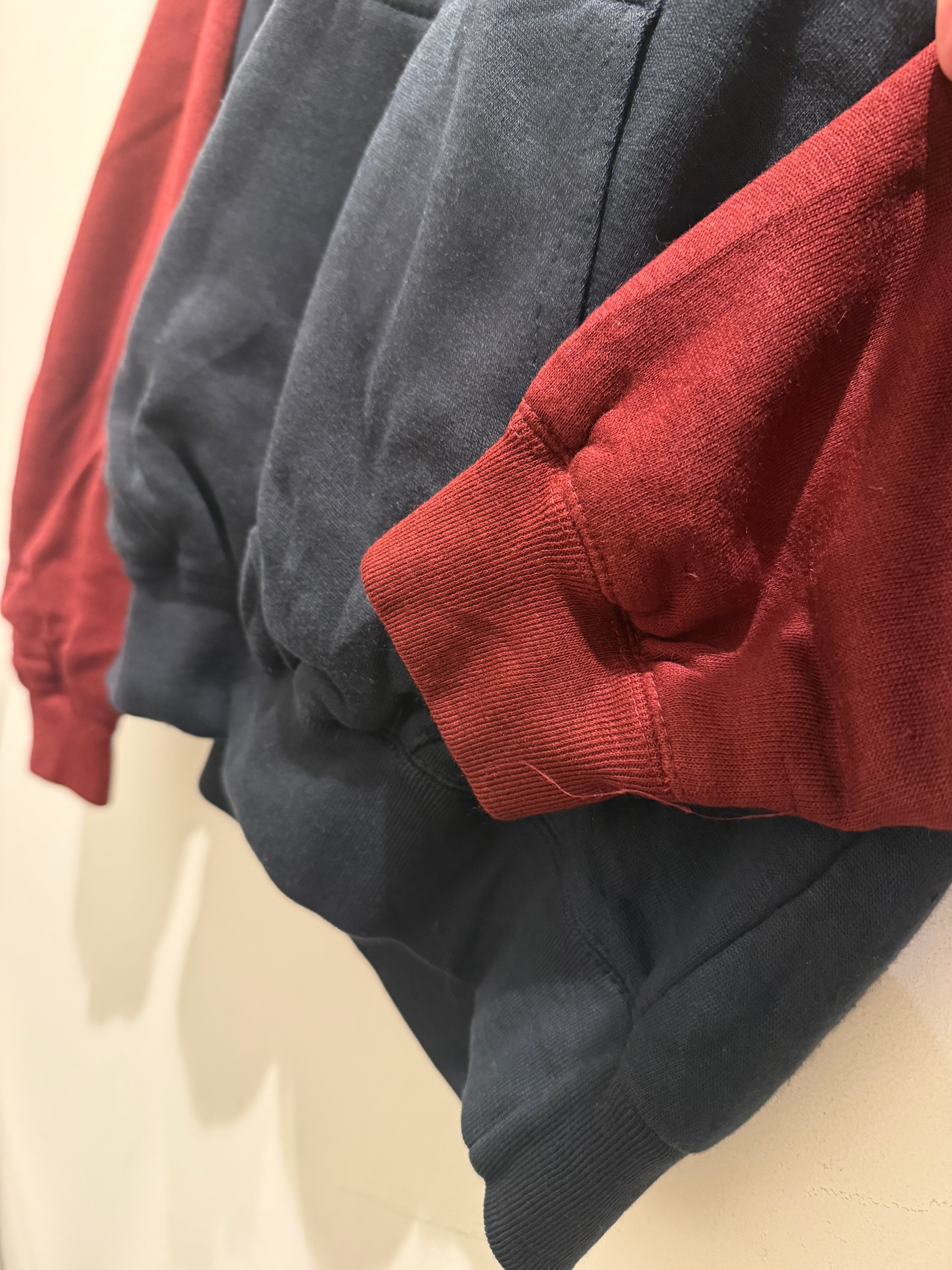 90年代ピューリタンのデザインパーカーです。ネイビーボディで袖がエンジのツートンタイプとなります。またヘンリーネック仕様で裏サーマルと探すと中々無い変わり種のグッドなアイテムとなります。身幅もしっかりあって着丈も長すぎないボックスシルエットと形も良くオススメなパーカーです。