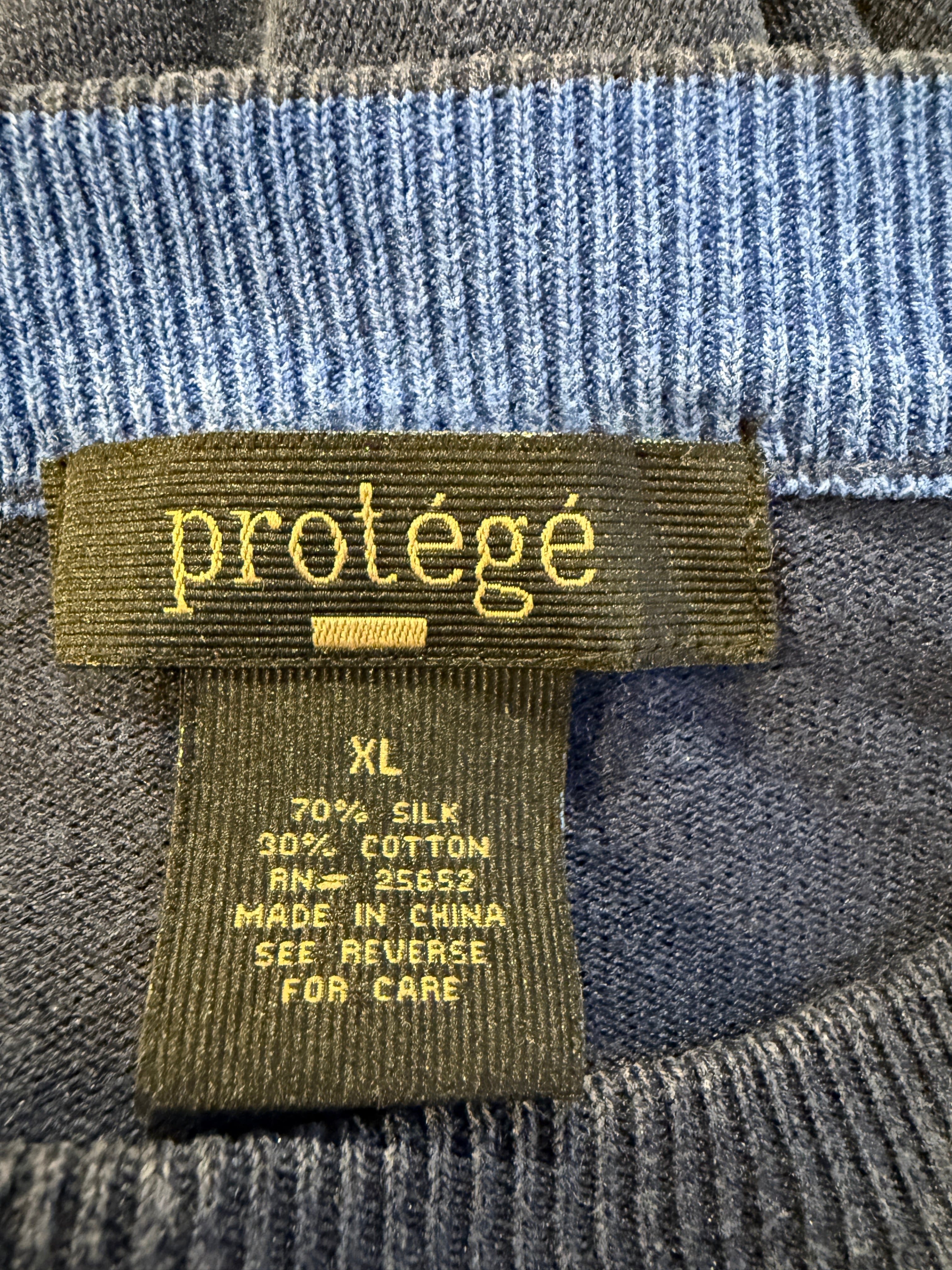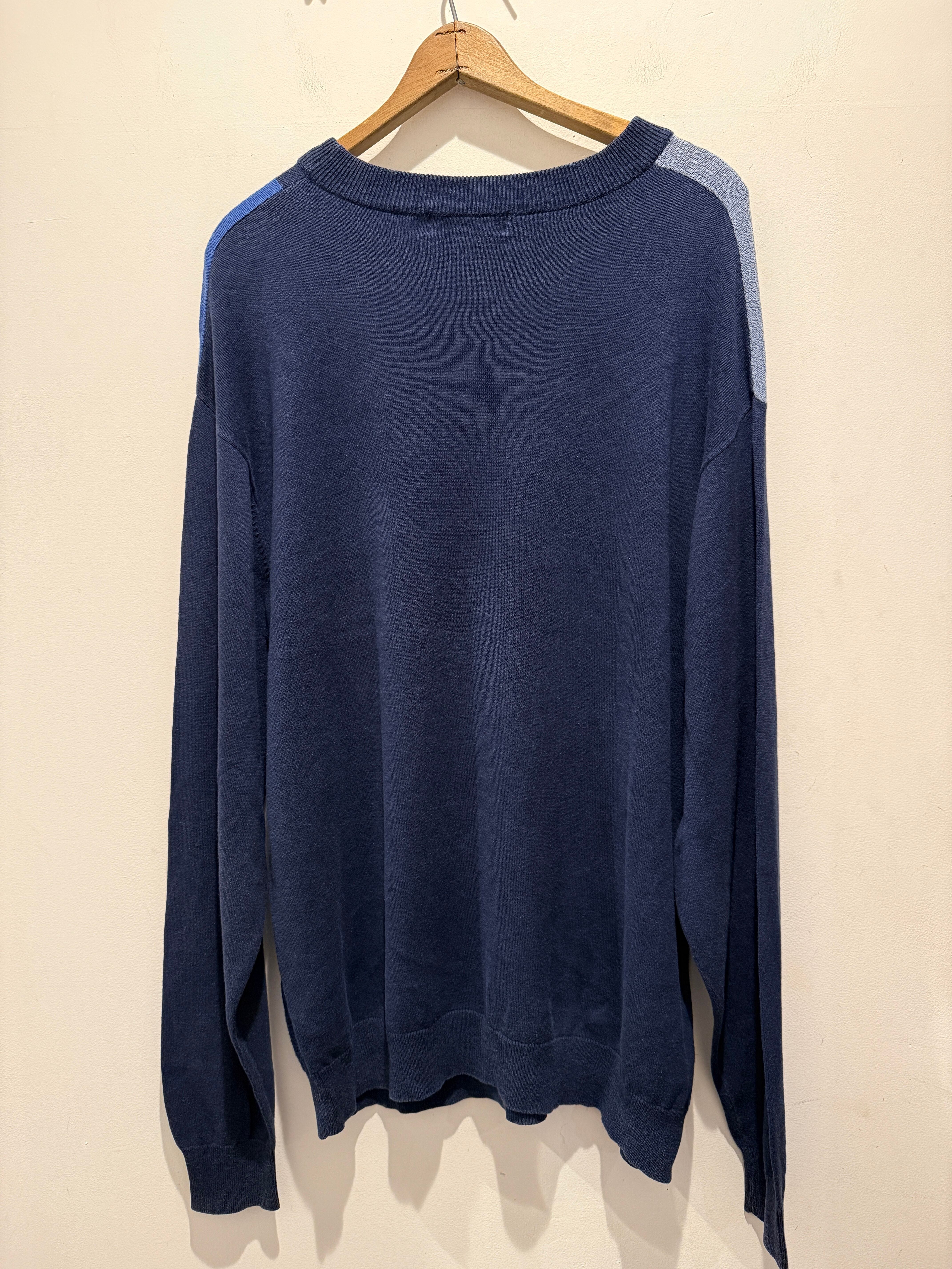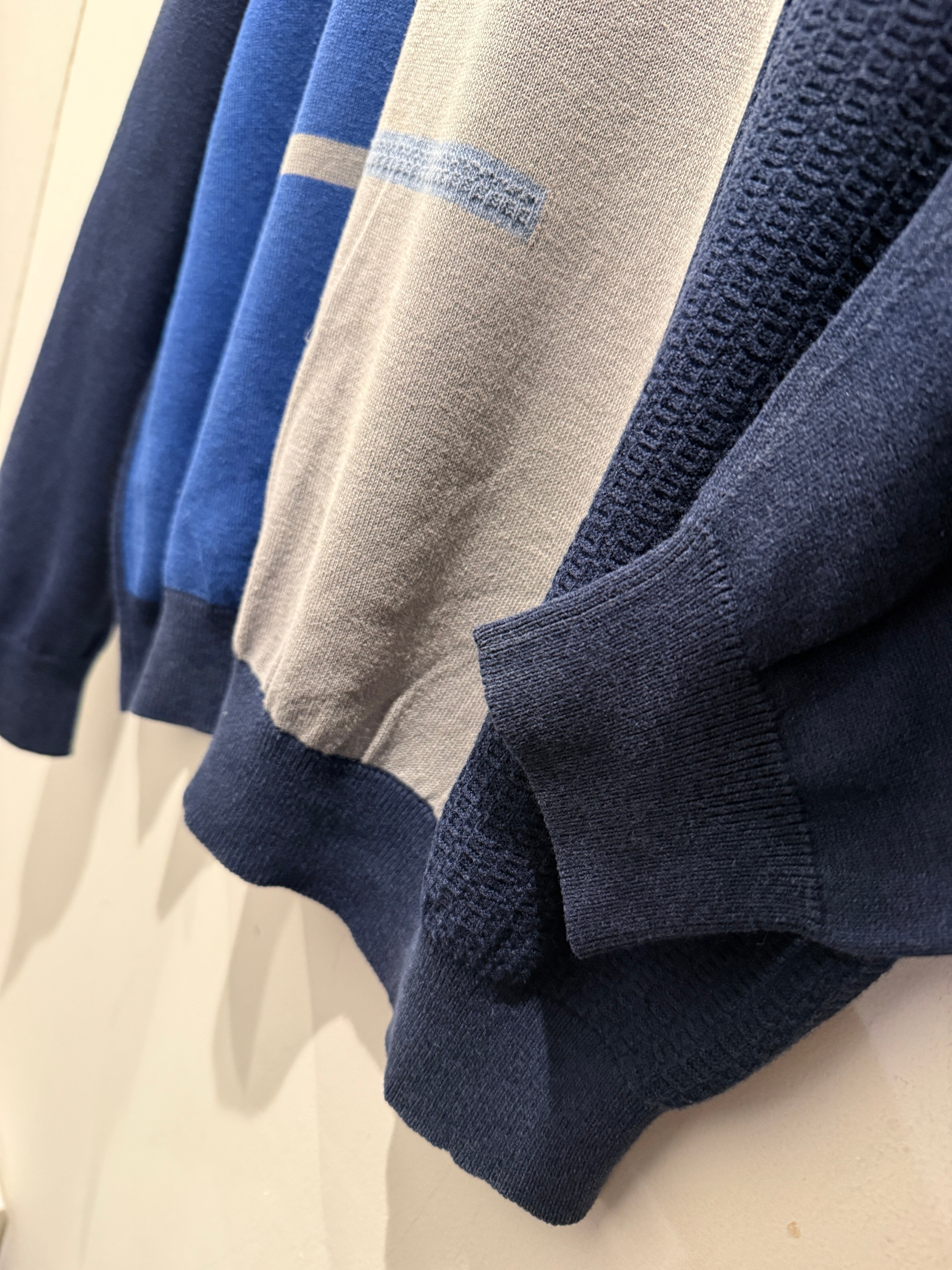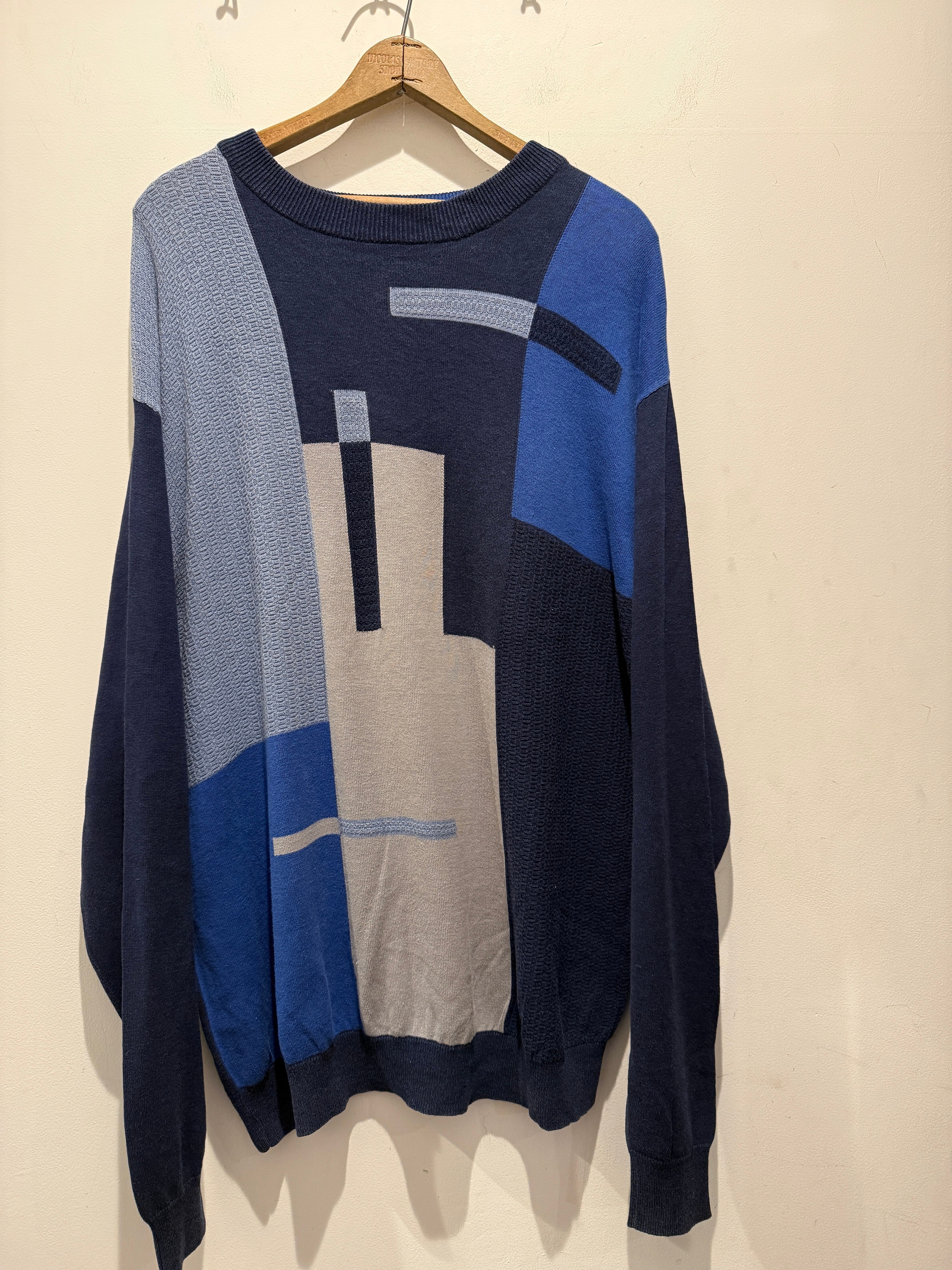 90年代〜2000年代プロテジェのデザインニットです。3Dニットで有名なprotégé。こちらはネイビーベースにアートの様なデザインがとても良くシルク70%×コットン30%となめらかな生地感もとても良い1着です。ニットですが薄手でカットソーの様にちかく着用した時に肩の落ち感もありオススメです。