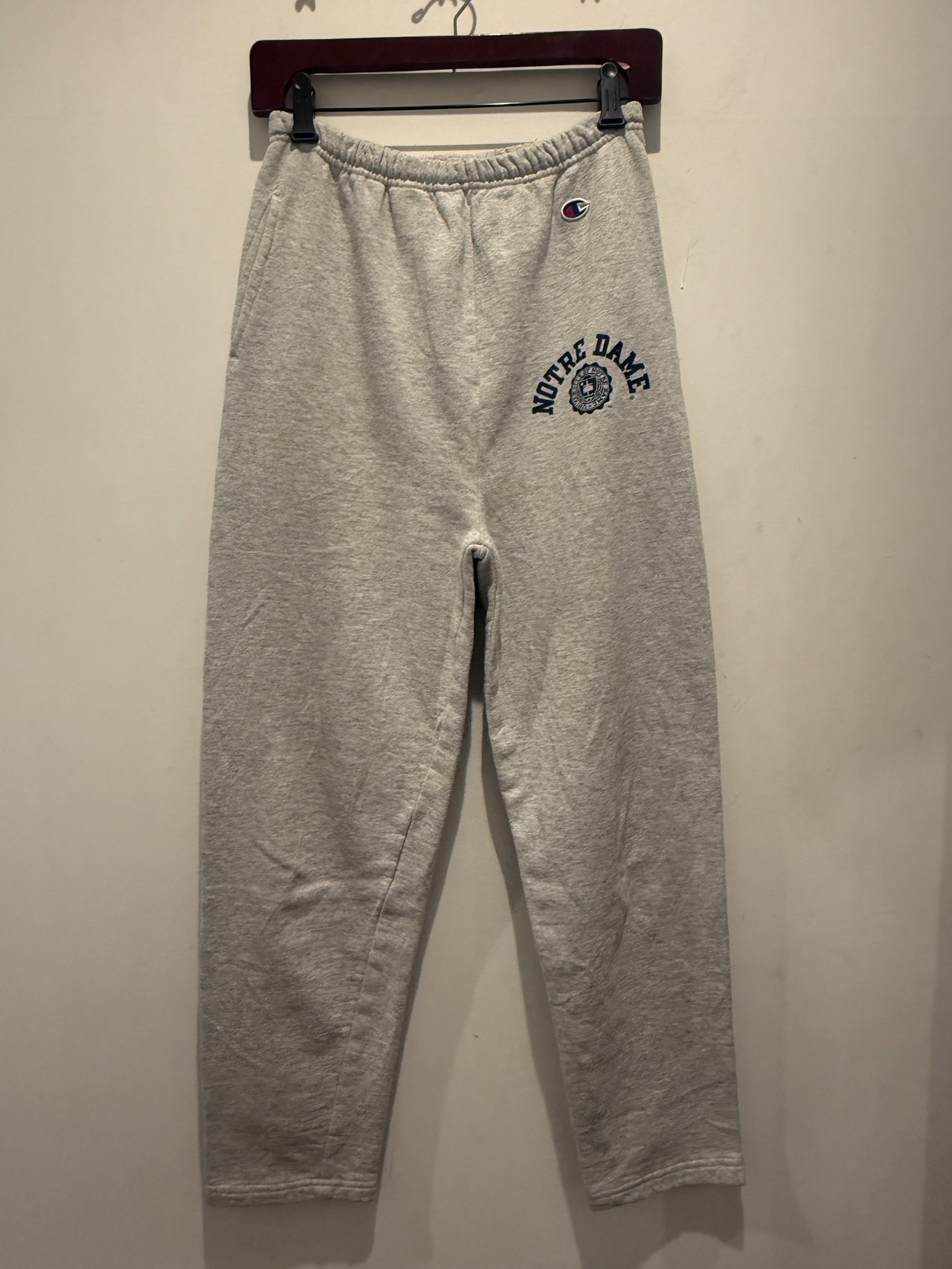90年代チャンピオンのスウェットパンツです。グレーボディにノートルダムのカレッジプリントがデザインされています。こちらはポイントとしてしっかりサイドポケットが付きます。ウエストのゴムの伸びも無くコンディションも良くとオススメです。