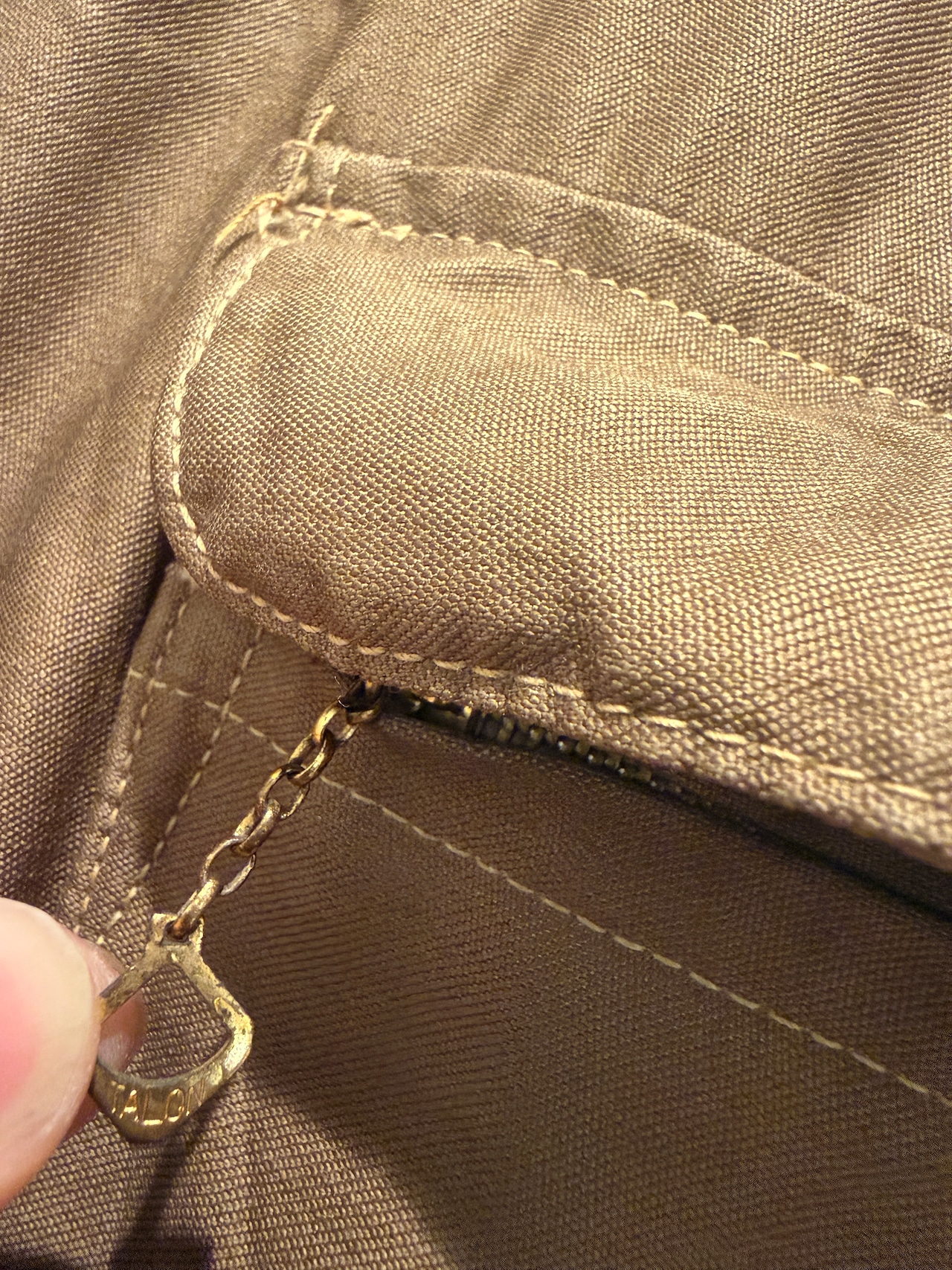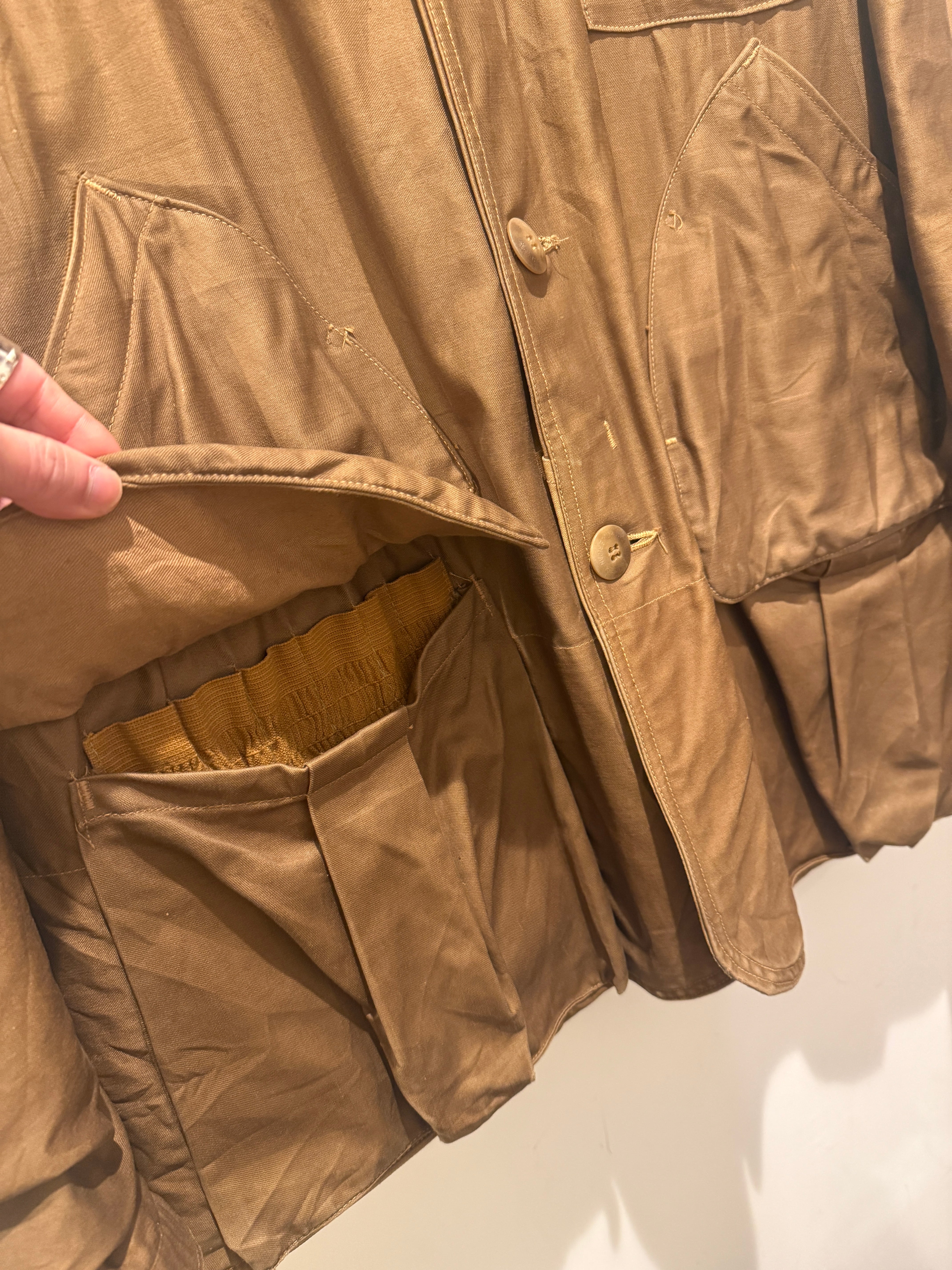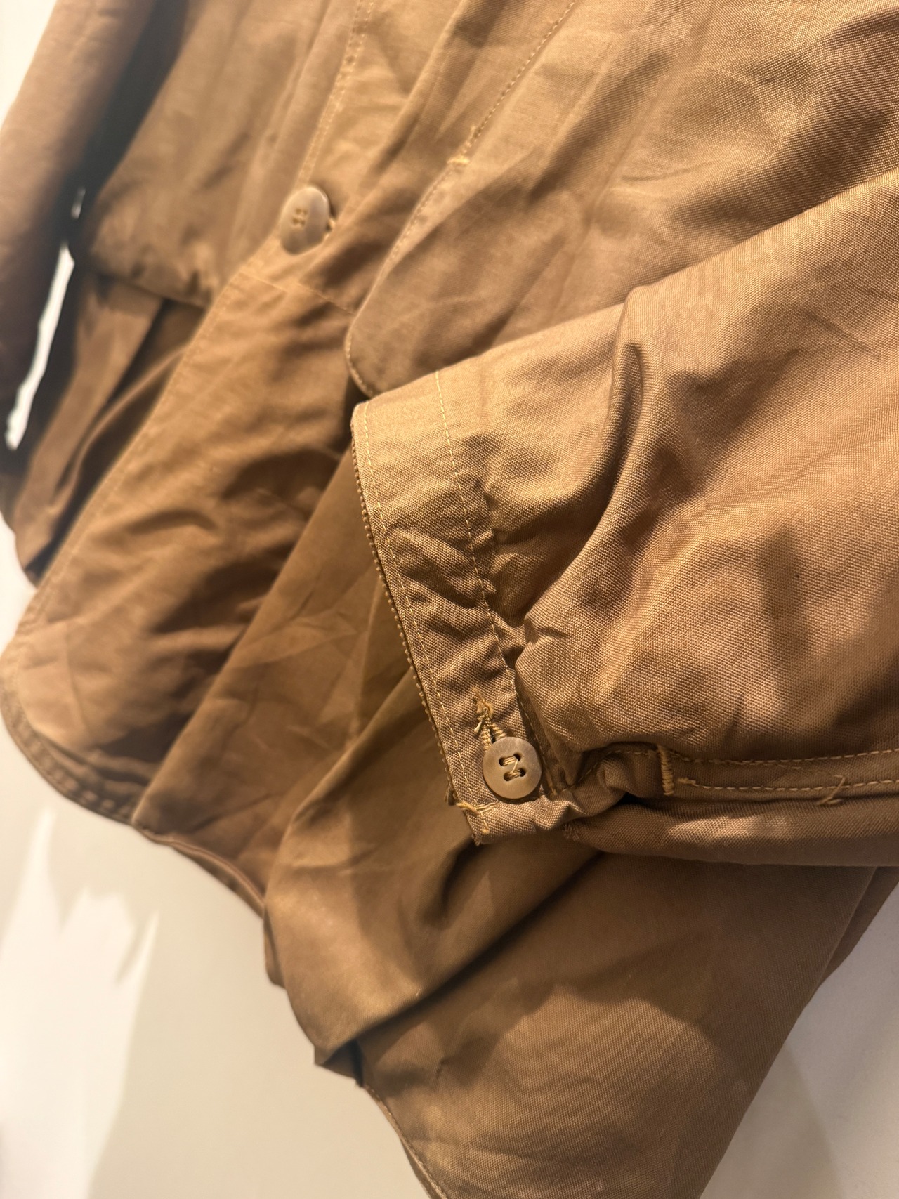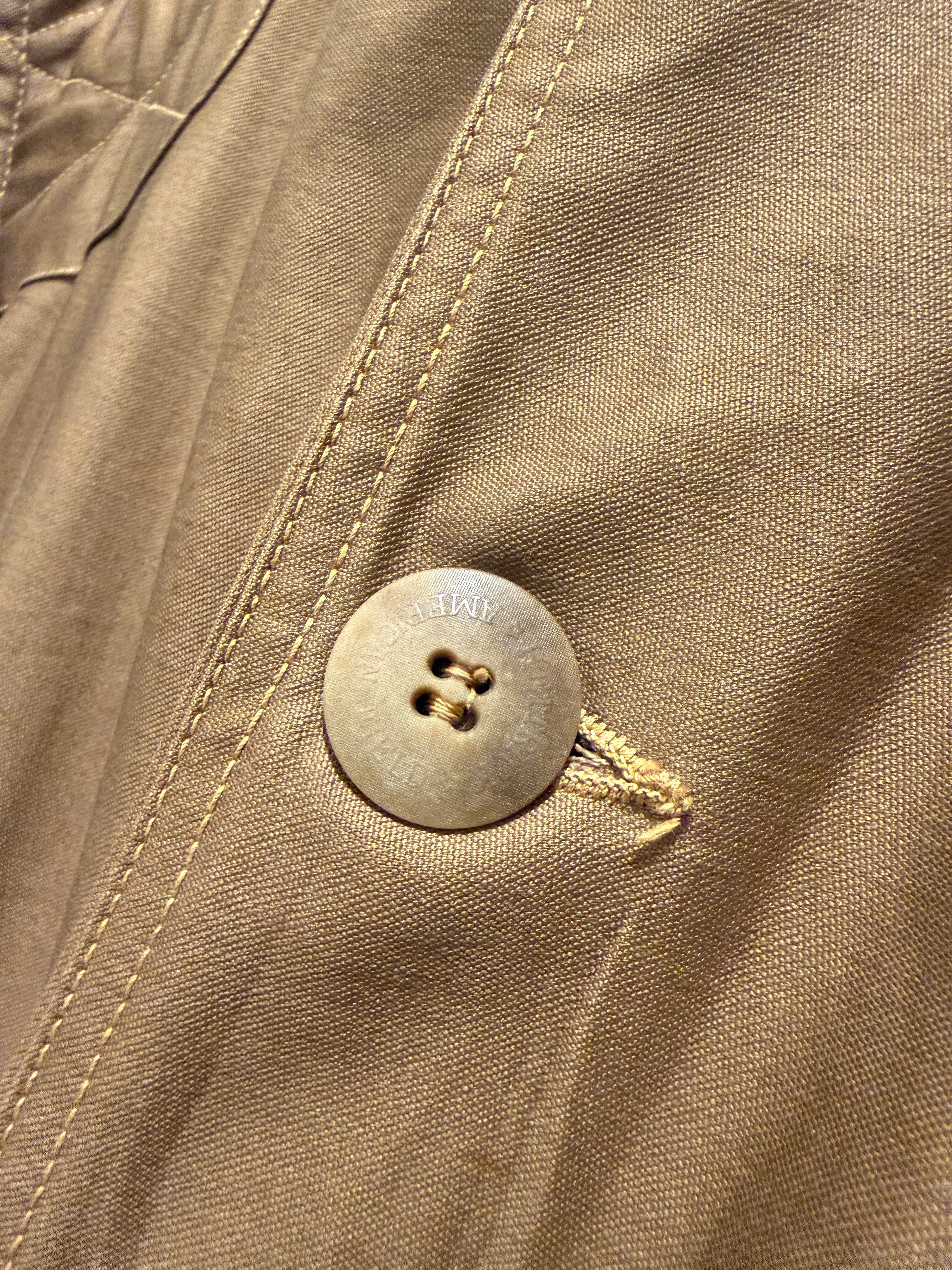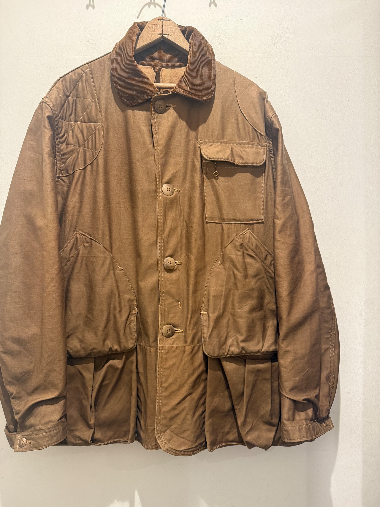 50年代アメリカンフィールドのヴィンテージハンティングジャケットです。ハンティングジャケットといえばベージュブラウンが多い印象ですが、こちらはモカブラウンのカラーとなっています。胸ポケット、中のジッパーはTALONが使用されていてロゴが入るデカボタンも全てオリジナルで揃っています。年代を考慮するとコンディションの良いハンティングジャケットで色味も良くオススメな1点です。