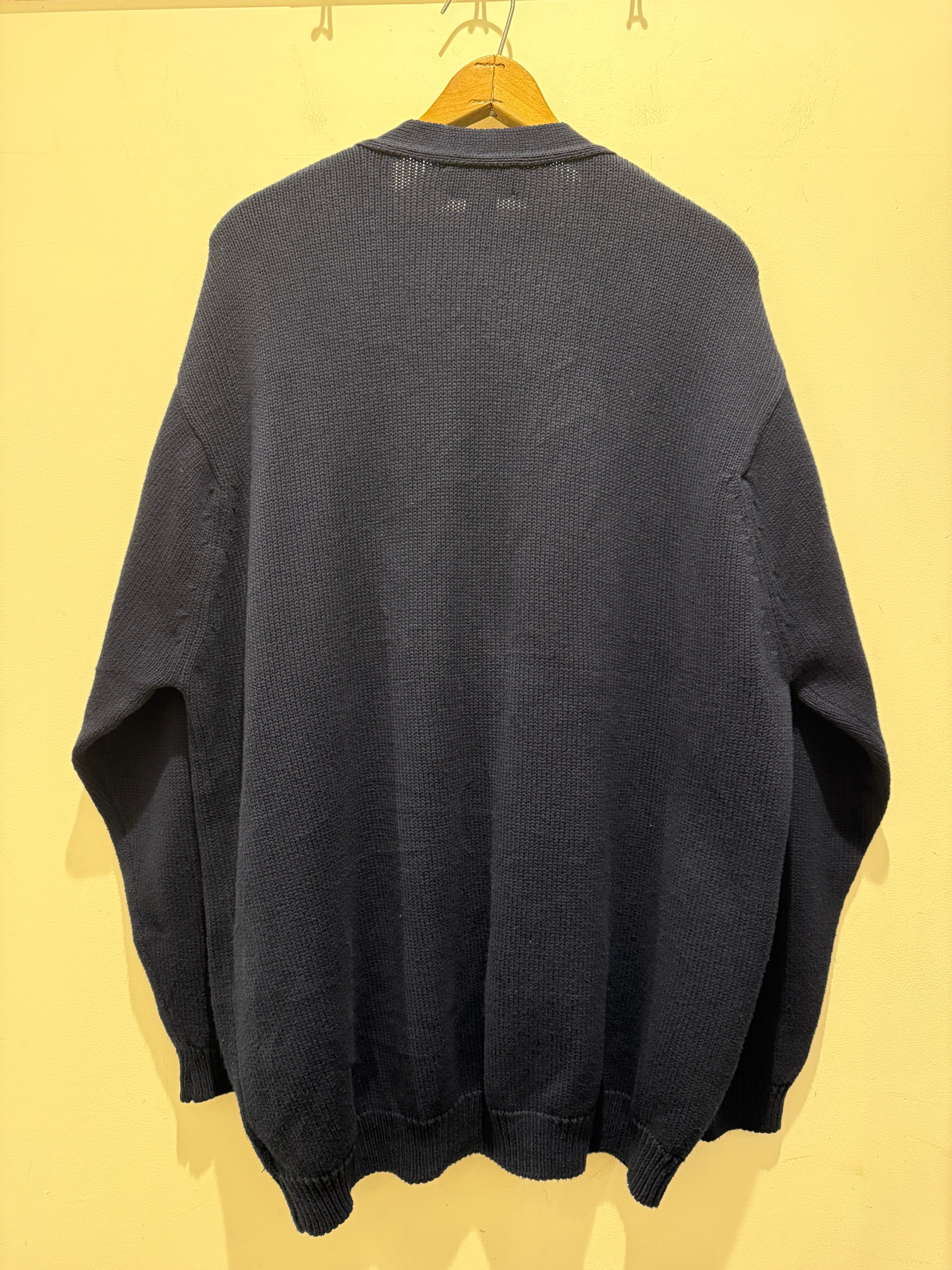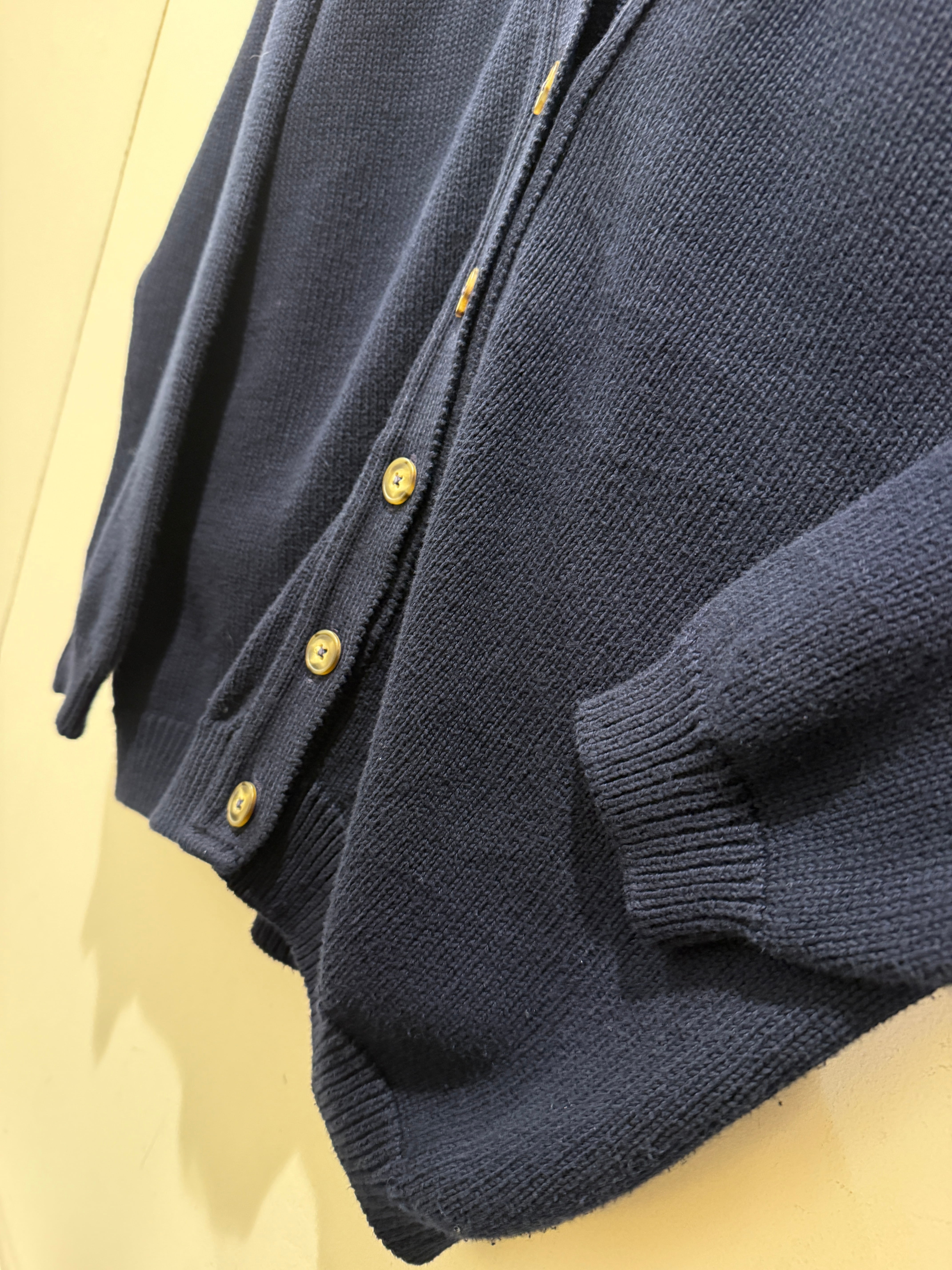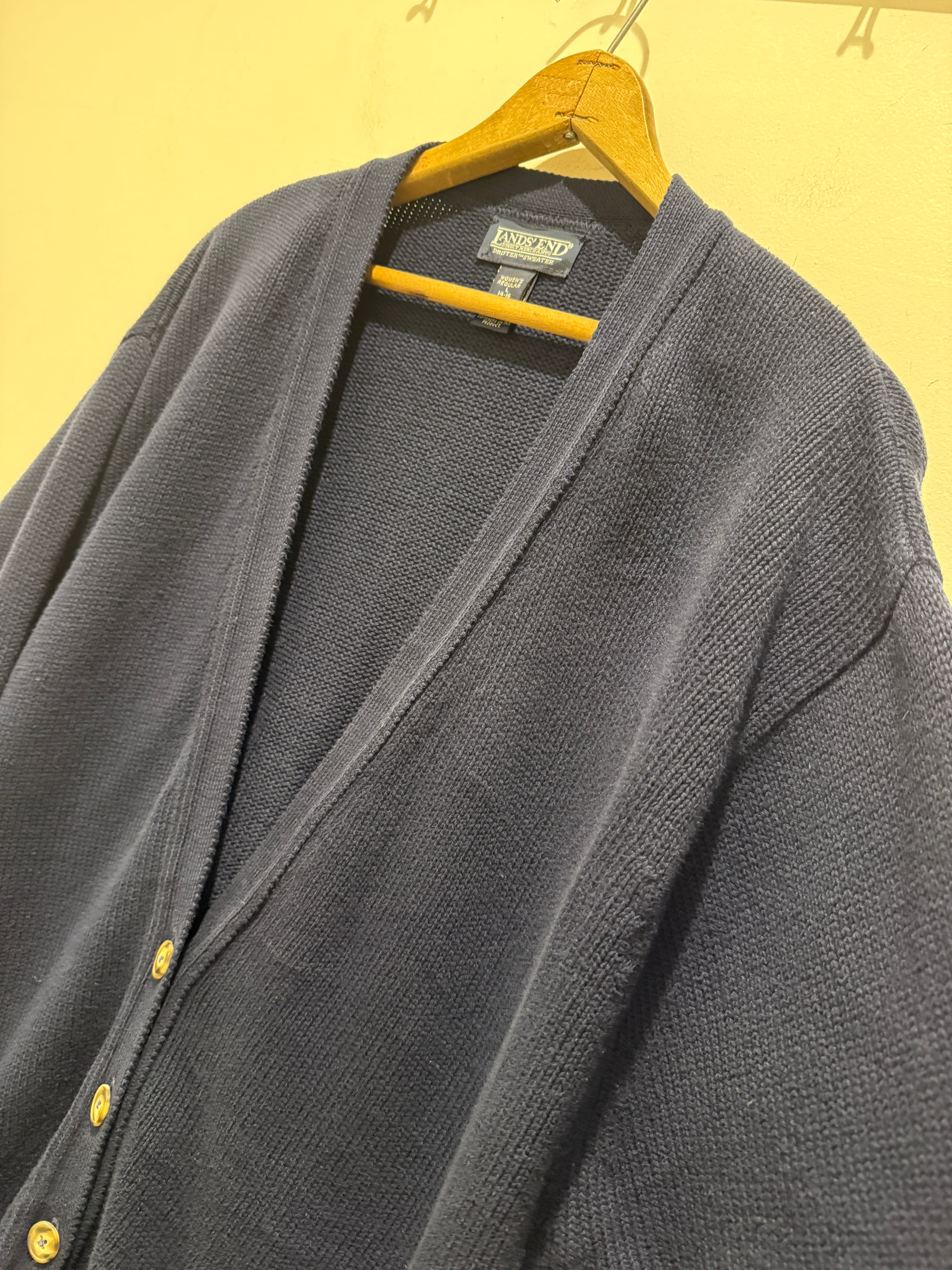 90年代アメリカ製ランズエンドのコットンニットカーディガンです。ネイビーカラーでレディースのアイテムとなります。大きめな作りなのでメンズでも着れるサイズ感ですね。コットンニットでもカーディガンタイプはあまり見かけなくアメリカ製とユニセックスでオススメです。