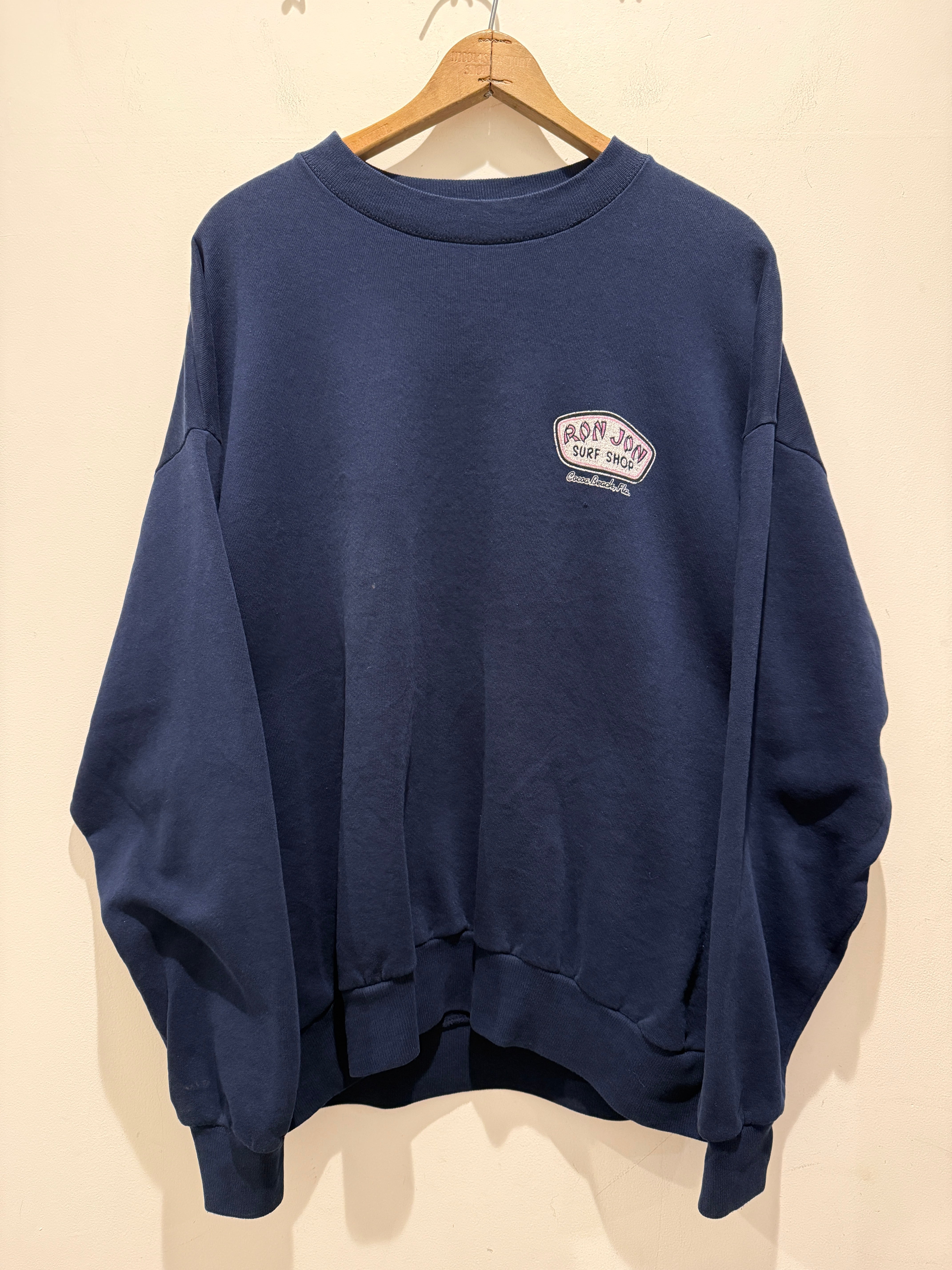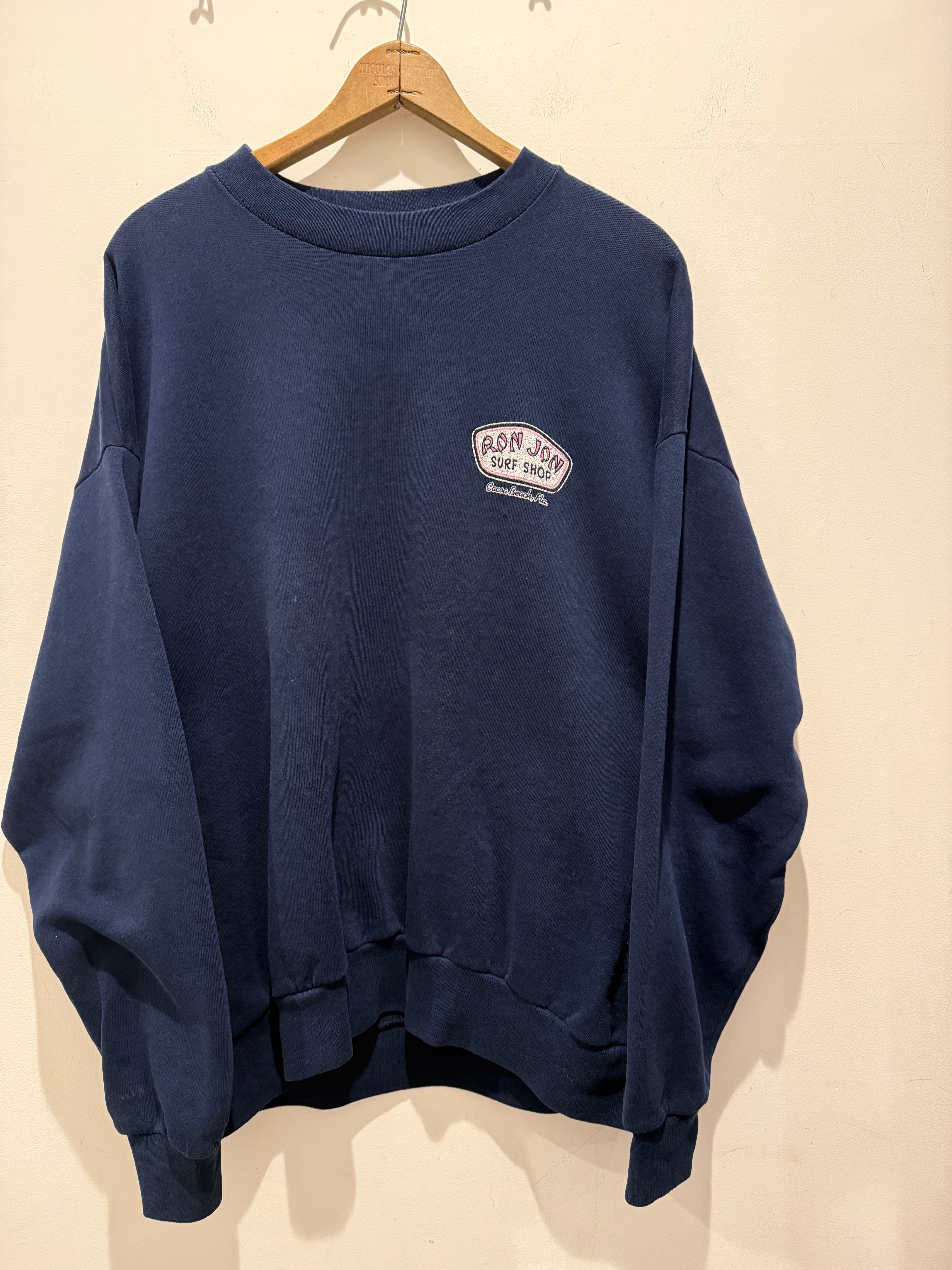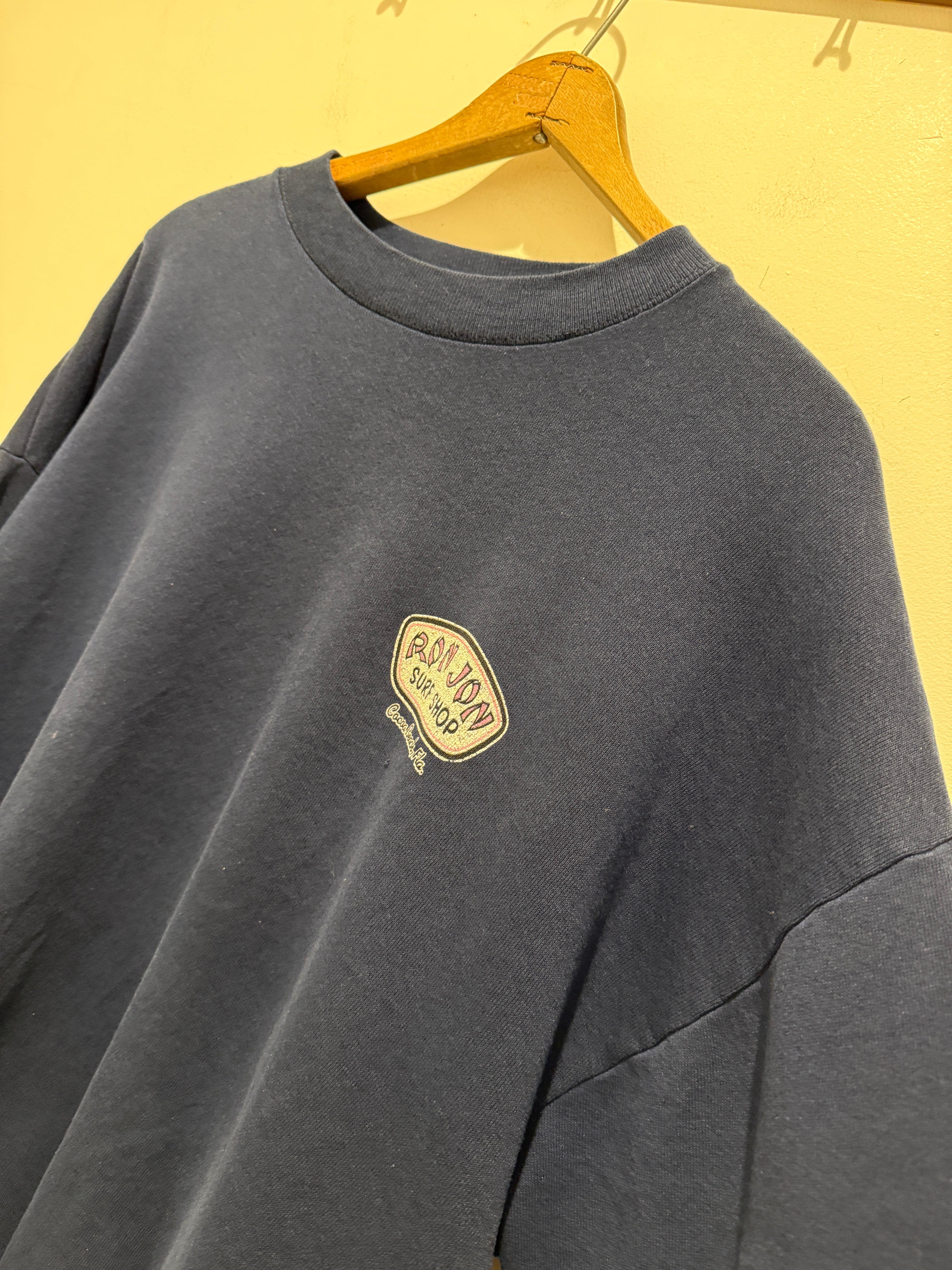 90年代ロンジョンのスウェットです。ネイビーボディでフロントは胸にワンポイント、そしてバッグにもプリントが入るスウェットとなります。TシャツやロンTよりスウェットは見かける機会が少ない印象ですね。デザインもロゴのみが多い中、バッグプリントにサメがはいるデザインなのもポイントです。サイズ表記が欠損してますがXL位の大きさとオススメなスウェットです。