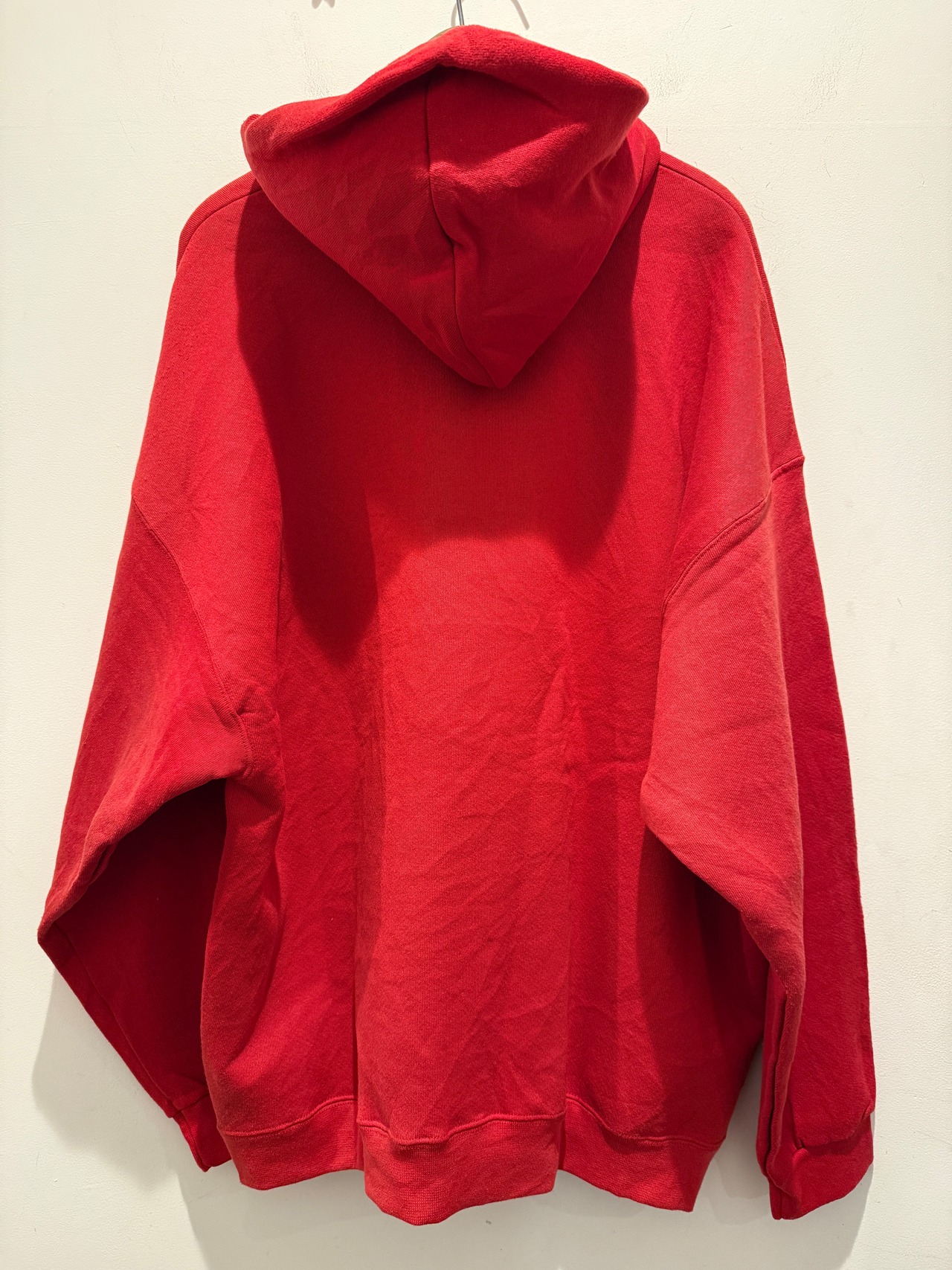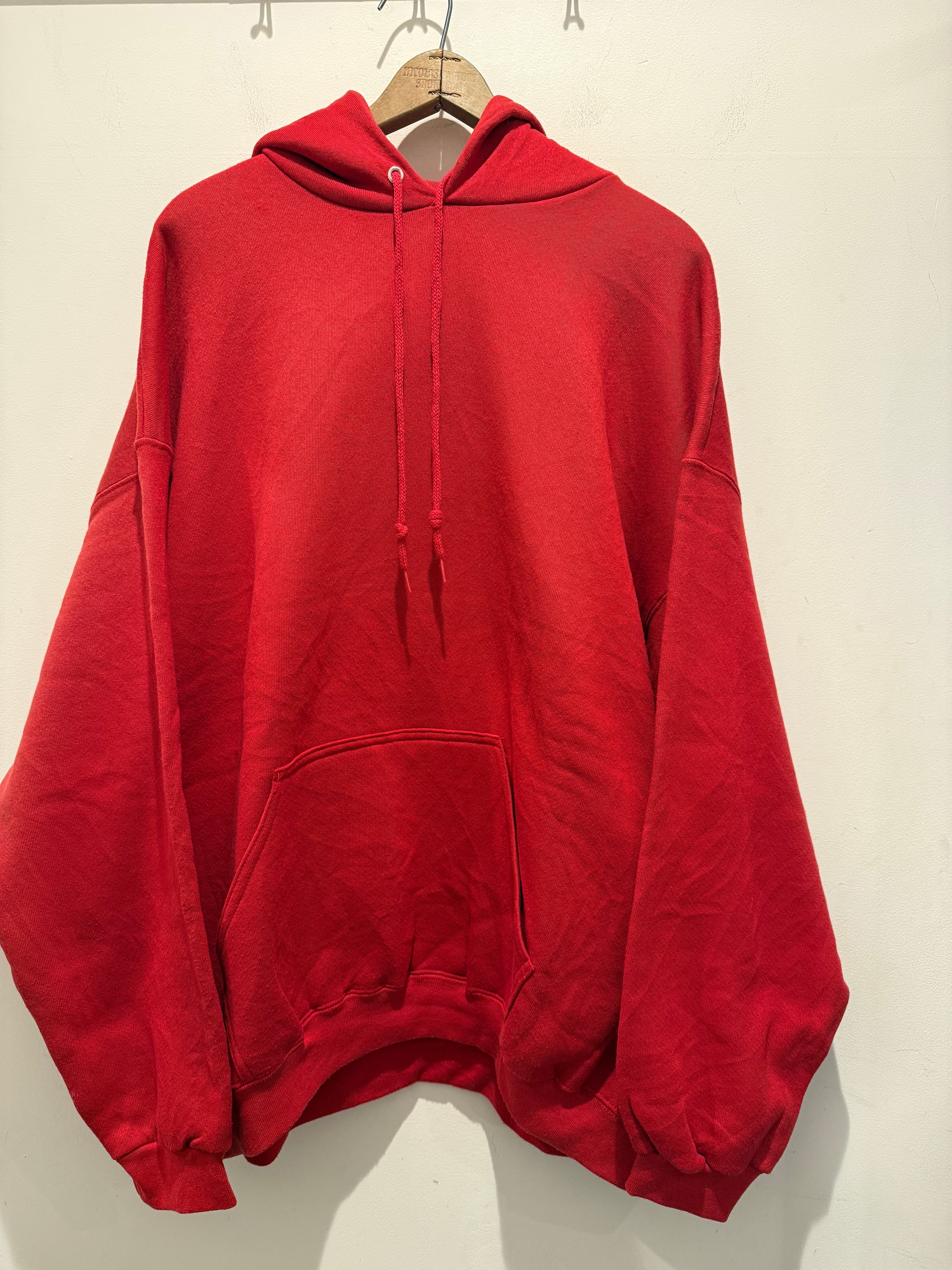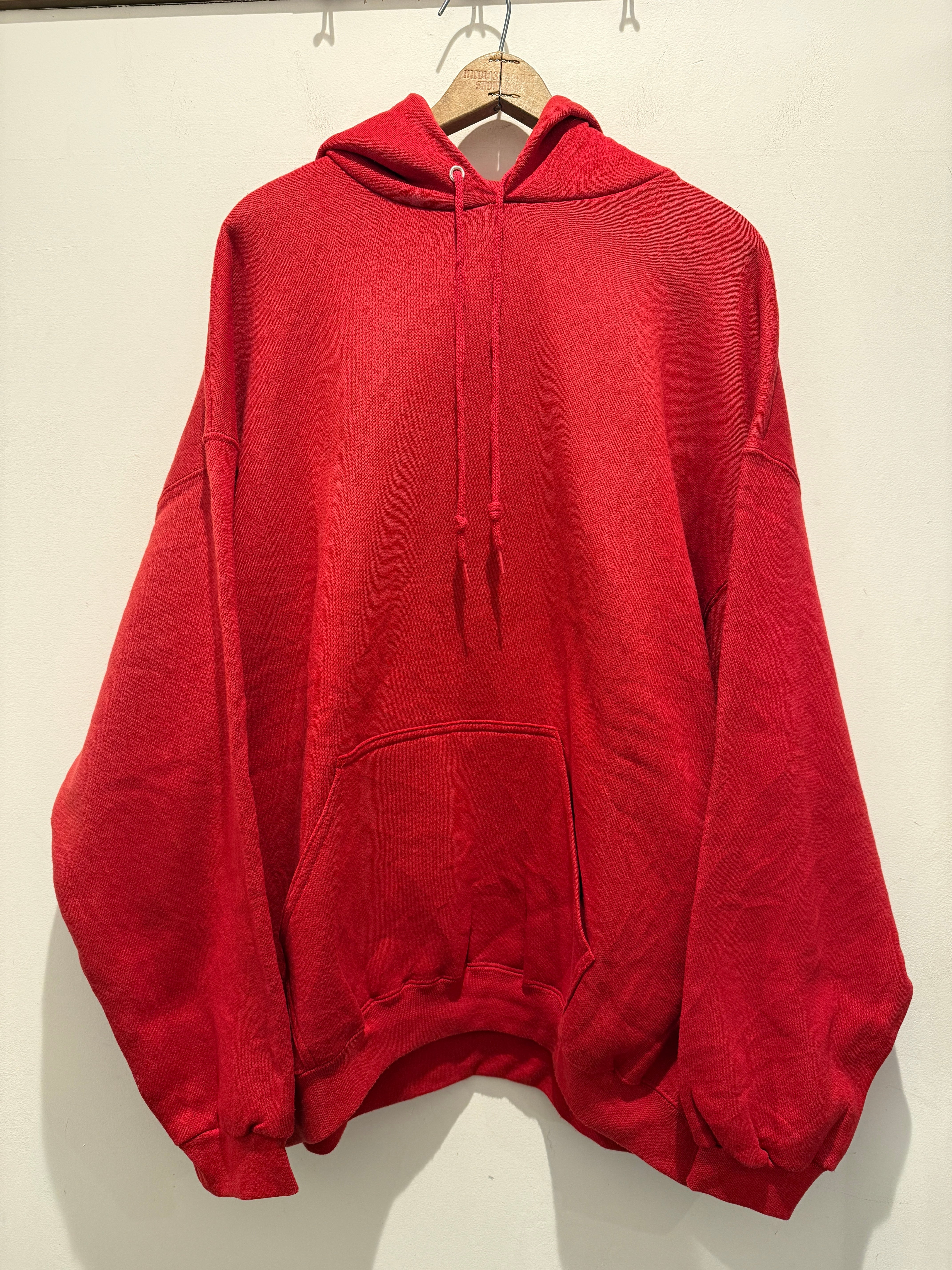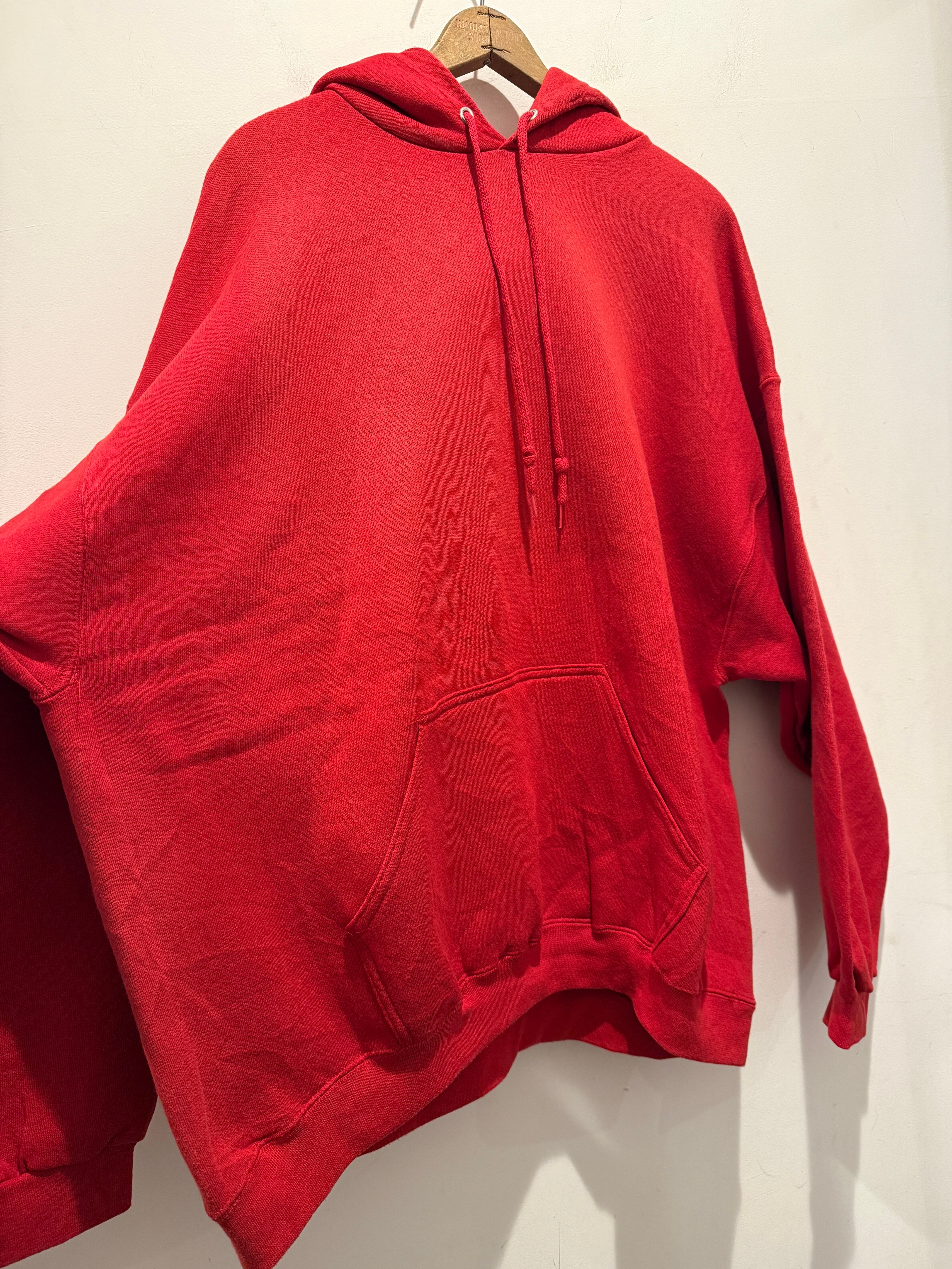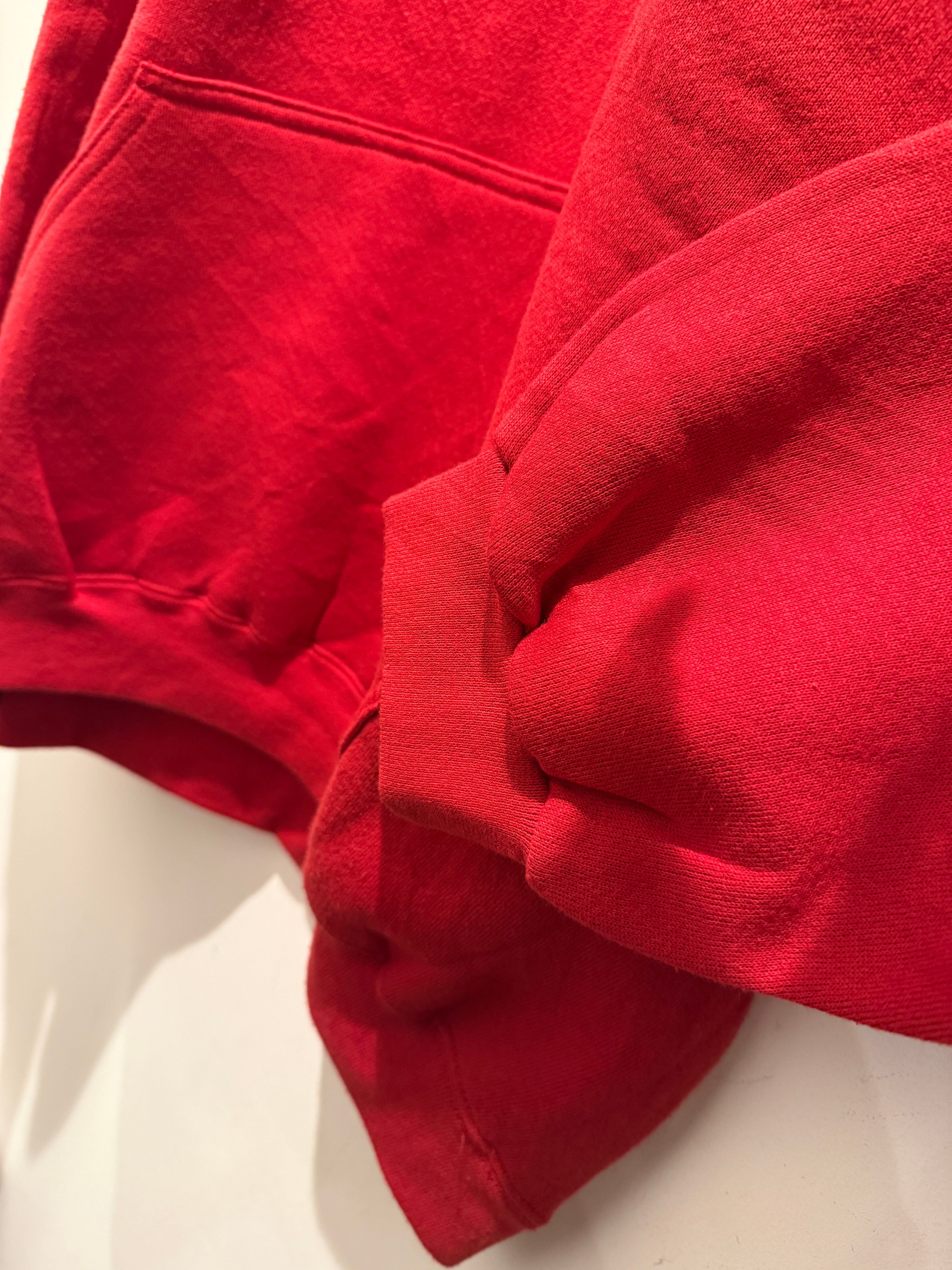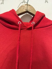 90年代アメリカ製の無地パーカーです。赤ボディのブランクで生地感もモチモチとコンディションも良い1着です。スウェットよりパーカーの無地は出てこない印象ですね。アルミのハトメでしっかりアメリカ製の大きめなサイズ感とオススメです。