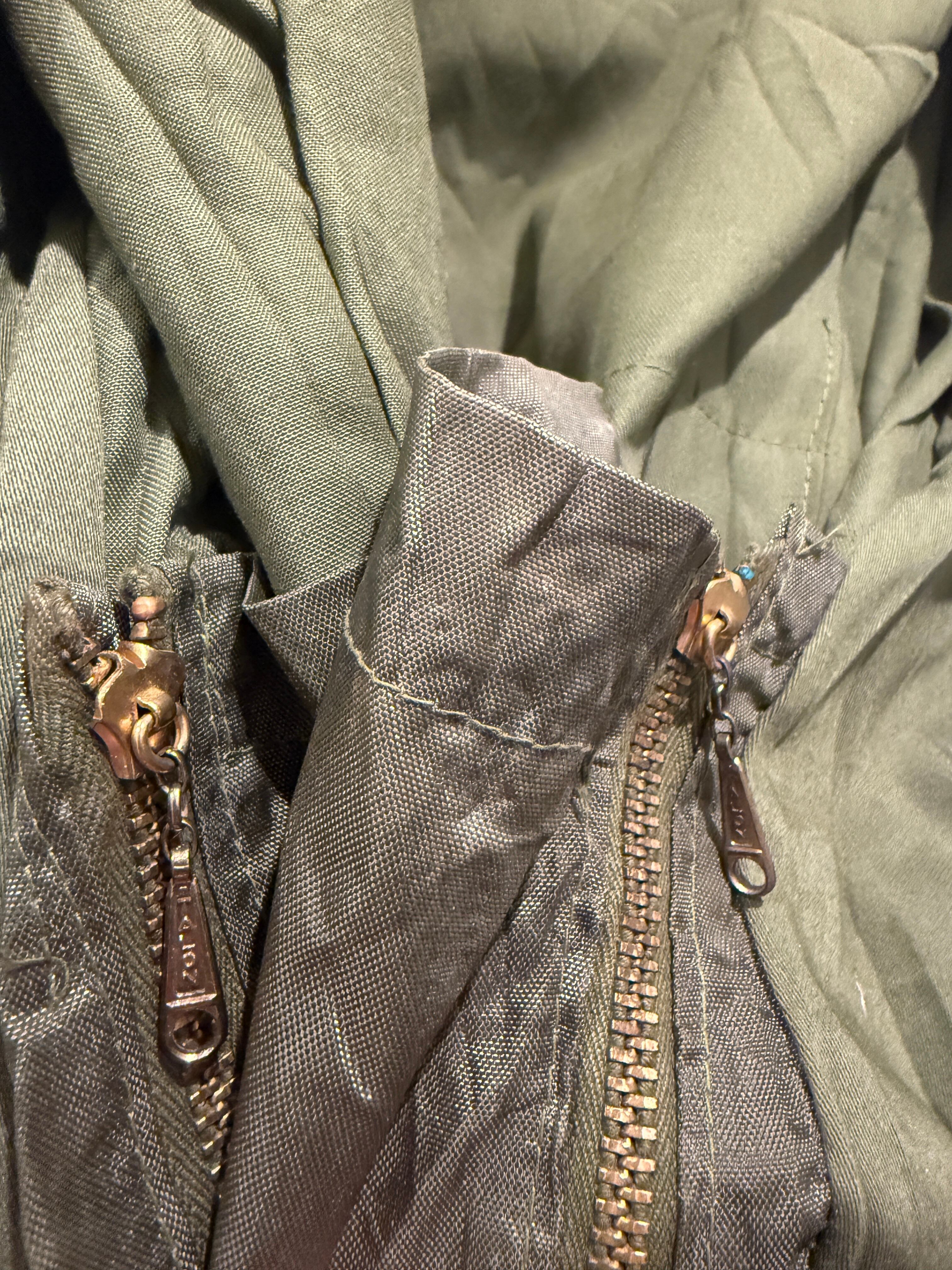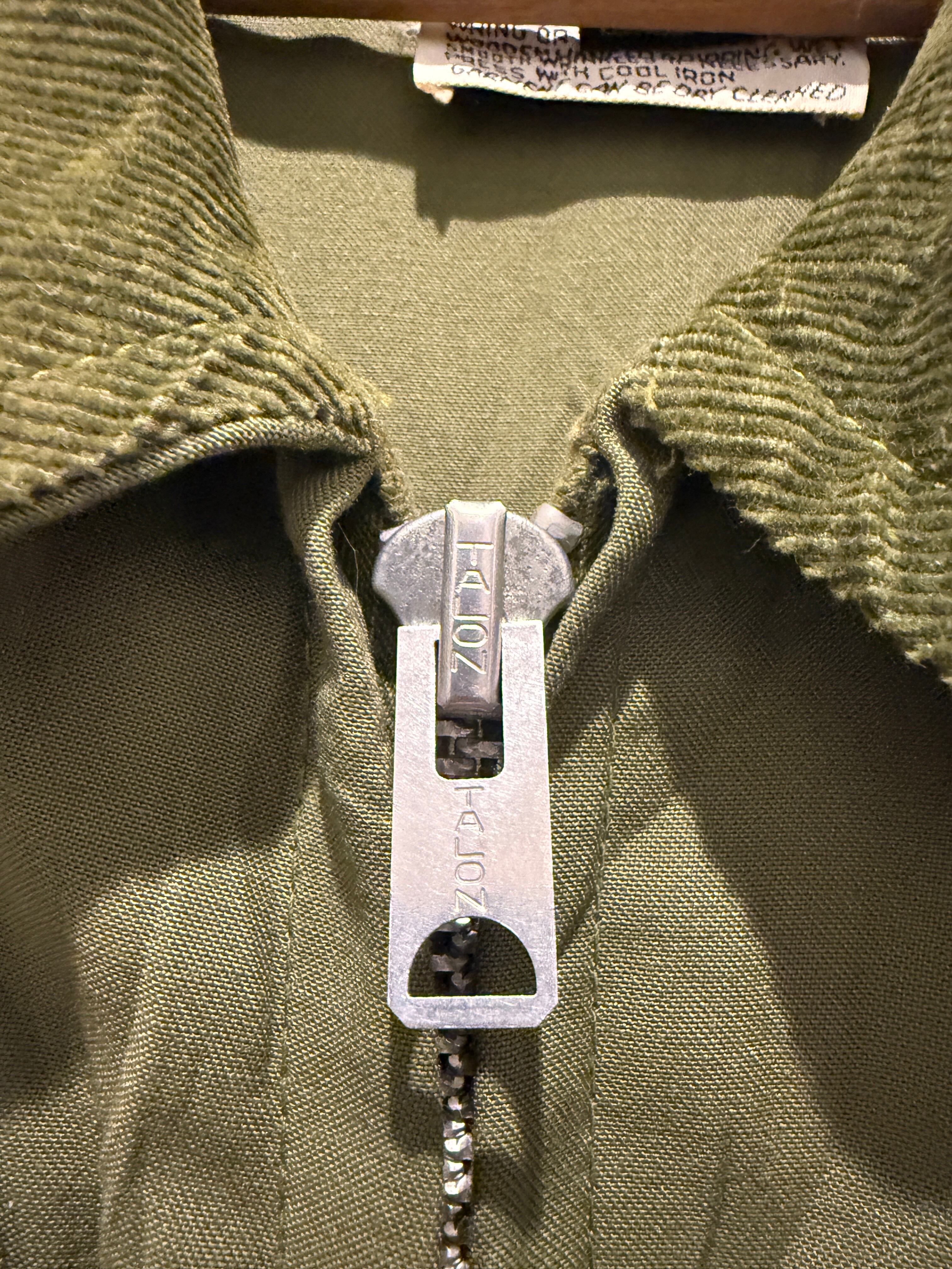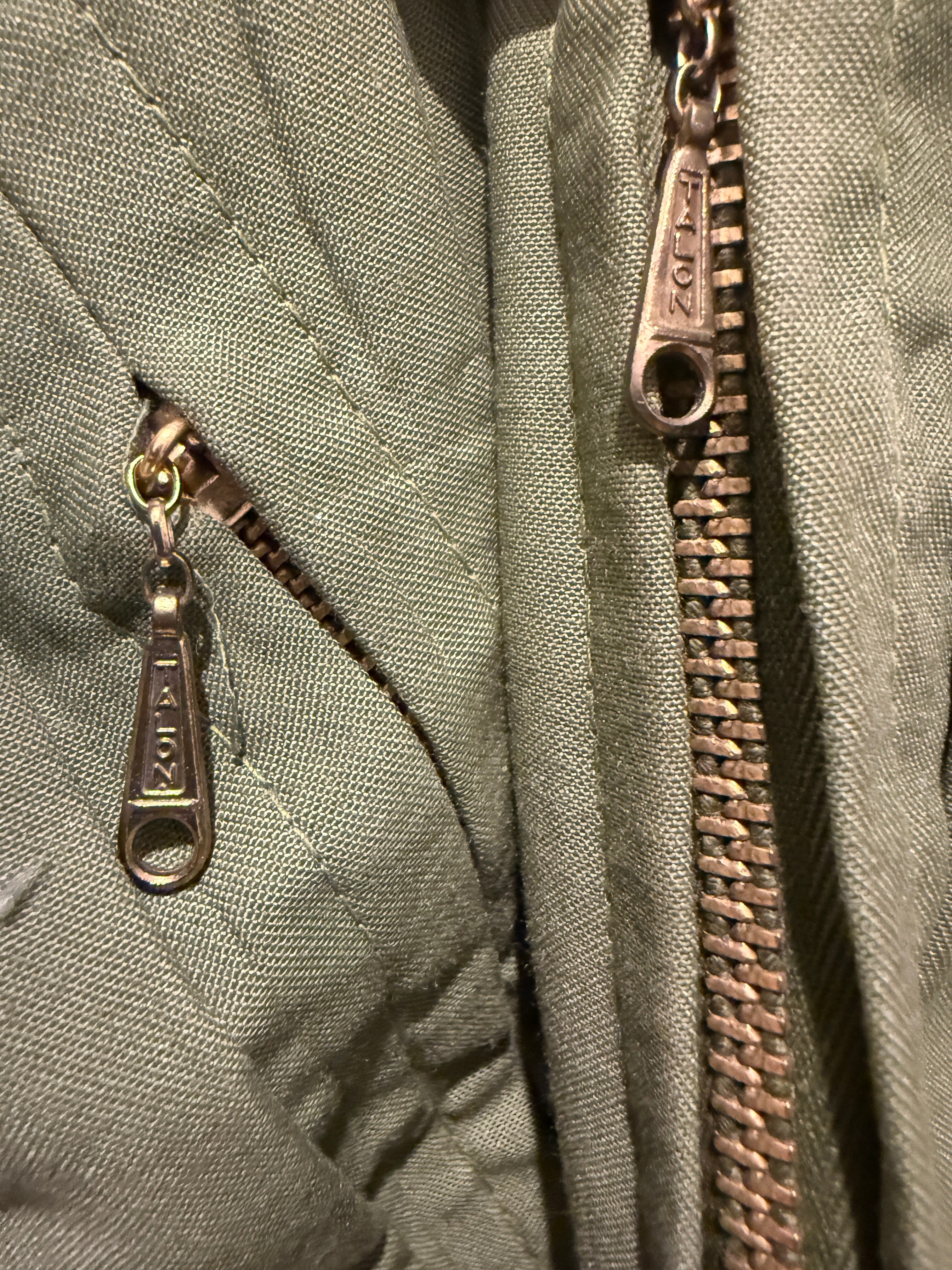 60年代〜70年代10Xのハンティングジャケットです。ハンティングジャケットといえばベージュブラウン系が多い中、こちらはオリーブグリーンとなります。またボタンでは無くジッパータイプなのも珍しいですね。メインジッパーはアルミのデカタロンでゲームポケットへのジッパーは涙タロンとナイスな1着です。ボタンも全てオリジナルで揃っていて欠損も無くオススメなアイテムです。