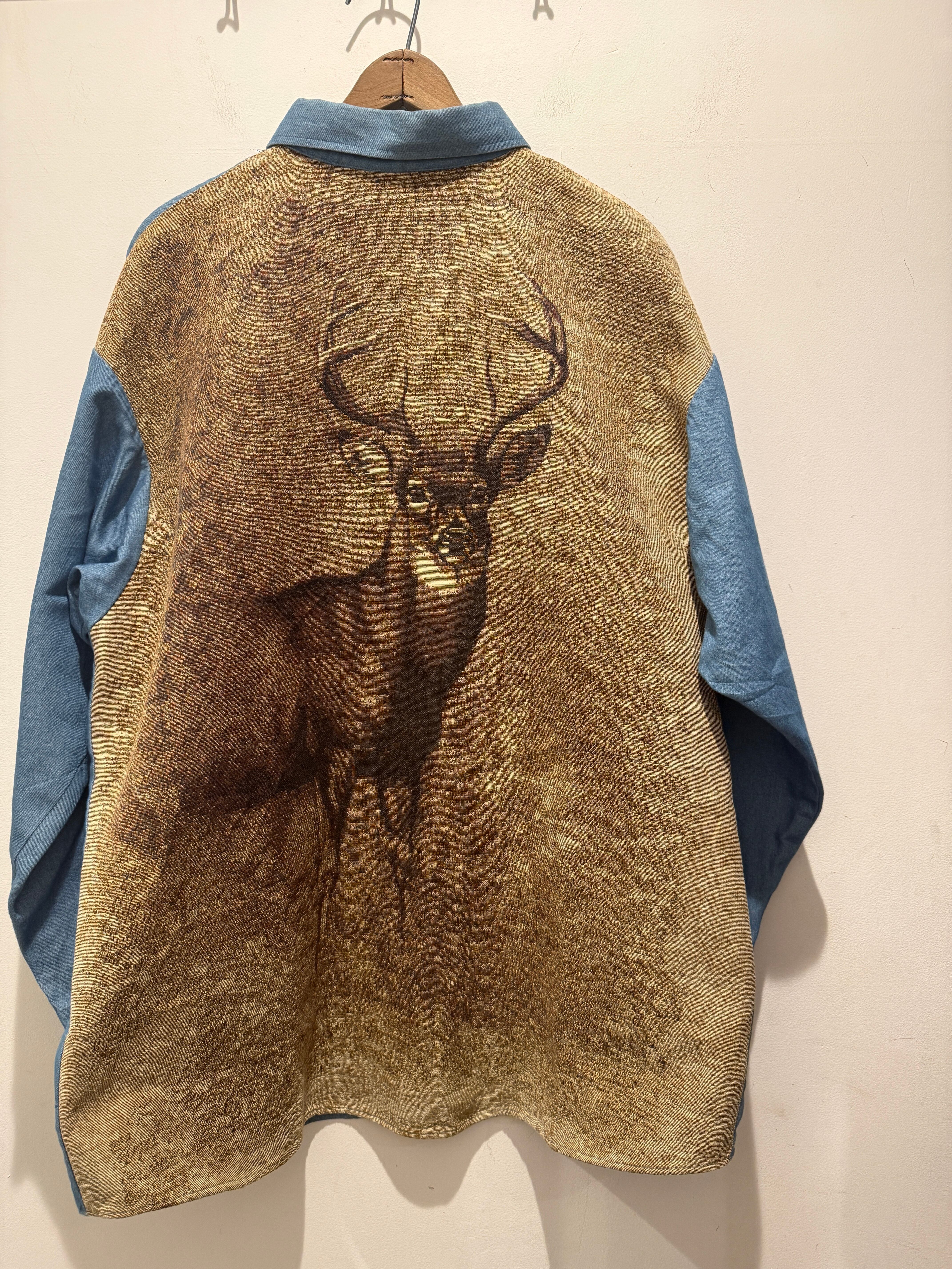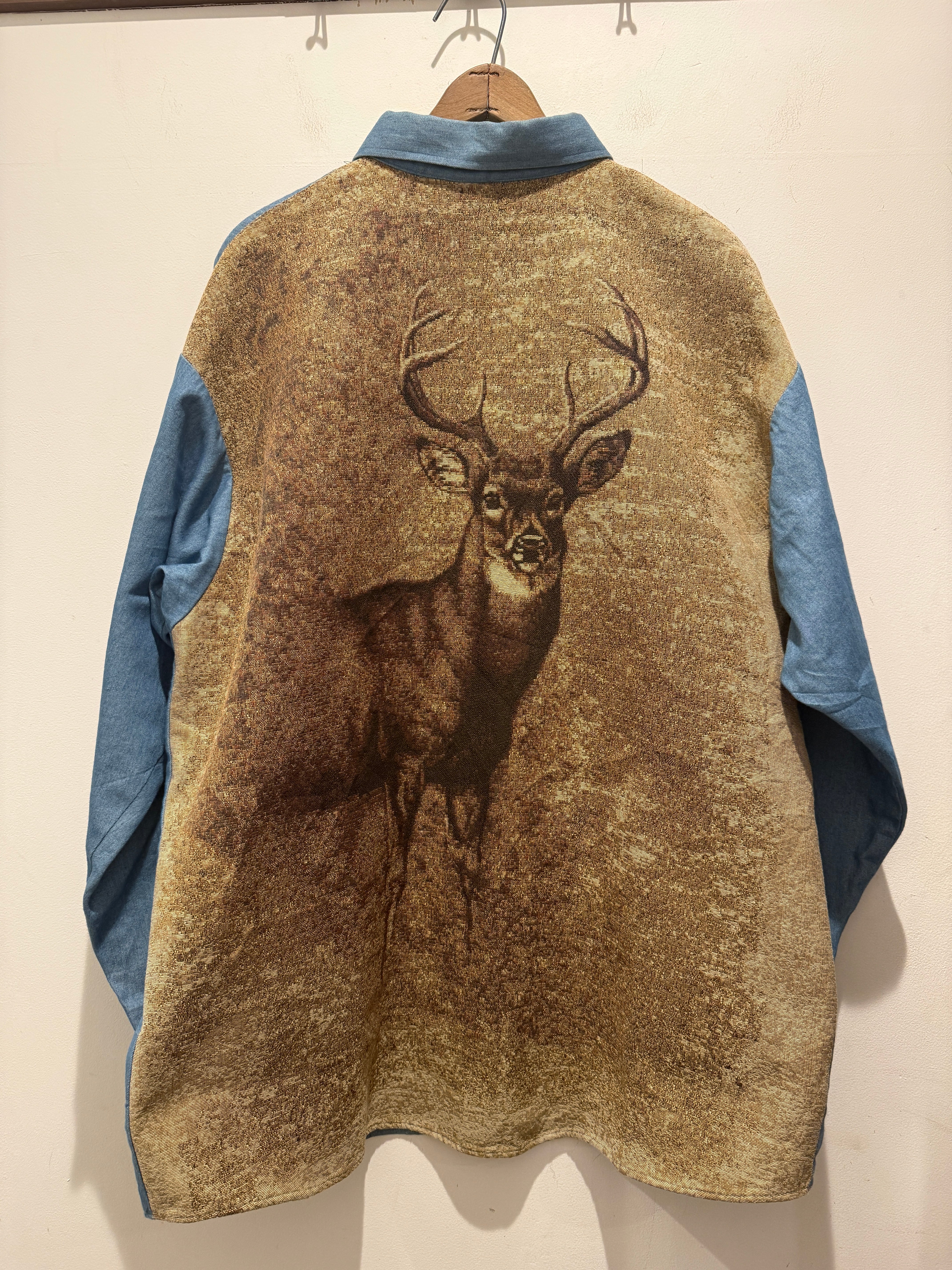 90年代アメリカ製のデザインデニムシャツです。フロントがデニムシャツでバッグがゴブラン織りと変わり種な1着です。ゴブラン織りといえばレディースのジャケットアイテムなどでは見かけますがメンズアイテムでは少ない印象ですね。コンディションも良くしっかりアメリカ製とオススメです。
