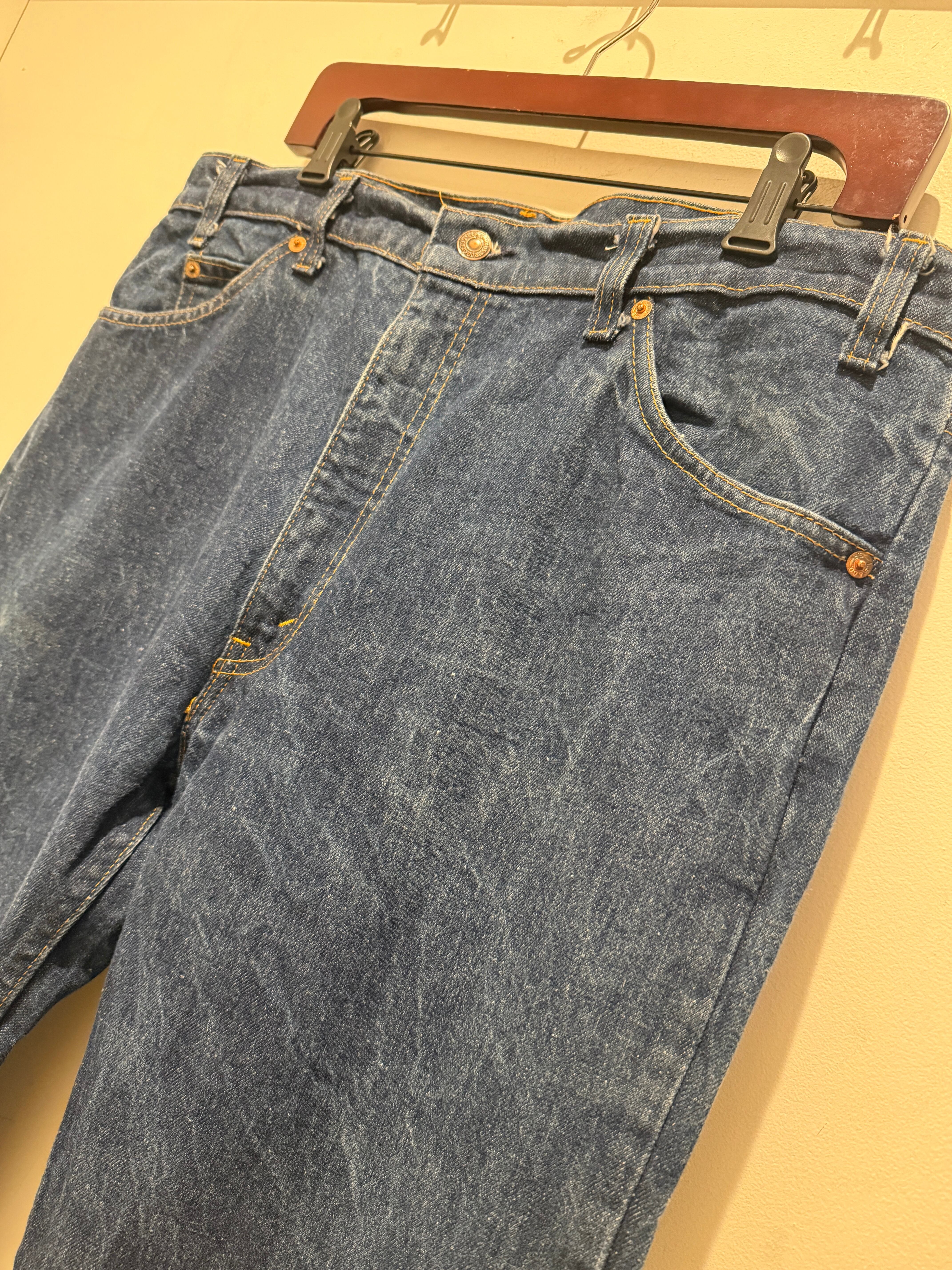 80年代アメリカ製リーバイス505デニムパンツです。1981年7月製造の505でレングスもオリジナルで色も濃くノーリペアなデニムです。501だと赤ミミの年代と同じですね。粒感があり良い縦落ちが期待出来そうな個体となっております。実寸W37×L31と少しウエストインチUPして履いても格好良くオススメな1本です。