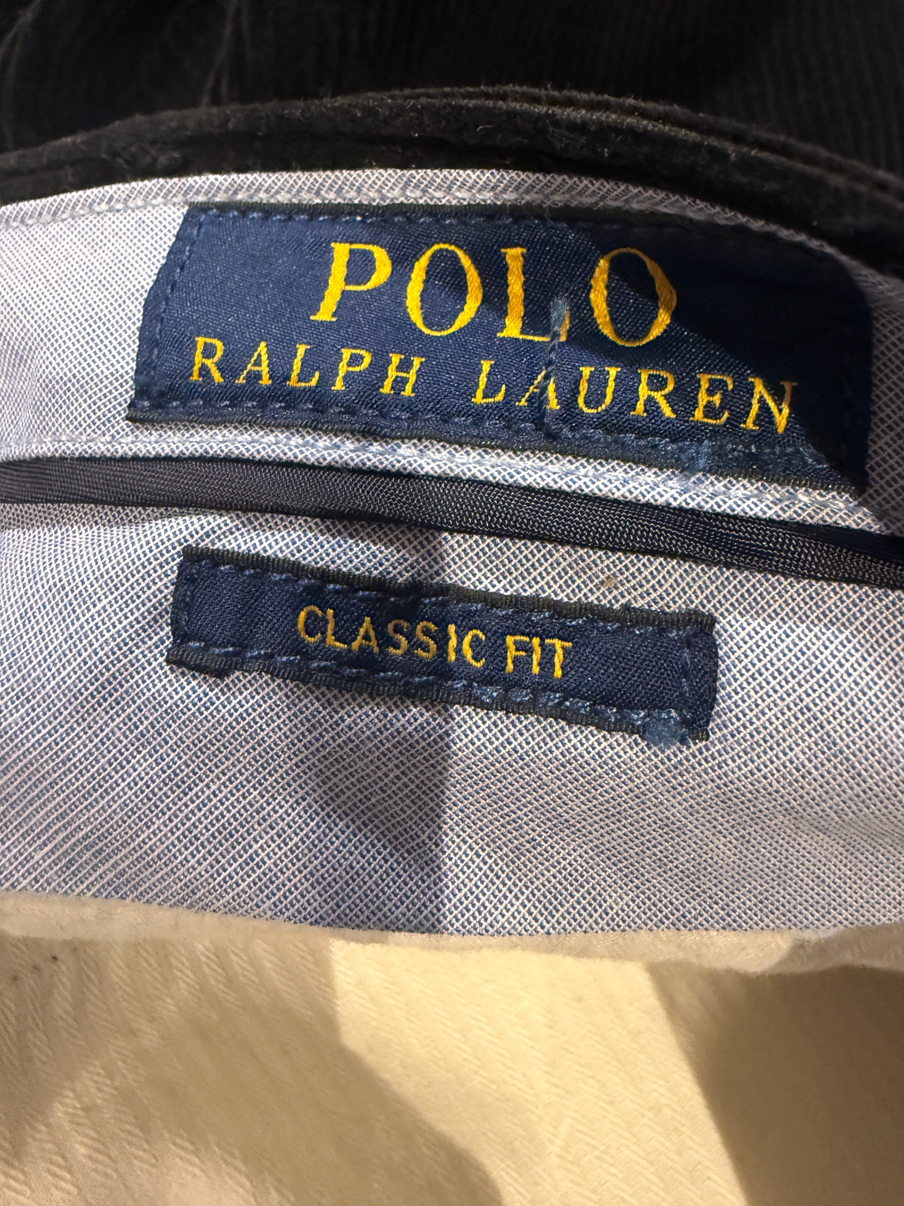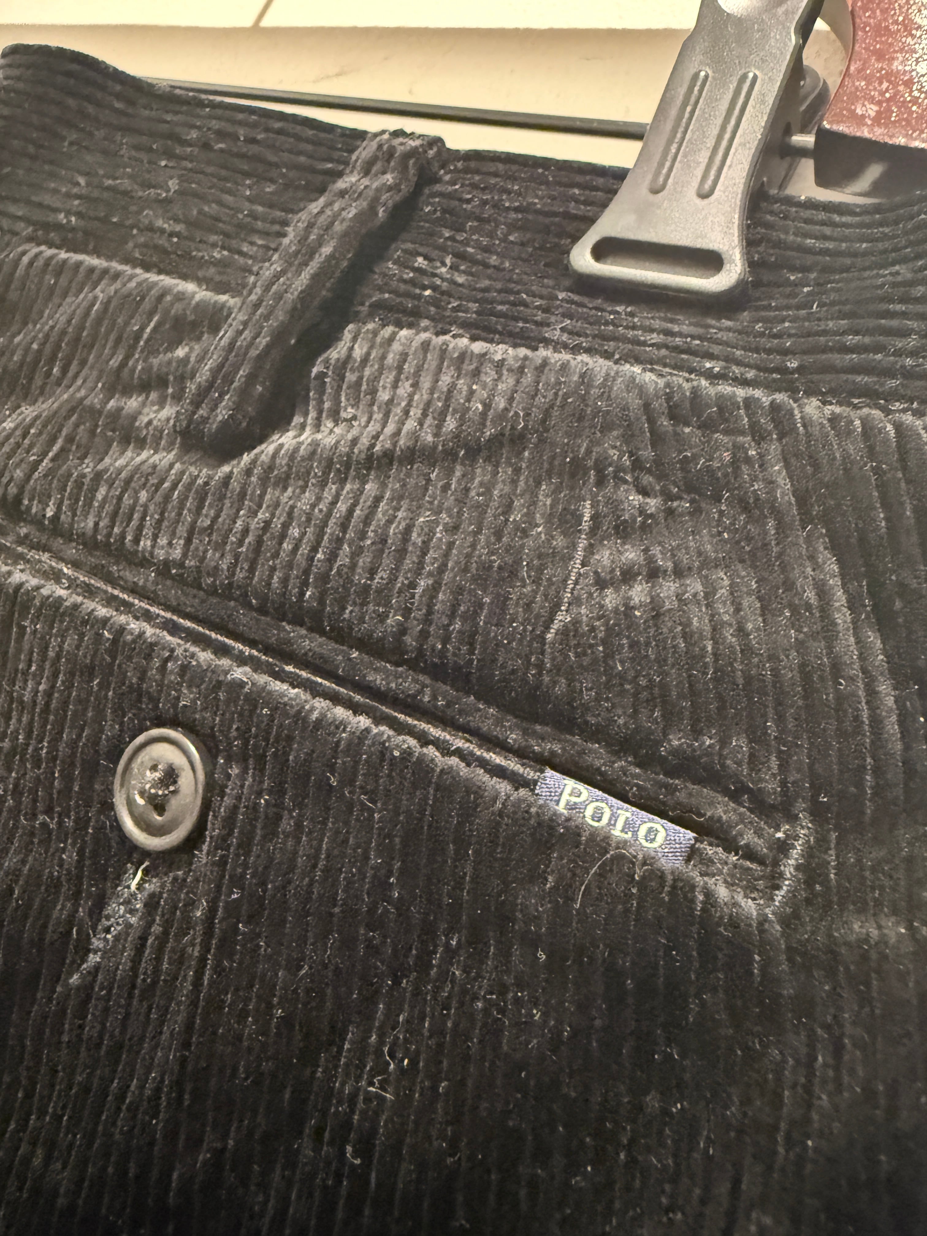 ラルフローレンのブラックコーデュロイパンツです。年代は古く無いですがあまり出てこないブラックカラーとなります。ストレッチも効いていて履きやすく綺麗なシルエットです。実寸でW32×L29とサイズ感も良く、綺麗なコンディションとオススメな1本です。