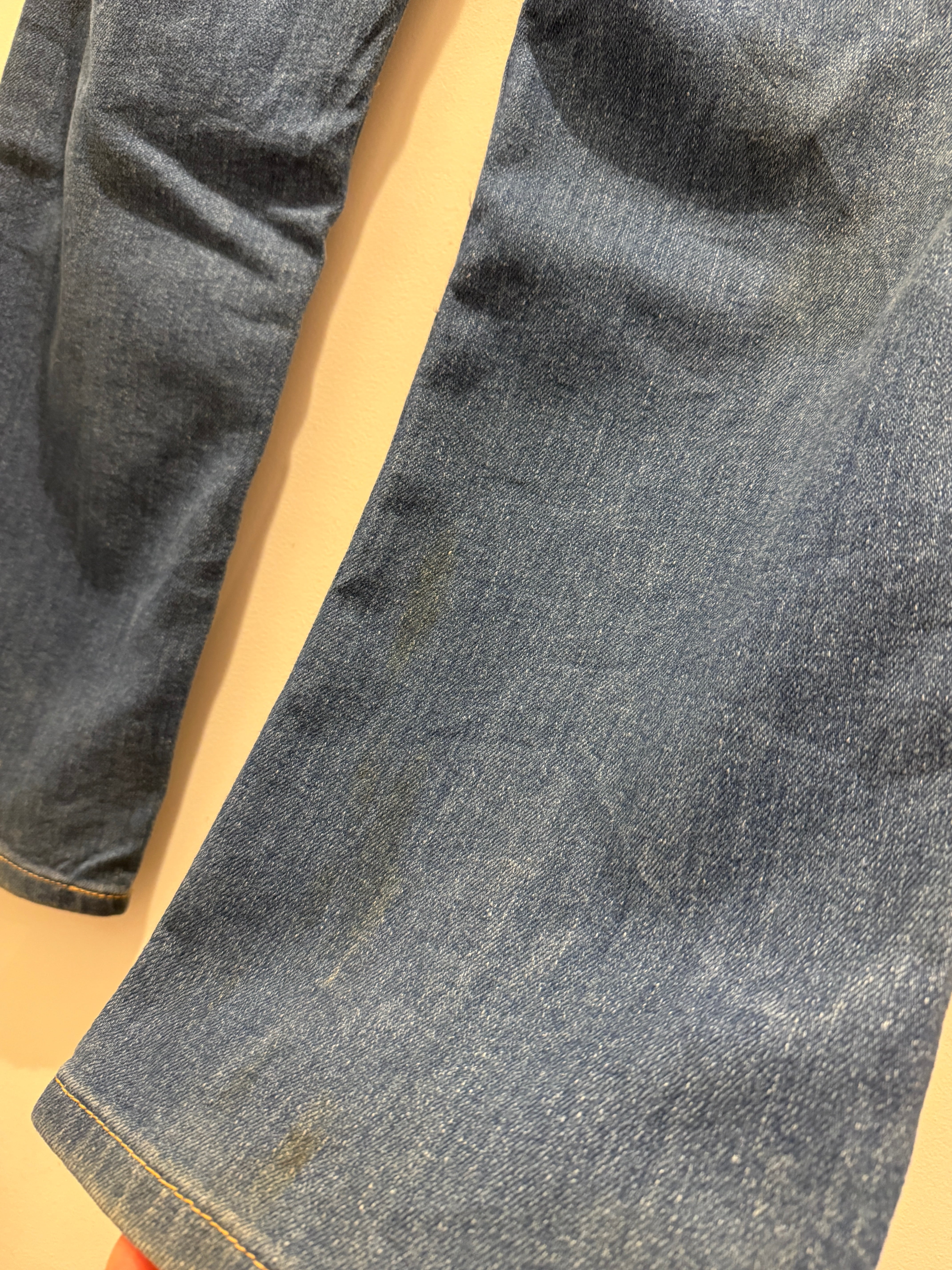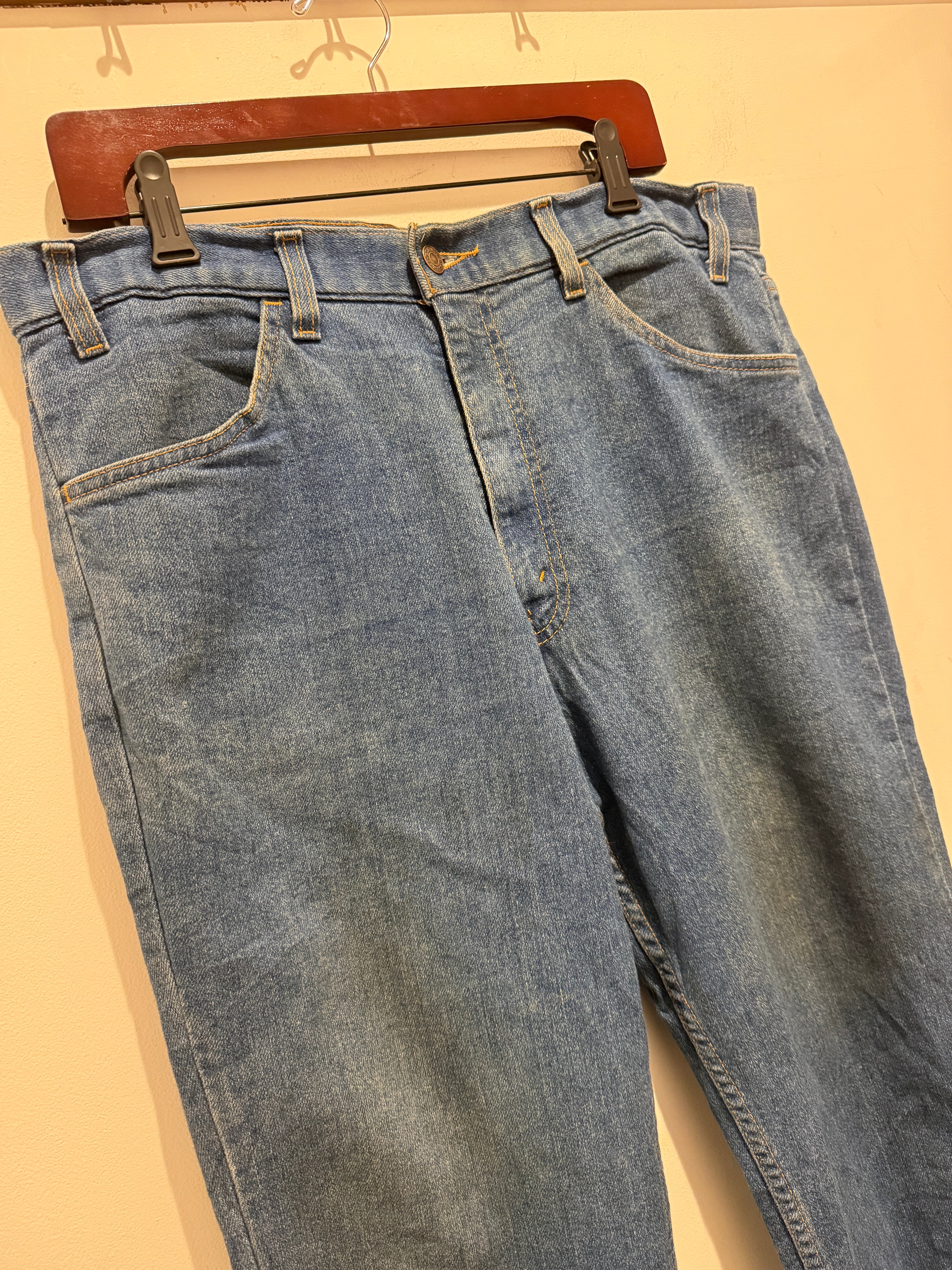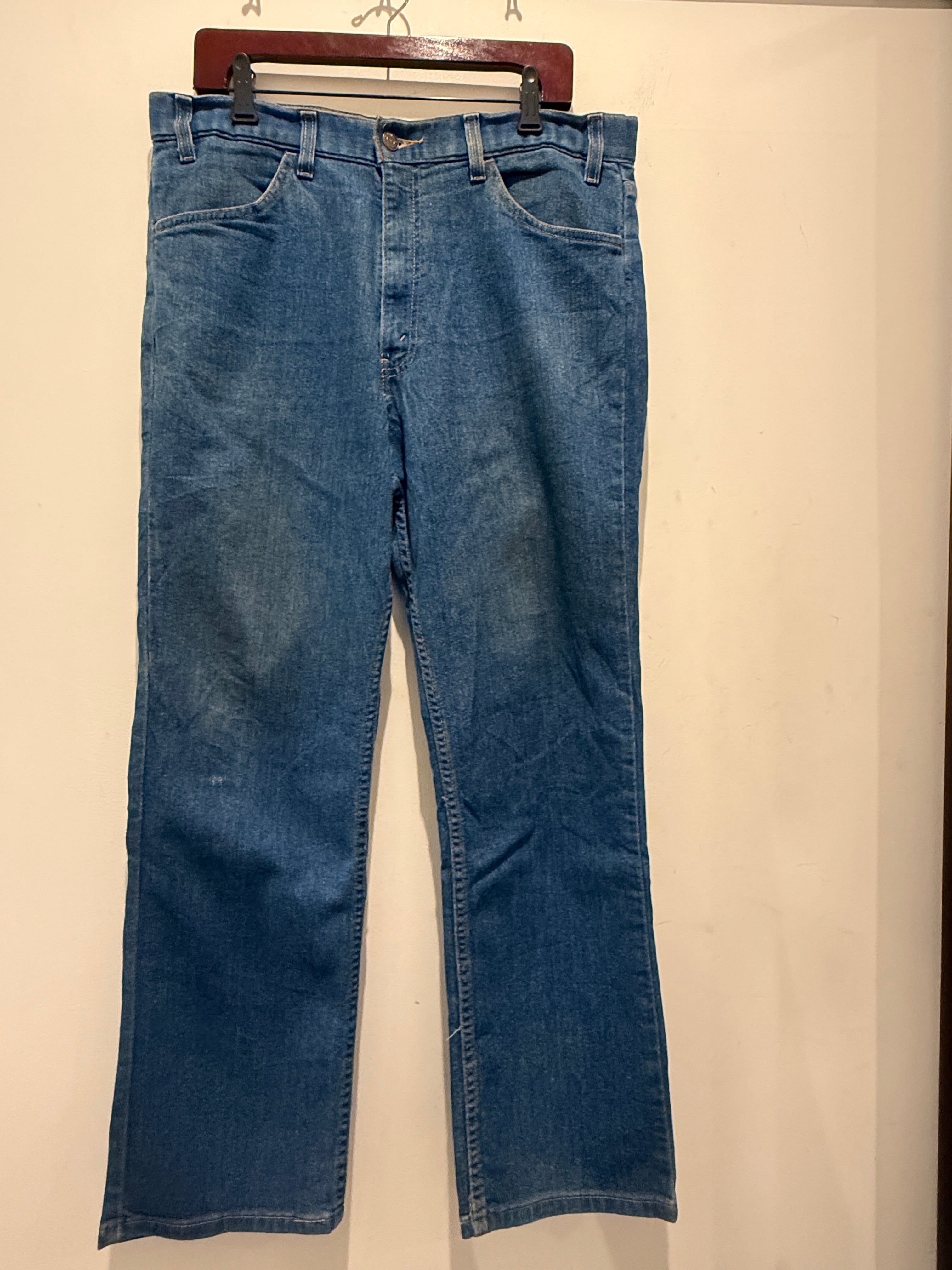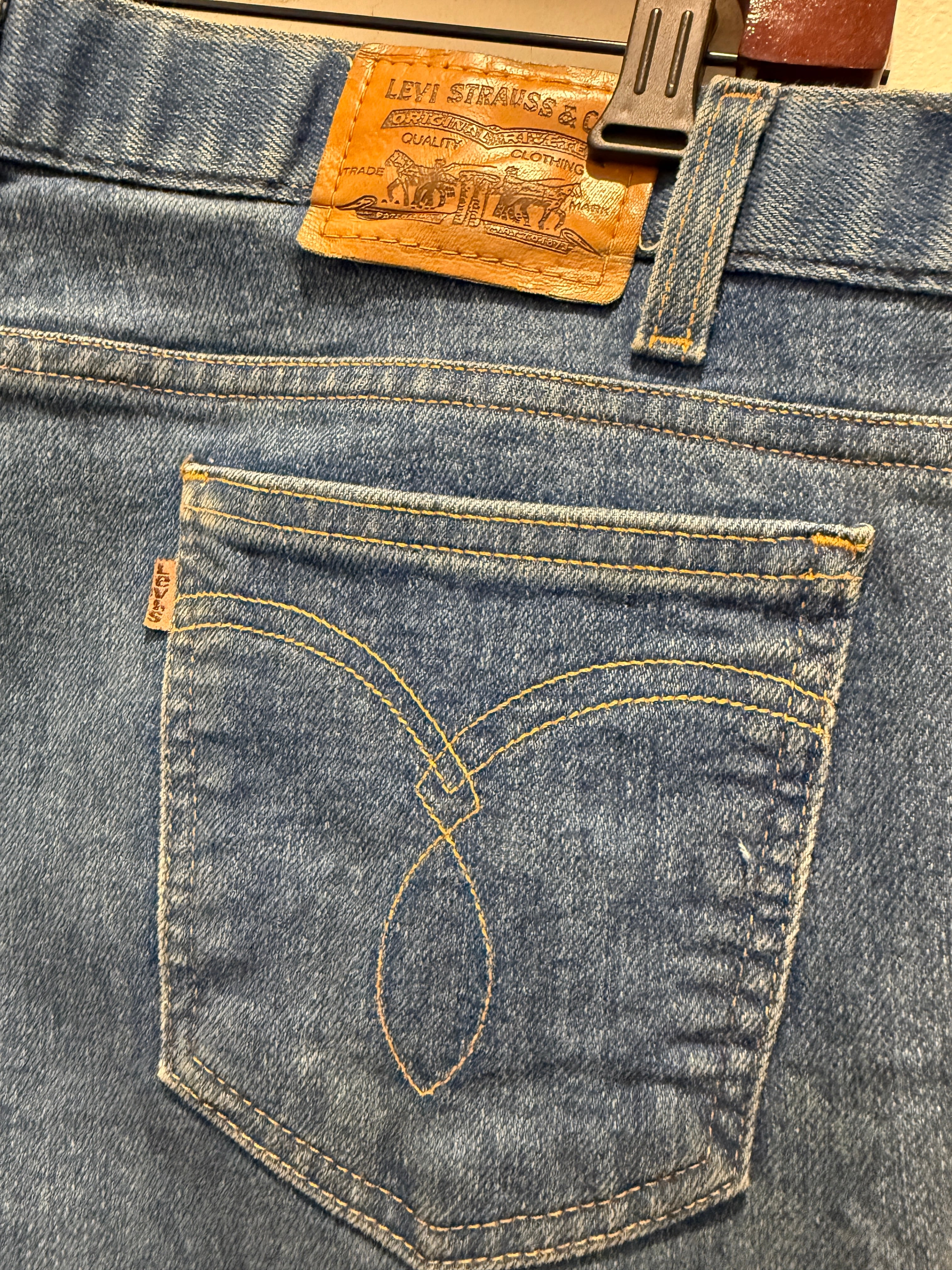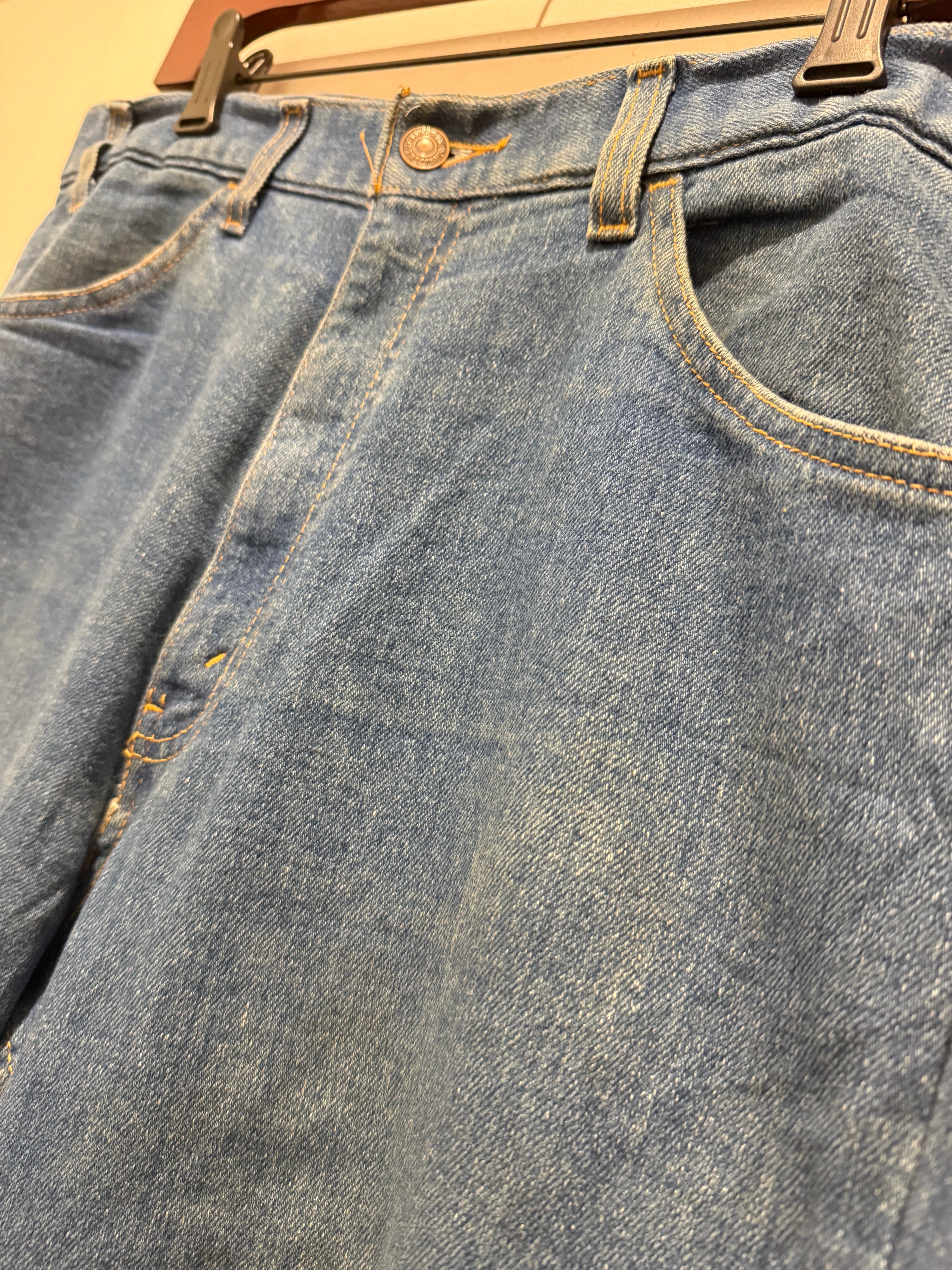 90年代リーバイスのデニムパンツです。縦落ちが綺麗に出ていてストレッチの効いたリーバイスのデニムとなります。ポケットの刺繍デザインやタブがブラウンなのも良い感じですね。1999年7月製造のグアテマラ製のリーバイスとなります。股上も深めでゆとりのあるストレートシルエットと形も良くオススメです。