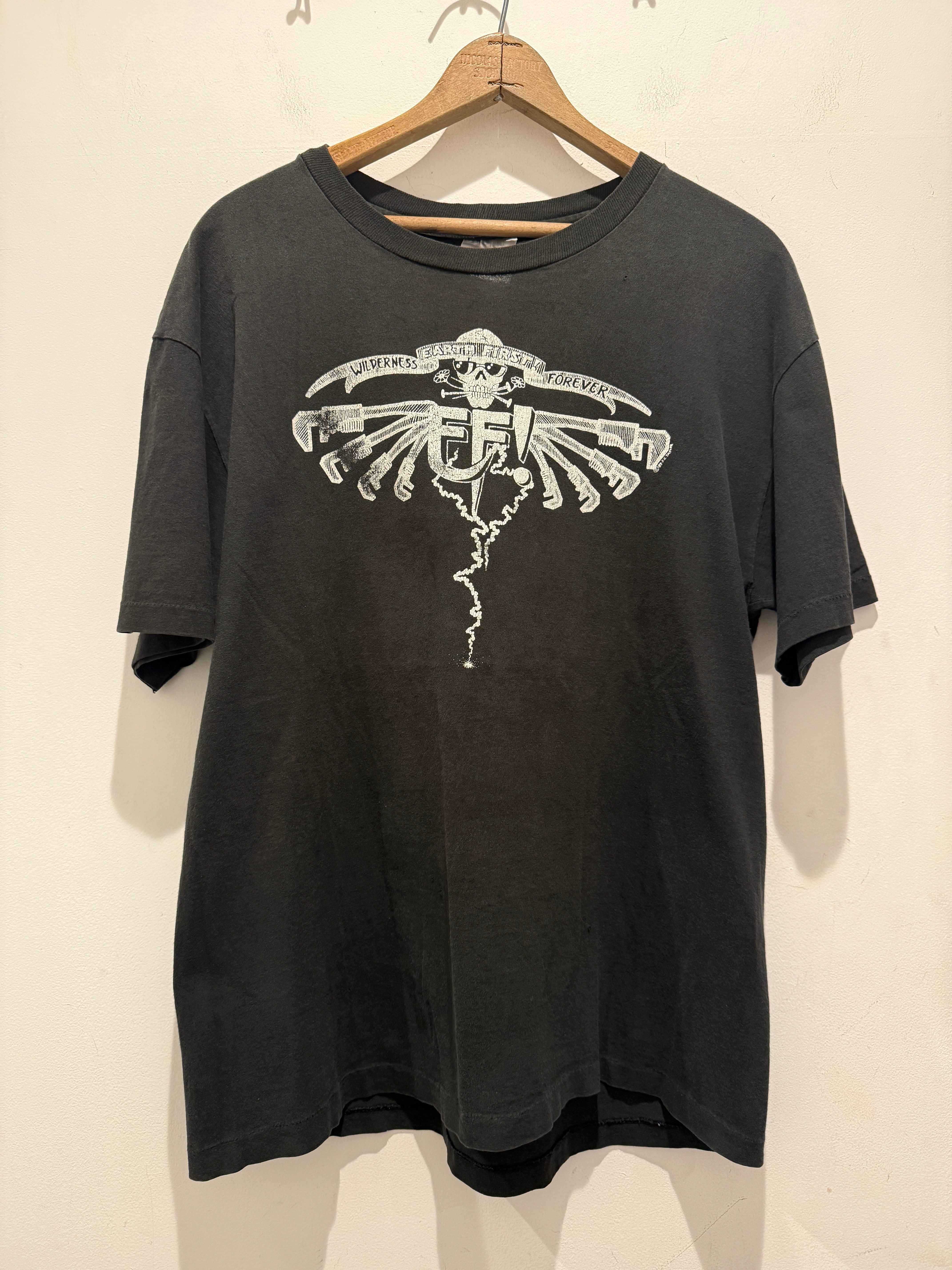 80年代アメリカ製ヘインズのプリントTシャツです。フェードしたブラックボディに環境保護を訴えているプリントとなります。スカルと花の組み合わせとナイスなグラフィックデザインですね。袖、裾共にシングルステッチで1989年のコピーライトもはいります。ヘインズのコットン100%でアメリカ製とボディも良くオススメなTシャツです。
