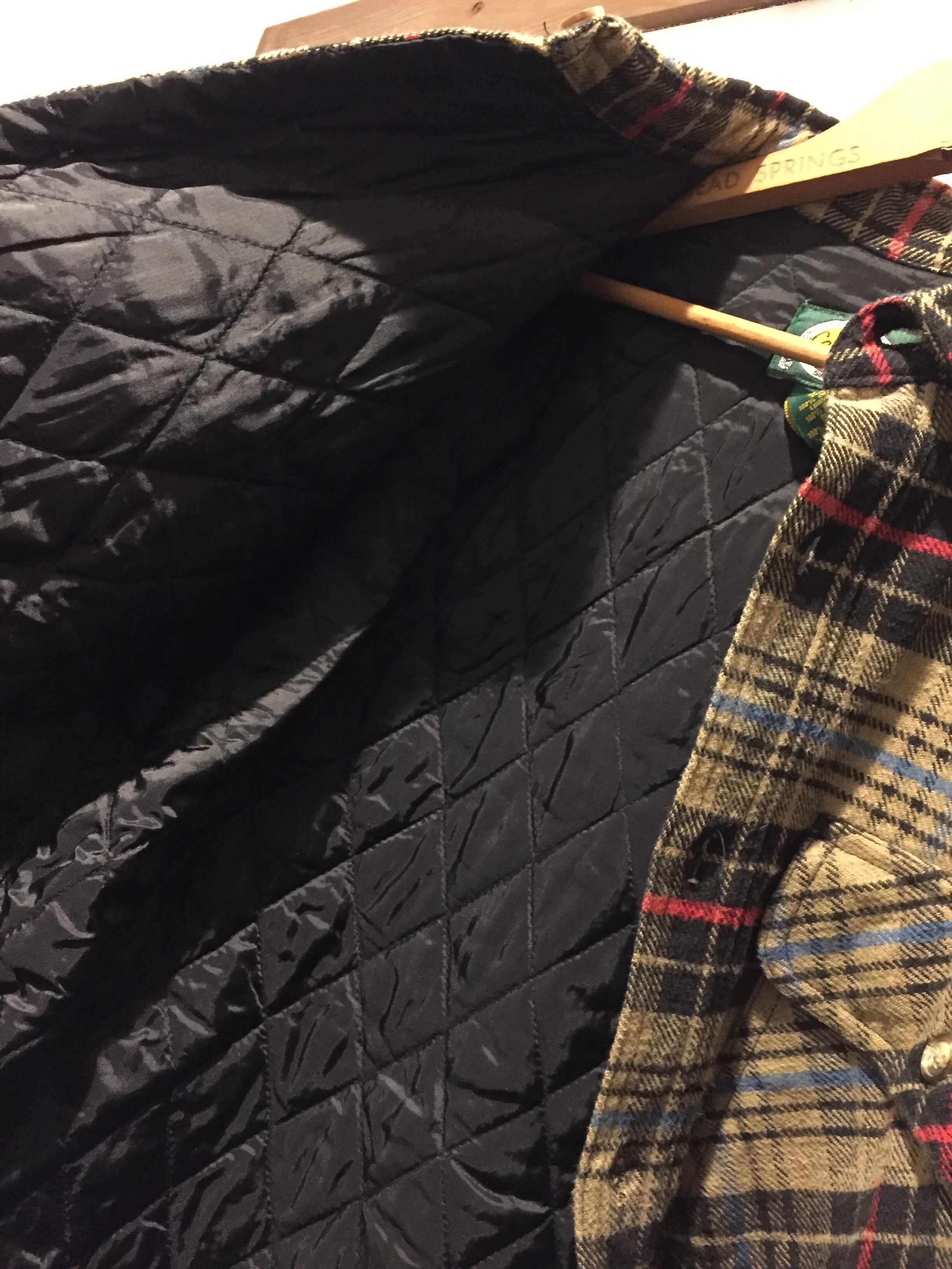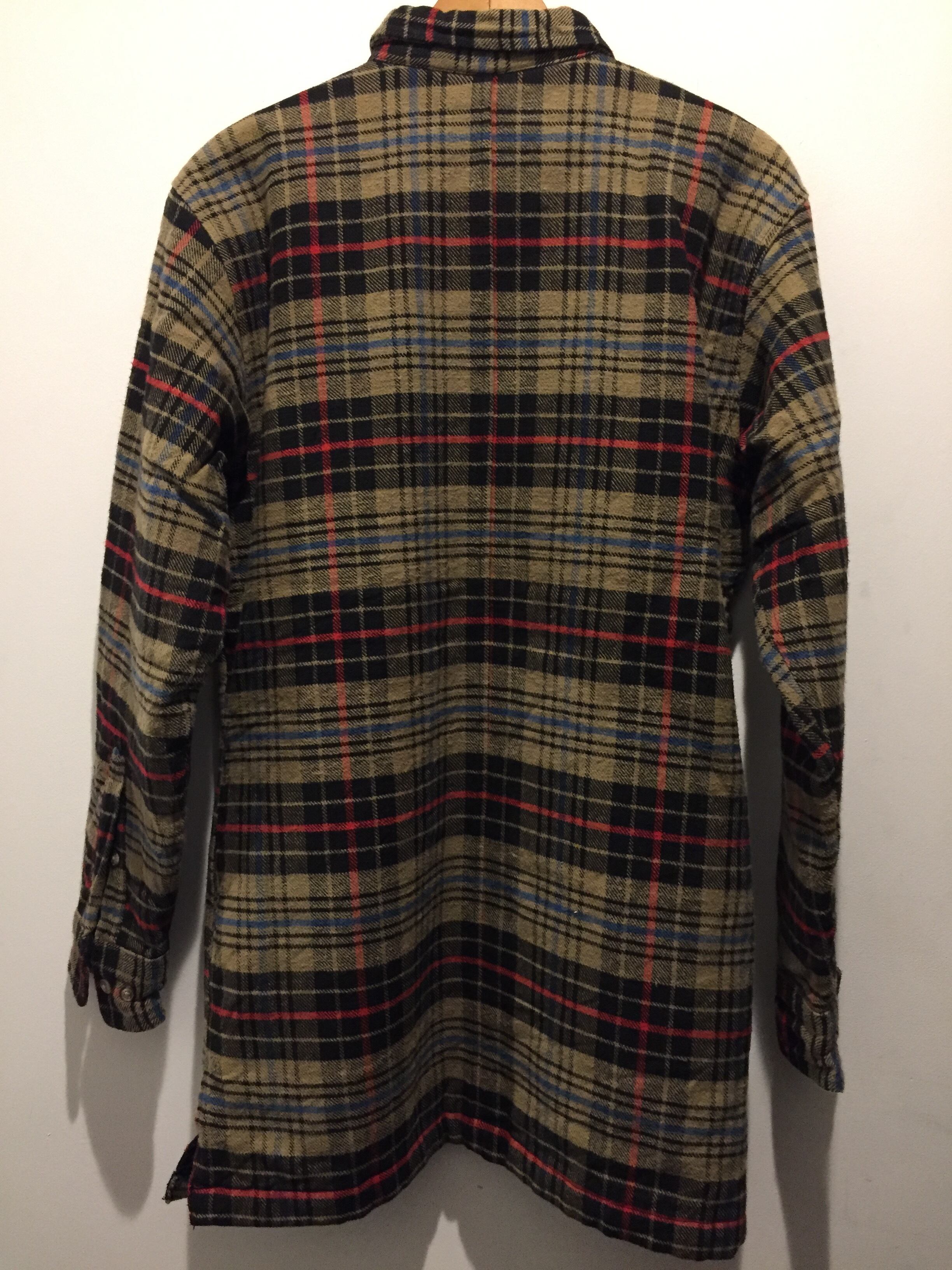 1961年創業のカベラス。アウトドアのアイテムが多くハンティングやカモ柄が多いブランドですね。こちらは一見チェックシャツですが、裏地にキルティングを使用していてシャツというよりアウターに近いアイテムです。またサイドポケット付きで着丈も長くスッキリしたシルエットが特徴です。チェックの配色にブラックもあるので引き締まりもありカッコイイ1着です。コンディションも良く替えのボタンも揃っています。