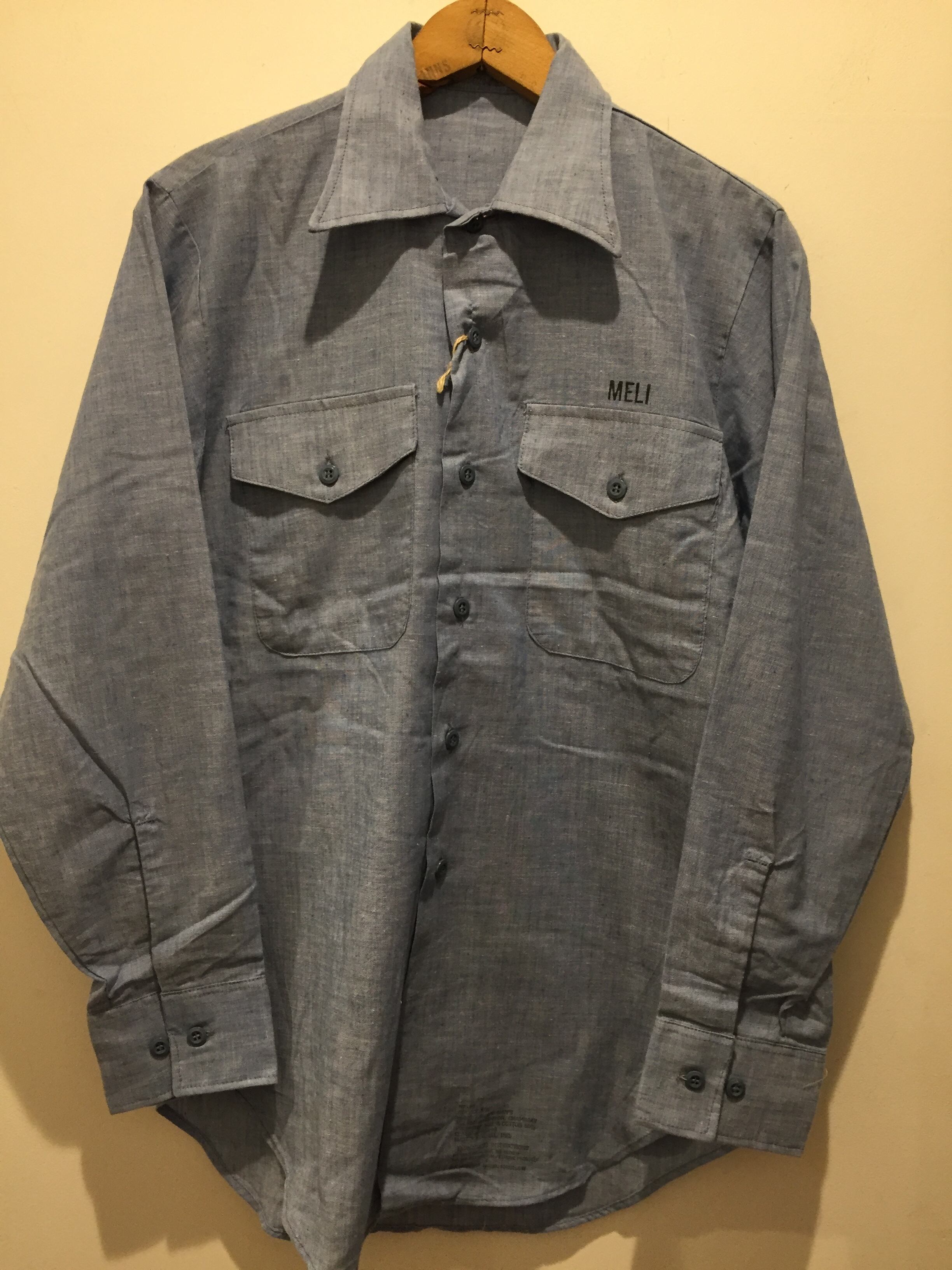 81年製造のアメリカ軍のシャンブレーシャツです。コットン×ポリエステル素材で生地が柔らかく着用しやすい1着です。希少なSサイズでジャストサイズで着用したい方か女性の方にもオススメなサイズ感です。デッドストックに近くコンディションもとても良くオススメです。