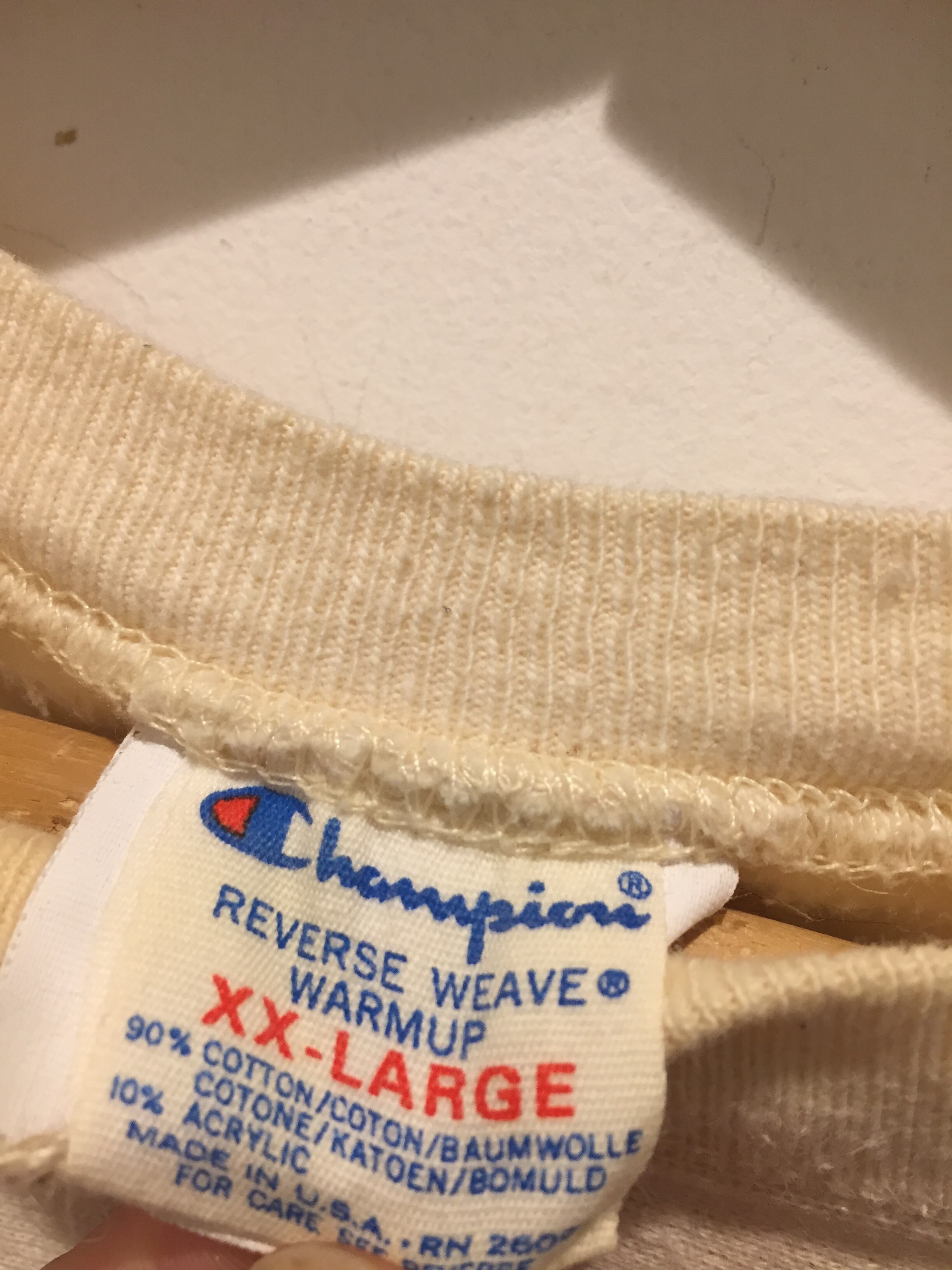 80年代中期のプリントタグが付くアメリカ製チャンピオンリバースウィーブです。こちらは珍しいクリーム色のようなオフホワイトカラーでなかなか無いボディカラーです。プリントもなかなか無いカレッジプリントで良い感じです。83年〜85年のわずか3年しか作られていないものでアメリカ製のリバースウィーブは少なくなってきているので今のうちですね。
