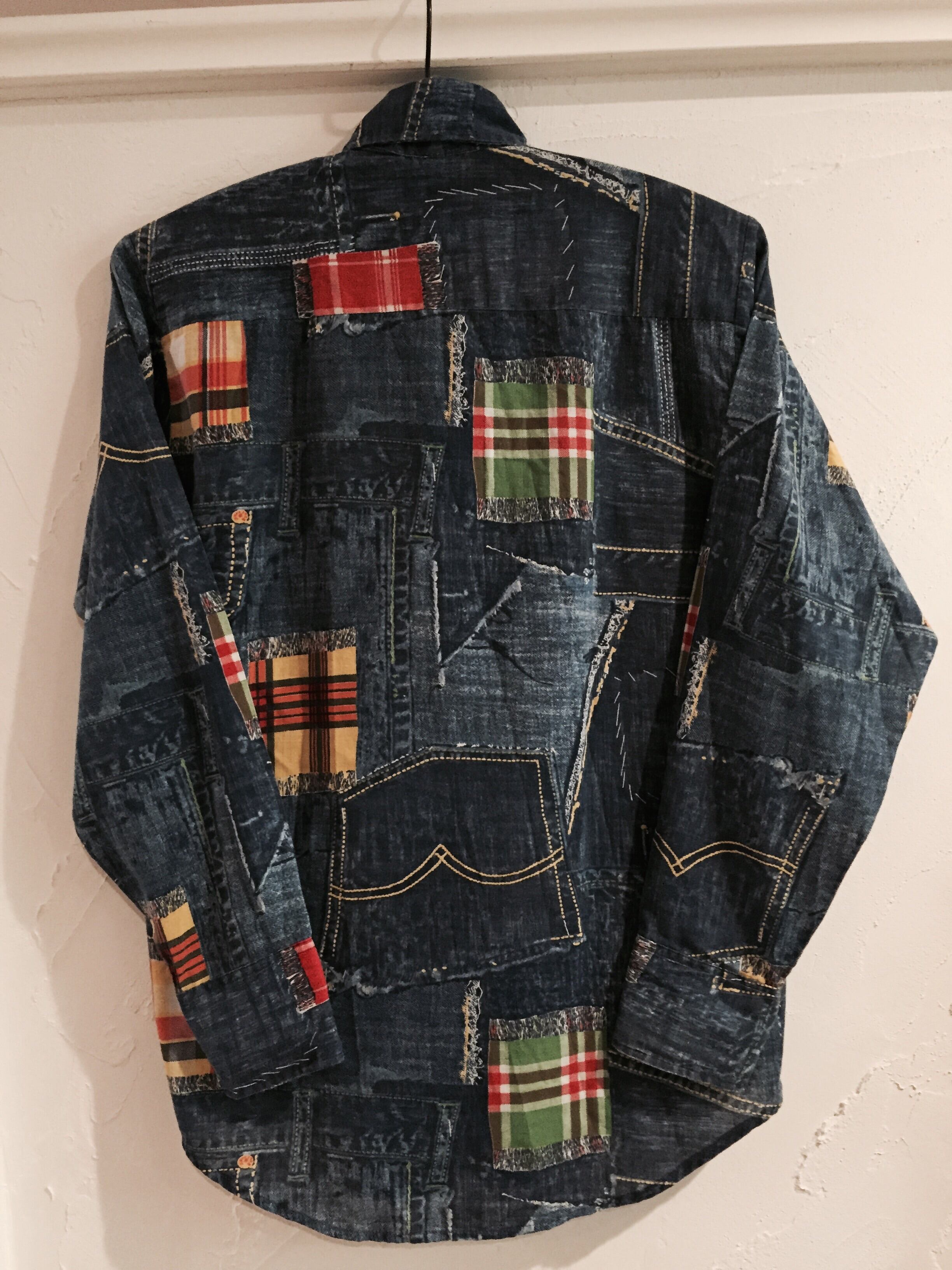 プリントのパッチワークパターンで白タブのBIGEが付いている希少な1枚です。