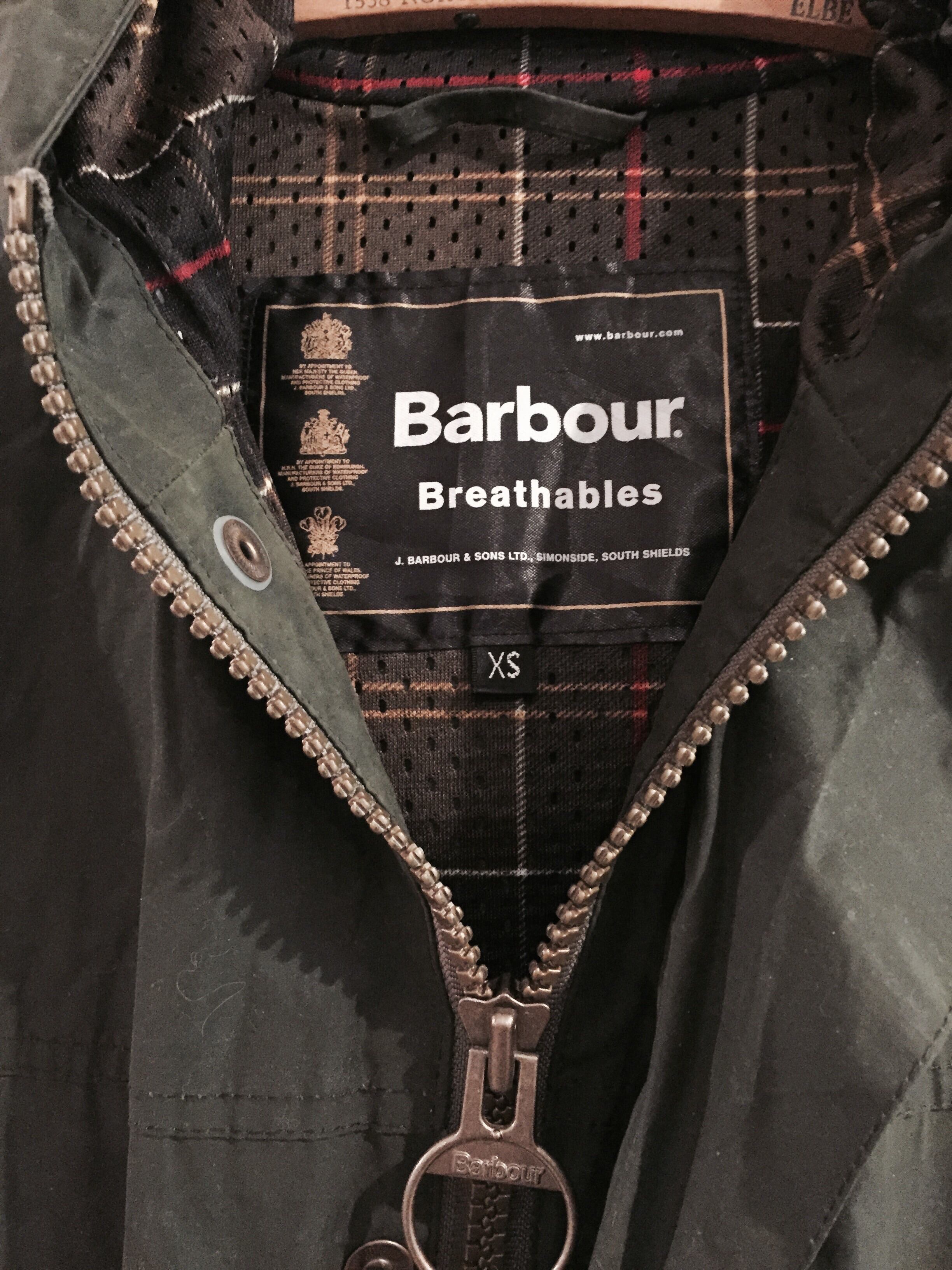 バブアーのオイルドジャケットです。モデル名『Stowaway Jacket』そしてなんと言っても希少なXSサイズです。Usedの為、多少の擦れなどございますが目立つ穴などはございません。
