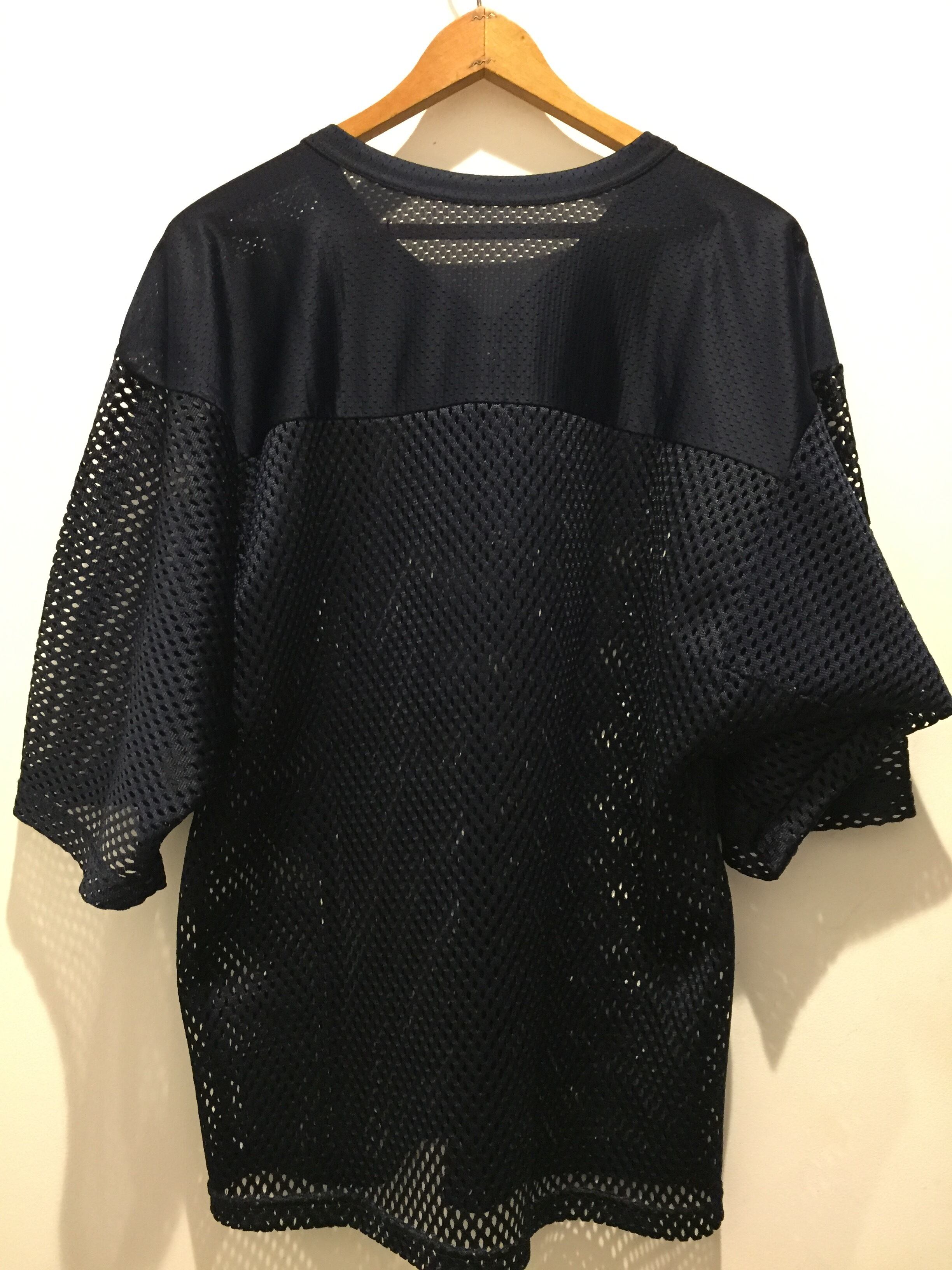 カラーはネイビーです。こちらは珍しいフッドボール型のメッシュTシャツです。チャンピオンの中でもなかなか出てこない珍ピオンですね。写真の⑤、⑥の様に中に総柄のTシャツやプリントTシャツとレイヤードして着用しても面白い1着です。
