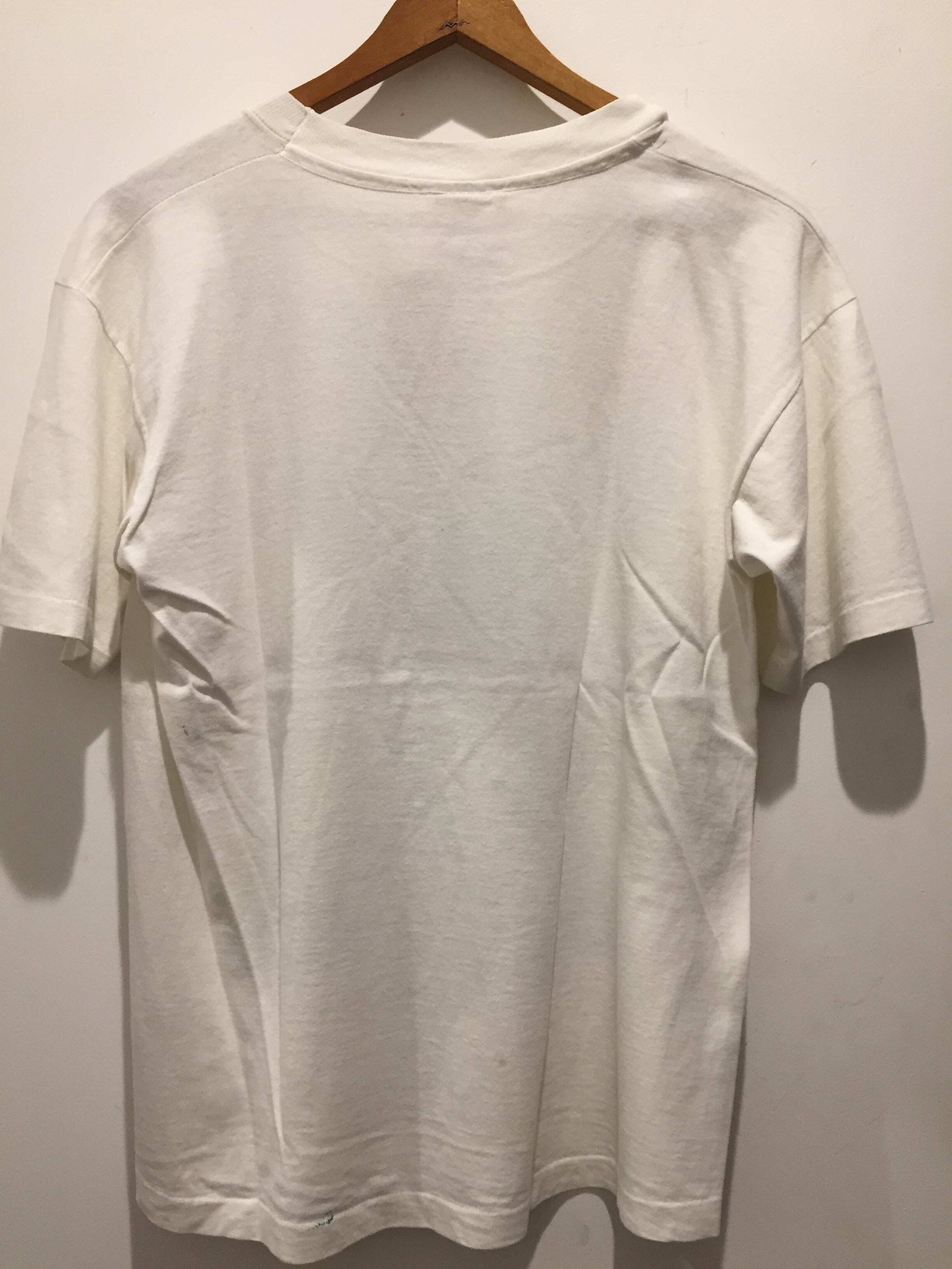 カラーはホワイトです。90年代のウォルトディズニーオフィシャル物でアメリカ製です。ミッキーやドナルドなどメンバー勢揃いしているプリントでなかなかこのデザインは無くgoodなプリントです。所々にあるペンキも雰囲気があり女性の方にもオススメな1着です。